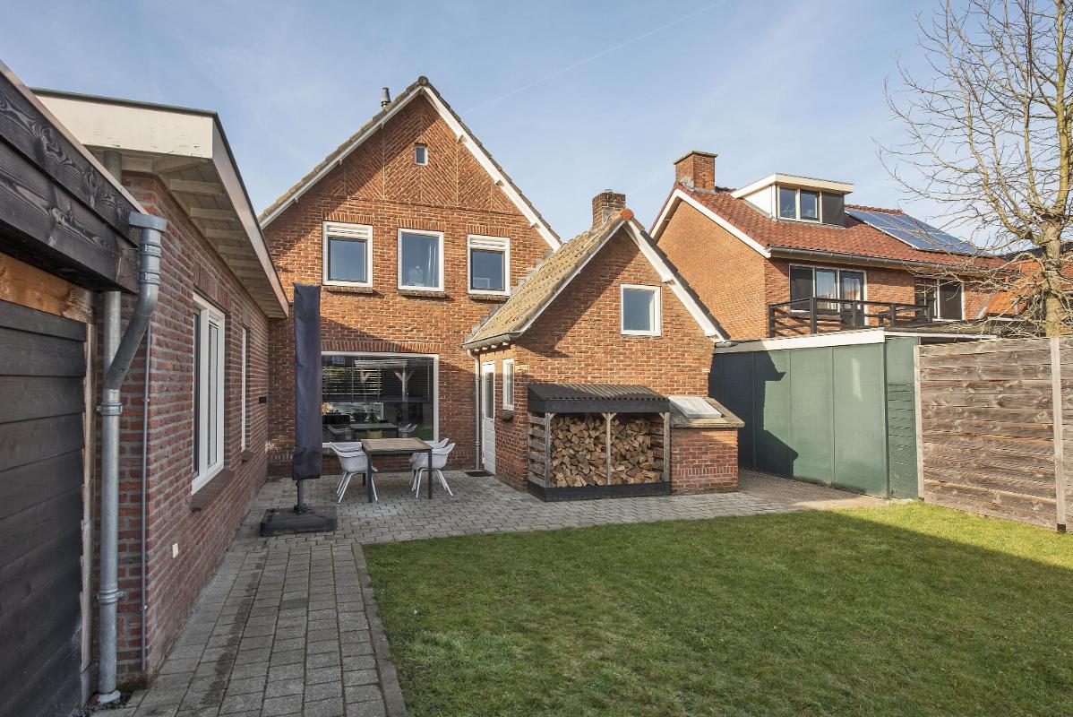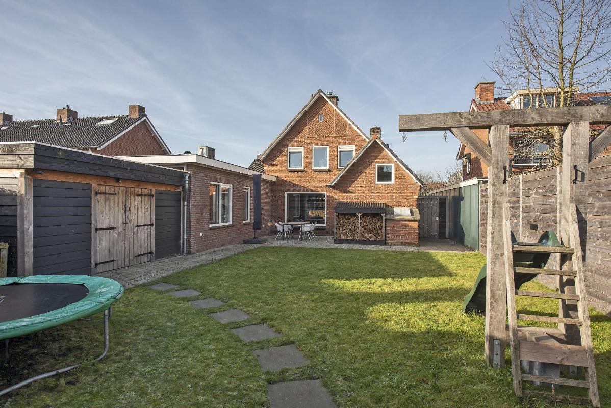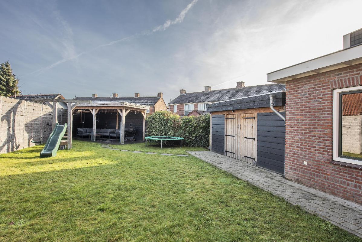 De tuin is bereikbaar via een praktische achterom, wat het dagelijks gebruik extra gemakkelijk maakt. Aangrenzend aan de woning staat een aangebouwde houten schuur, perfect voor fietsen, speelgoed en alles wat je graag binnen handbereik hebt, maar niet in huis wilt laten staan.