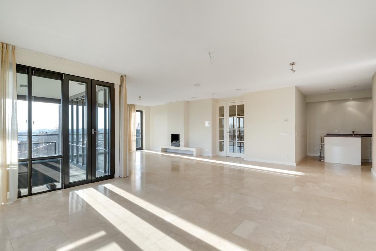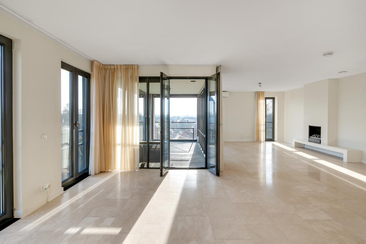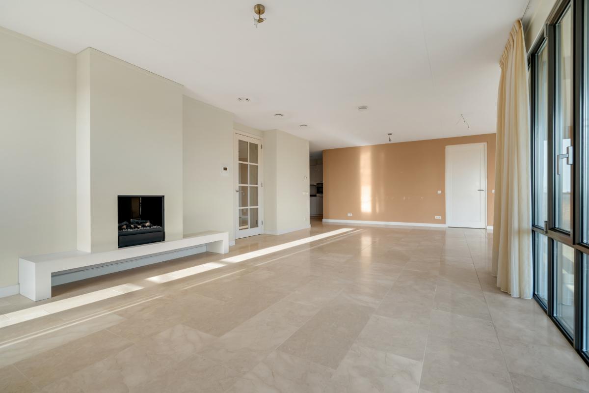 Licht, ruimte en een comfortabele indeling Het eerste wat opvalt wanneer je dit appartement binnenstapt, is de hoeveelheid licht die naar binnen valt. Dankzij de grote raampartijen baadt de woonkamer in daglicht en ontstaat er een open en prettige leefruimte. De woonkamer is ruim en comfortabel opgezet en beschikt over een sfeervolle haard, die zorgt voor extra warmte en uitstraling. Vanuit de woonkamer is er directe toegang tot het balkon, gelegen op het zuidoosten. Een fijne plek om al vroeg op de dag van de zon te genieten en buiten te zitten met uitzicht op Delden.