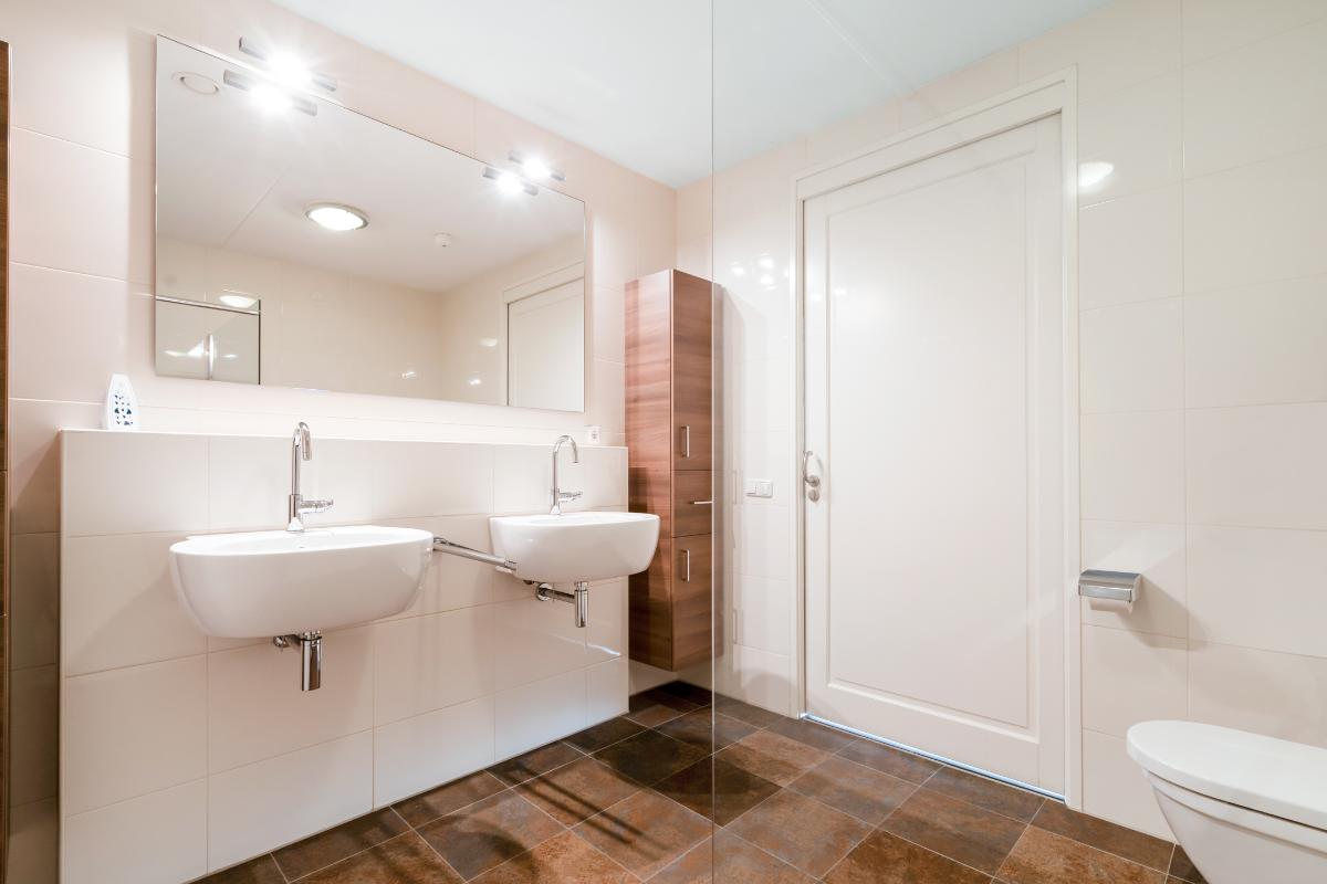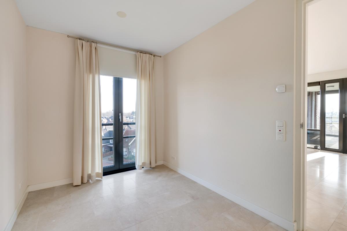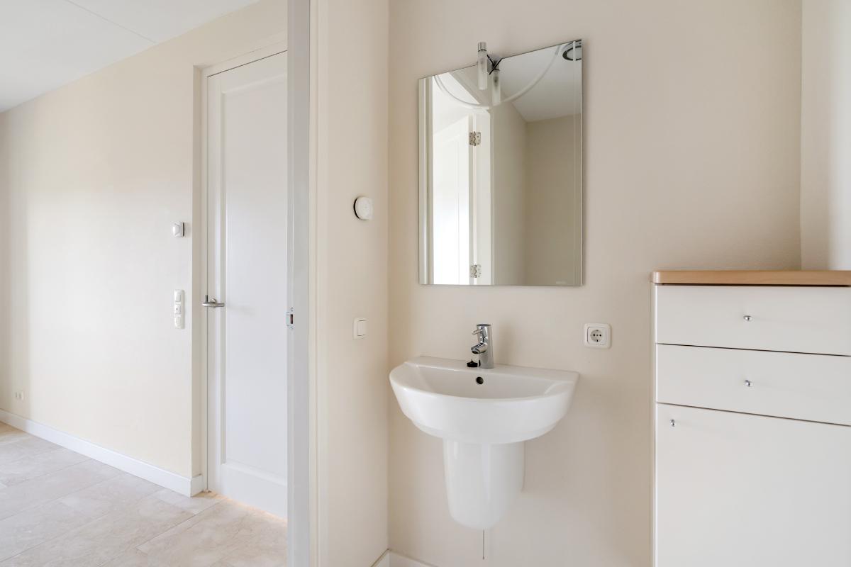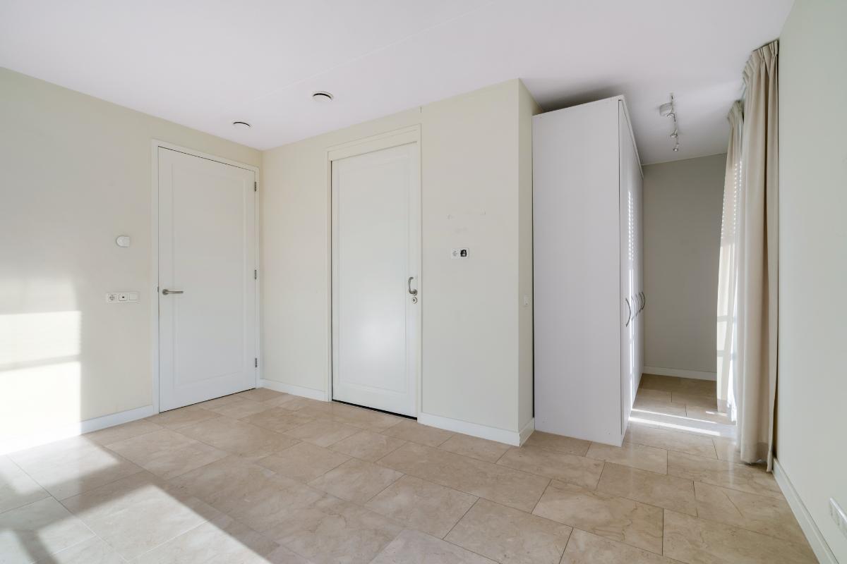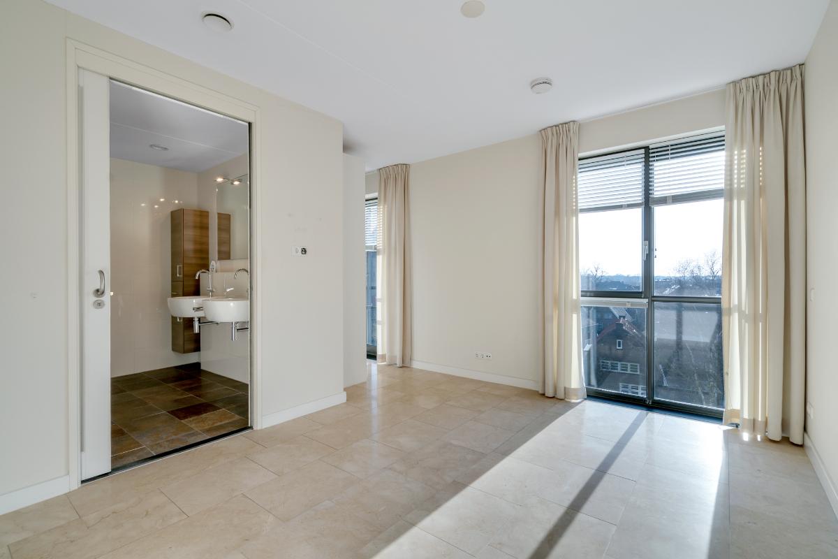 De hoofdslaapkamer is royaal van formaat en beschikt over een aangrenzende badkamer met inloopdouche, twee wastafels en een toilet. De tweede slaapkamer is eveneens praktisch ingedeeld en beschikt over een inloopkast met wastafel, waardoor deze kamer ook uitstekend dienst kan doen als werkplek, logeerkamer of comfortabele tweede slaapkamer.