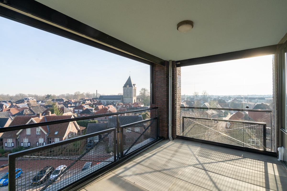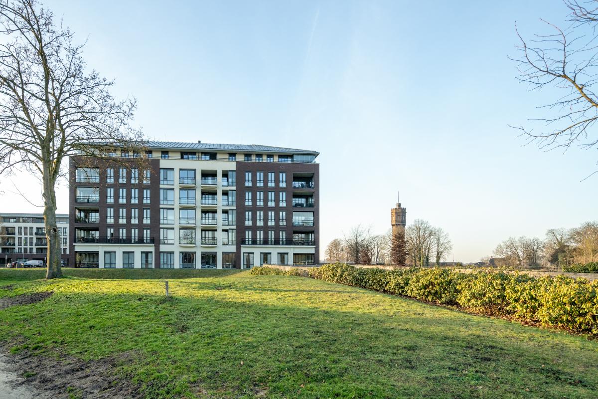 Indeling Souterrain: berging en parkeerplaats. Hoofdentree: brievenbussen, videofoon-installatie, liften en toegang trappenhuis. Appartement: entree met hal, meterkast, separaat toilet en inpandige berging. Ruime en lichte woonkamer met grote raampartijen en toegang tot het balkon. Open keuken voorzien van diverse inbouwapparatuur. Twee slaapkamers van goed formaat. Badkamer met douche, wastafelmeubel en toilet. Balkon: fijn balkon met vrij uitzicht richting landgoed Twickel en de Oude Kerk.