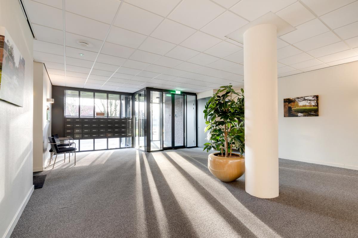 Comfortabel en praktisch wonen in een verzorgd complex Het appartement maakt deel uit van een modern en goed onderhouden appartementencomplex. De centrale hal is ruim opgezet en verzorgd afgewerkt en geeft direct een prettige eerste indruk. Hier bevinden zich tevens de brievenbussen en de videofooninstallatie. Vanuit de entree zijn zowel de lift als het trappenhuis bereikbaar, waardoor het gebouw uitstekend toegankelijk is voor minder valide bewoners.