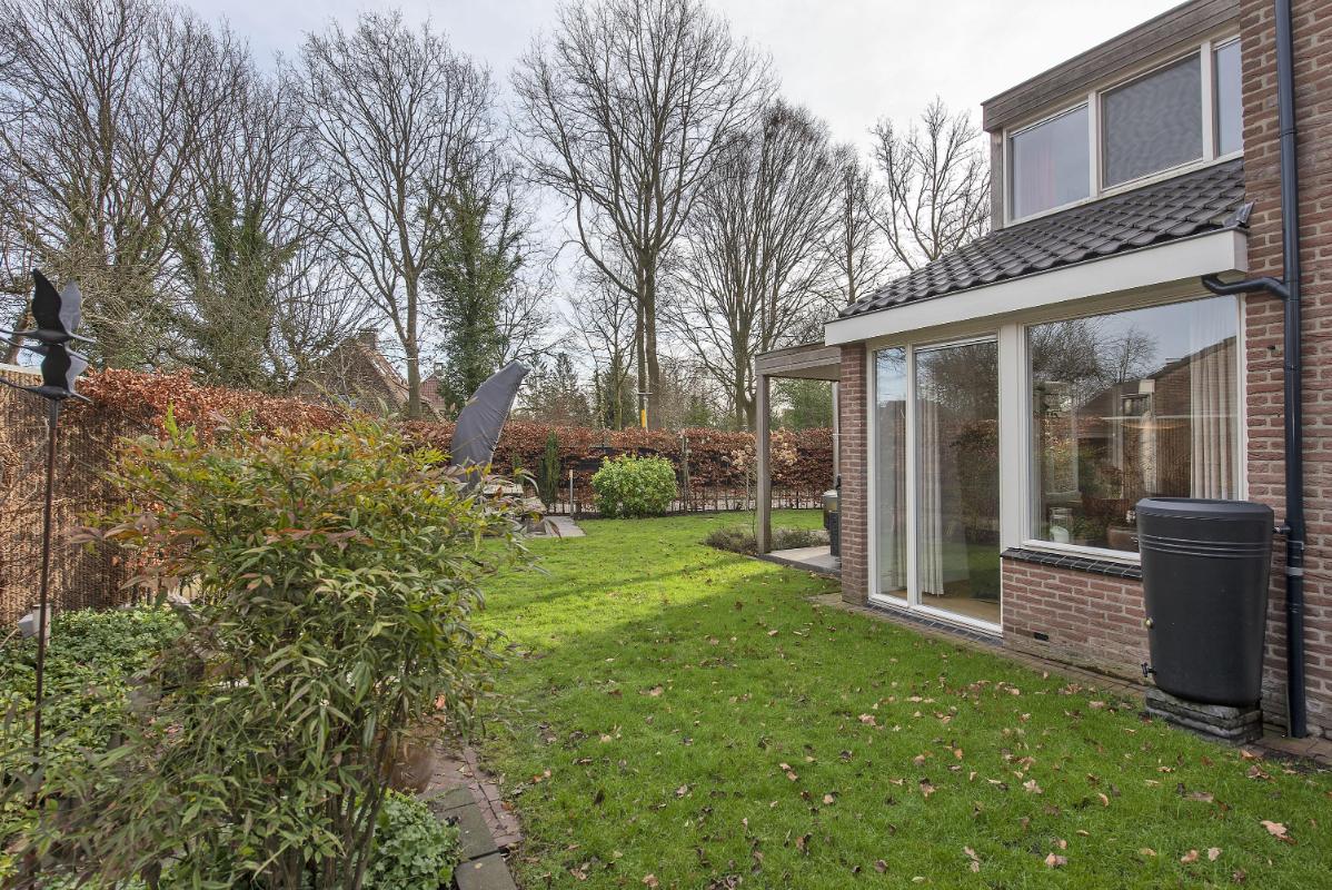 Indeling Begane grond: Entree, hal met toilet, ruime en lichte woonkamer met sfeervolle kachel en groot raampartij. De half open keuken is verzorgd ingericht met een gasfornuis met afzuigkap, oven, stoomoven met warmhoudlade, vaatwasser, koelkast en wijnkoeler. Via de hal bereik je de bijkeuken, voorzien van aansluitingen voor wasapparatuur en extra bergruimte, met directe toegang tot de overkapping en de berging. Eerste verdieping: Overloop, vijf slaapkamers en een nette badkamer met inloopdouche, dubbele wastafel met meubel, toilet en vloerverwarming. Berging met Cv-ketel. Tweede verdieping: Zolderruimte, bereikbaar via een vlizotrap, in gebruik als praktische bergzolder. Tuin: Ruime, groen aangelegde achtertuin met overkapping en voldoende privacy.