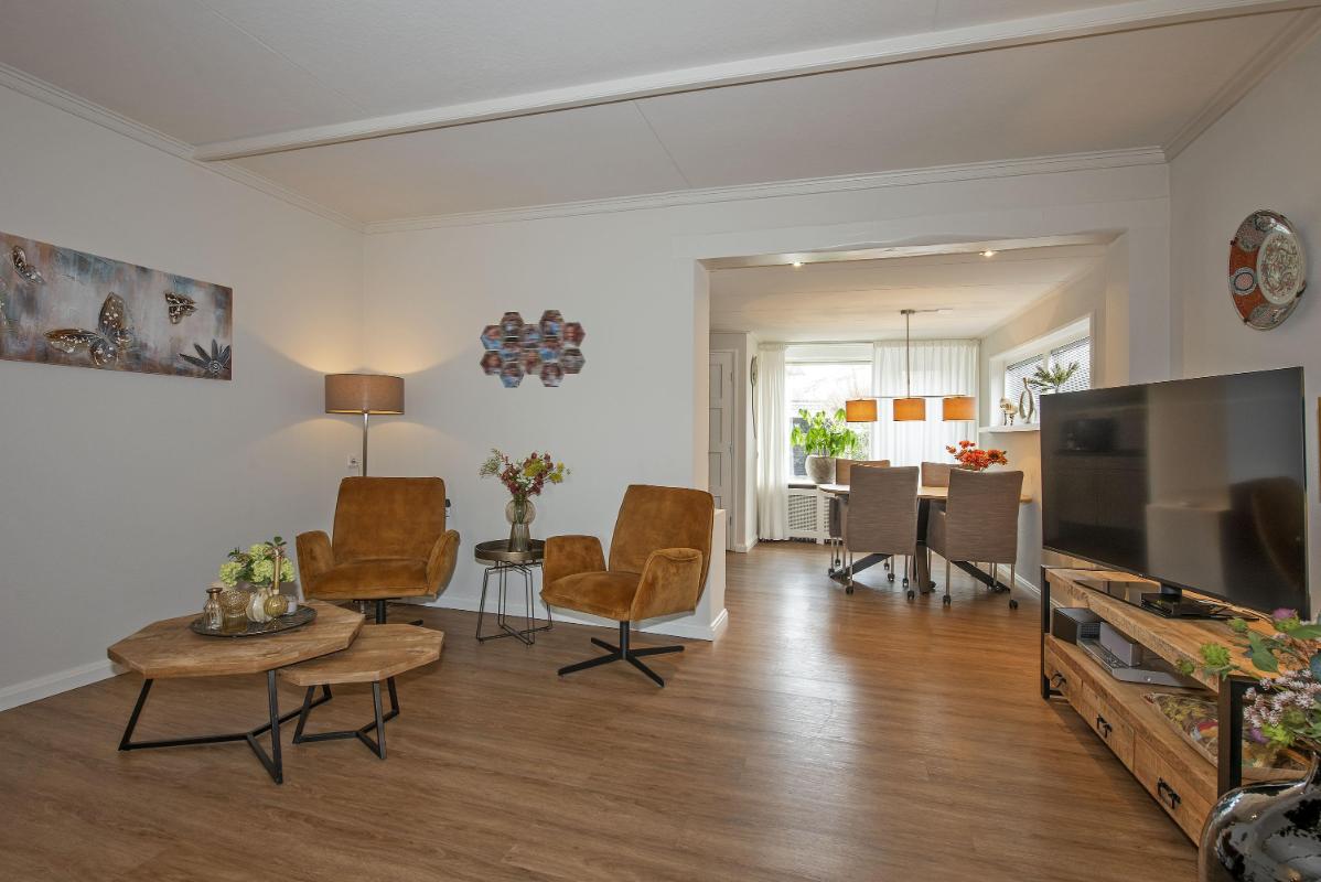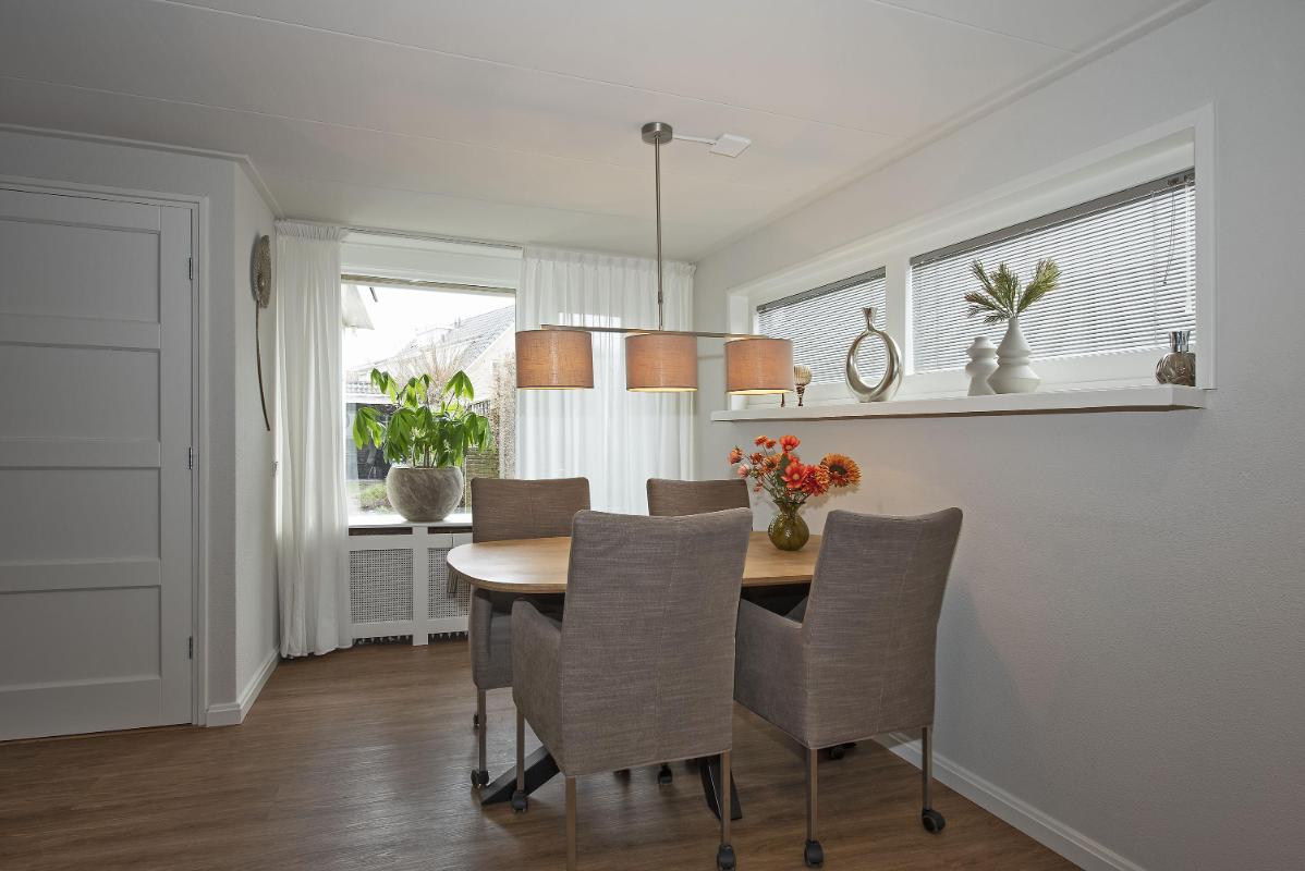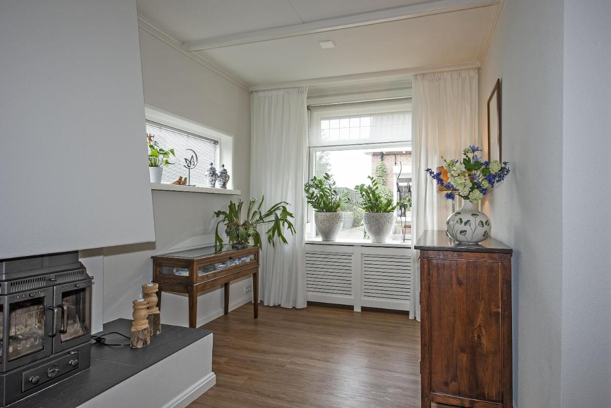 Sfeervol en functioneel wonen Je stapt deze woning binnen in de hal. Vanuit hier loop je door naar de woonkamer, waar het daglicht prettig naar binnen valt. De PVC vloer zorgt voor een rustige basis en de houtkachel geeft de ruimte direct warmte en sfeer. Dit is zo’n plek waar je tot laat in de avond nog bij het vuur kan zitten. De keuken staat in open verbinding met de leefruimte. Hier beschik je over een afzuigkap en koelkast, aangevuld met een combi oven magnetron en koel vriescombinatie. Achter de keuken bevindt zich de bijkeuken met witgoedaansluitingen, de cv-installatie en het toilet. Een fijne, functionele toevoeging aan het dagelijkse wooncomfort. Tevens bevindt zich hier nog een praktische berging.