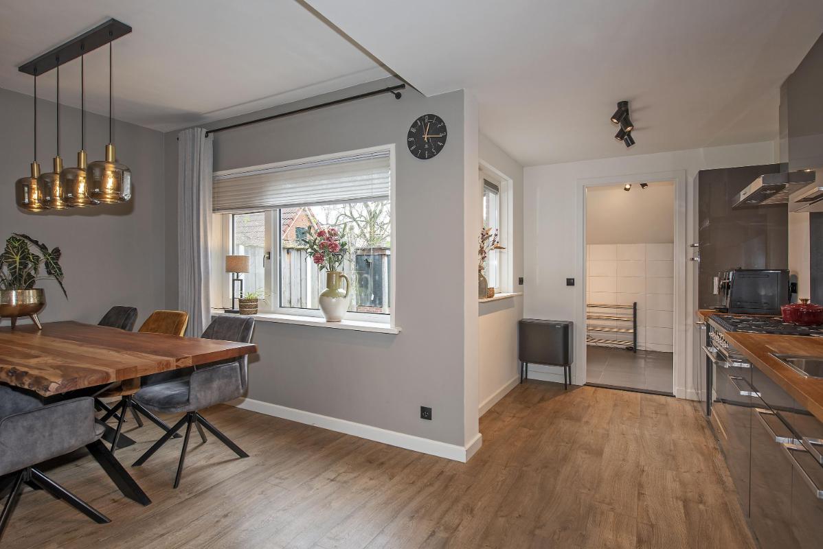 Wonen met licht, ruimte en sfeer. Bij binnenkomst merk je het meteen: deze woning is met liefde en aandacht onderhouden. De lichte woonkamer met grote raampartijen voelt ruim en comfortabel aan. Door de open verbinding met de keuken blijf je altijd in contact met elkaar — of je nu aan het koken bent of aan tafel werkt. De moderne keuken is praktisch ingedeeld en voorzien van een 6-pits gasfornuis, oven, afzuigkap en koel-vriescombinatie. In de bijkeuken beneden is er een aansluiting voor wasmachine en droger aanwezig, terwijl de extra bergruimte deze plek ideaal maakt voor dagelijks gemak. De meterkast is voorbereid op inductie koken, wat fijn is voor de toekomst.