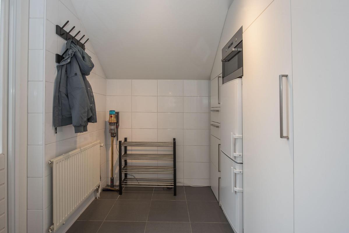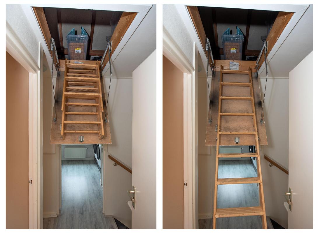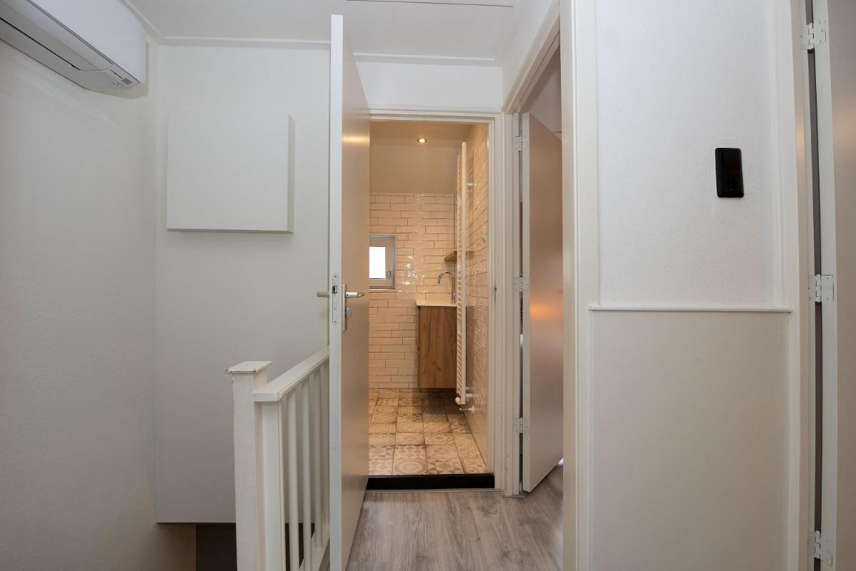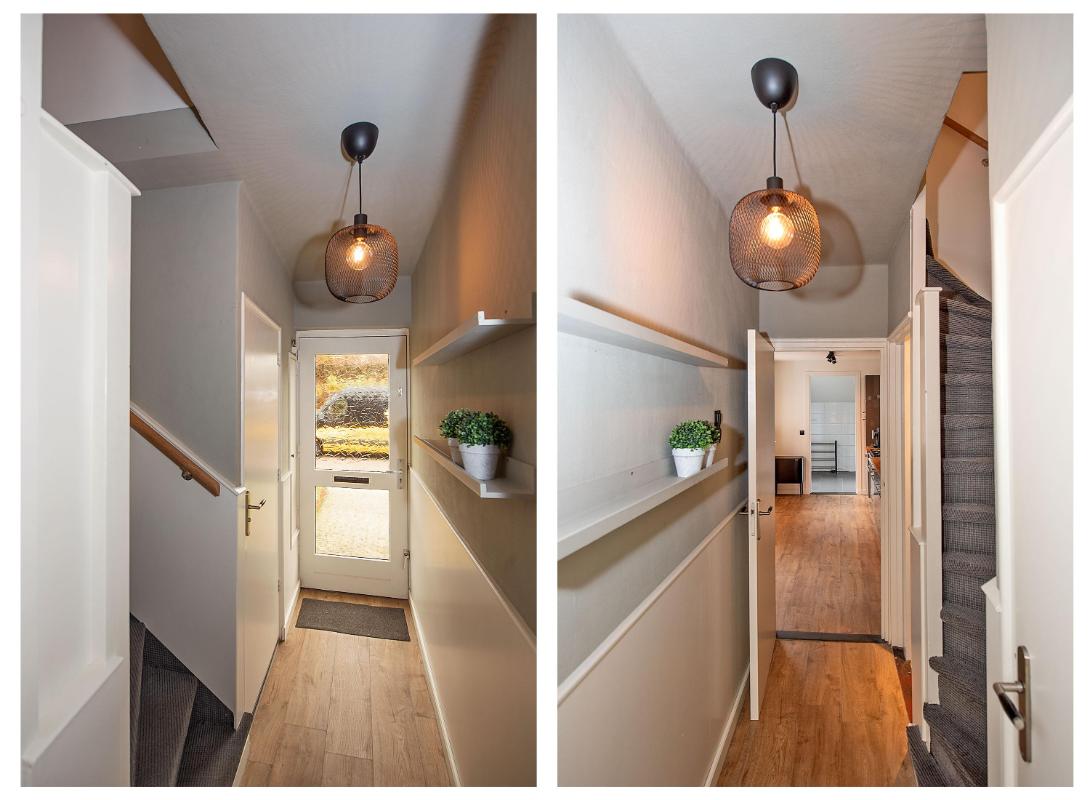 Wat vind je boven? Op de eerste verdieping bevinden zich drie fijne slaapkamers. Eén van de kamers beschikt zowel over een vaste kast als over een aansluiting voor wasmachine en droger. De overige kasten die je op de foto ziet zijn losse paxkasten die ter overname worden aangeboden. De badkamer is afgewerkt met sfeervolle Portugese vloertegels met vloerverwarming en is ingericht met een douche, toilet, wastafelmeubel en designradiator. De vliering is bereikbaar via een vlizotrap en biedt praktische bergruimte.