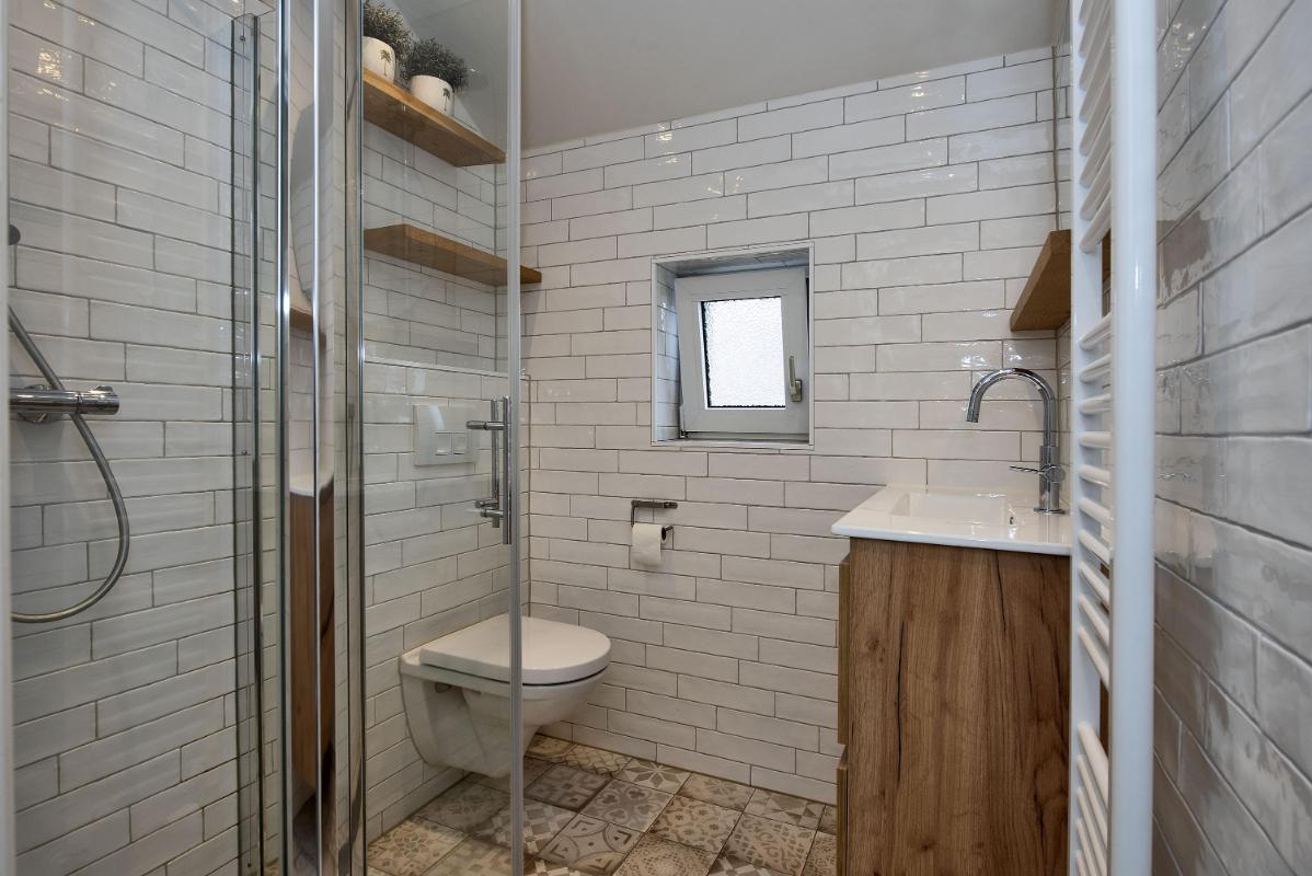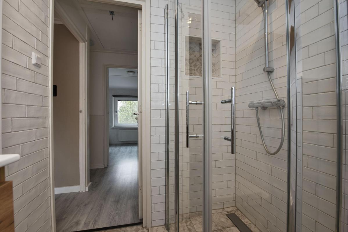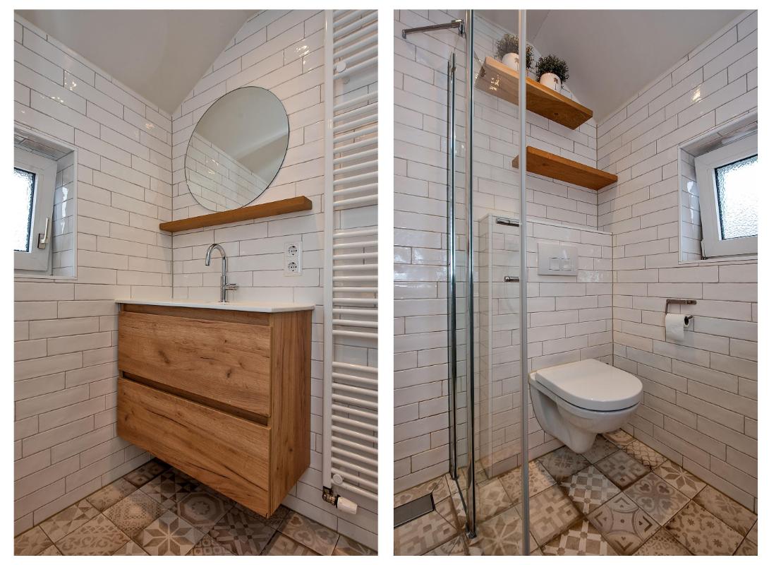 Wat vind je boven? Op de eerste verdieping bevinden zich drie fijne slaapkamers. Eén van de kamers beschikt zowel over een vaste kast als over een aansluiting voor wasmachine en droger. De overige kasten die je op de foto ziet zijn losse paxkasten die ter overname worden aangeboden. De badkamer is afgewerkt met sfeervolle Portugese vloertegels met vloerverwarming en is ingericht met een douche, toilet, wastafelmeubel en designradiator. De vliering is bereikbaar via een vlizotrap en biedt praktische bergruimte.