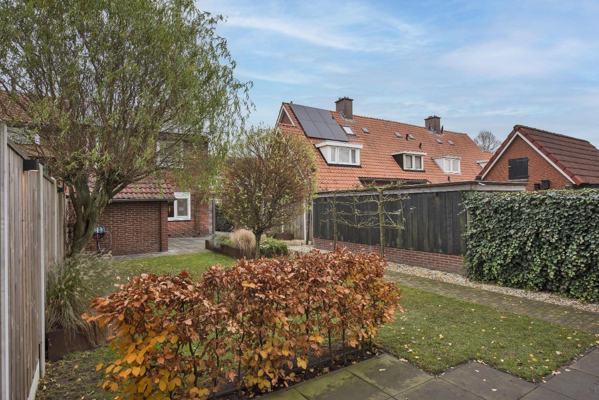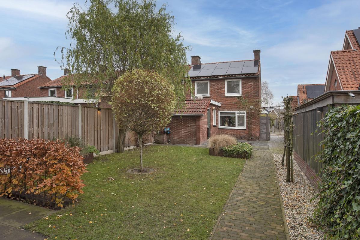 Een achtertuin om verliefd op te worden. De diepe, groene achtertuin is misschien wel hét hoogtepunt van deze woning. Hier vind je meerdere terrassen, veel privacy en een super mooie overkapping waar je in alle jaargetijden heerlijk kunt vertoeven. De schuur zorgt voor veel extra bergruimte voor je tuinspullen/ gereedschap. Bovendien beschikt deze over extra bergruimte op de vliering boven de overkapping.
