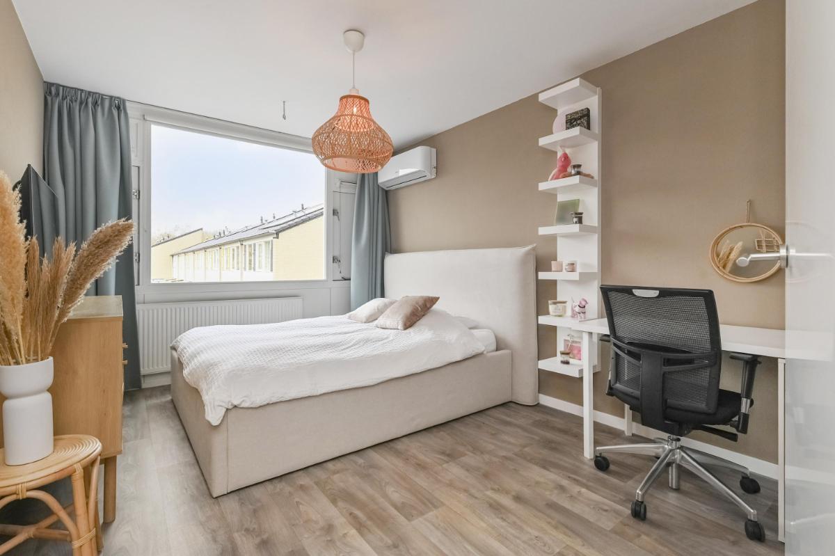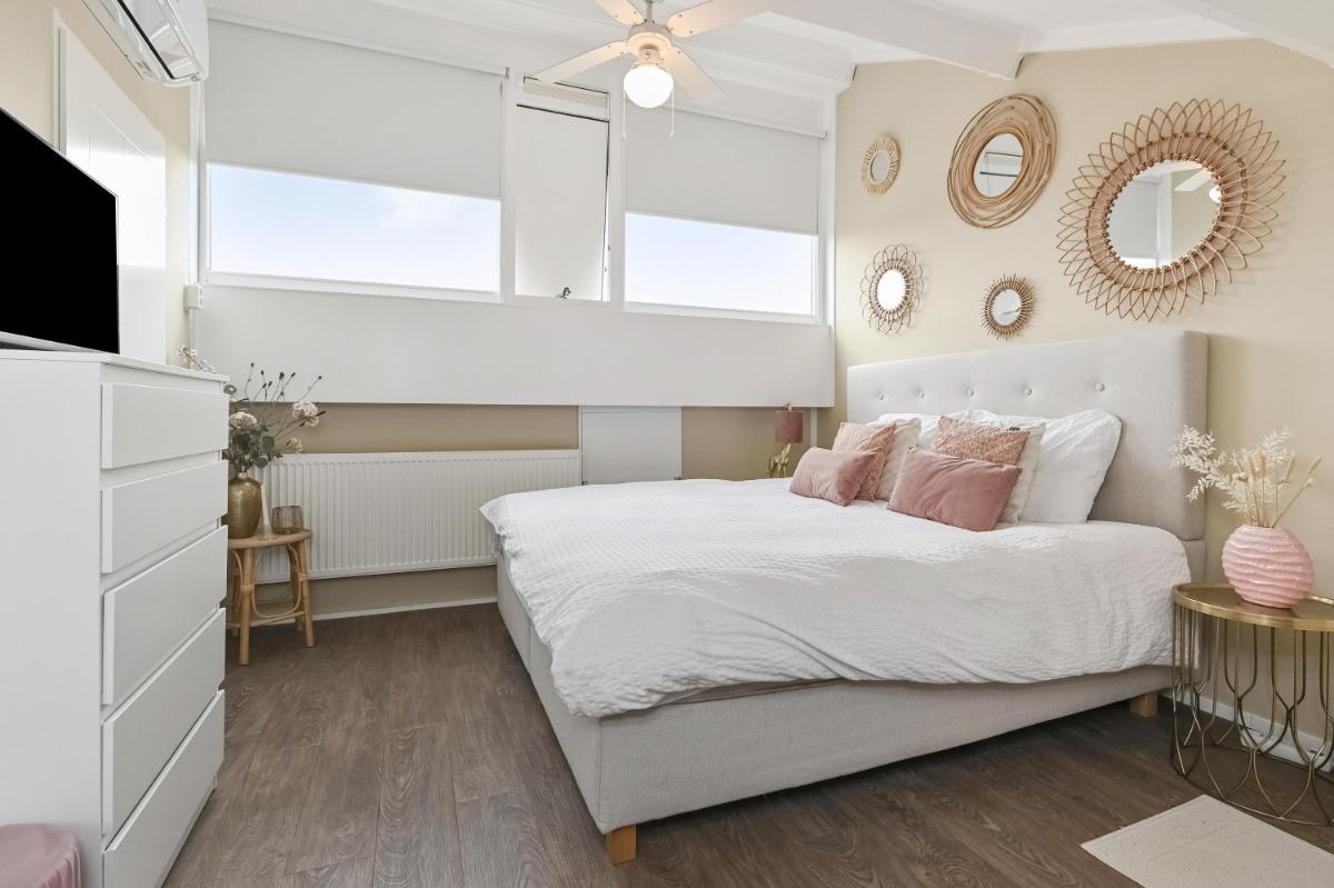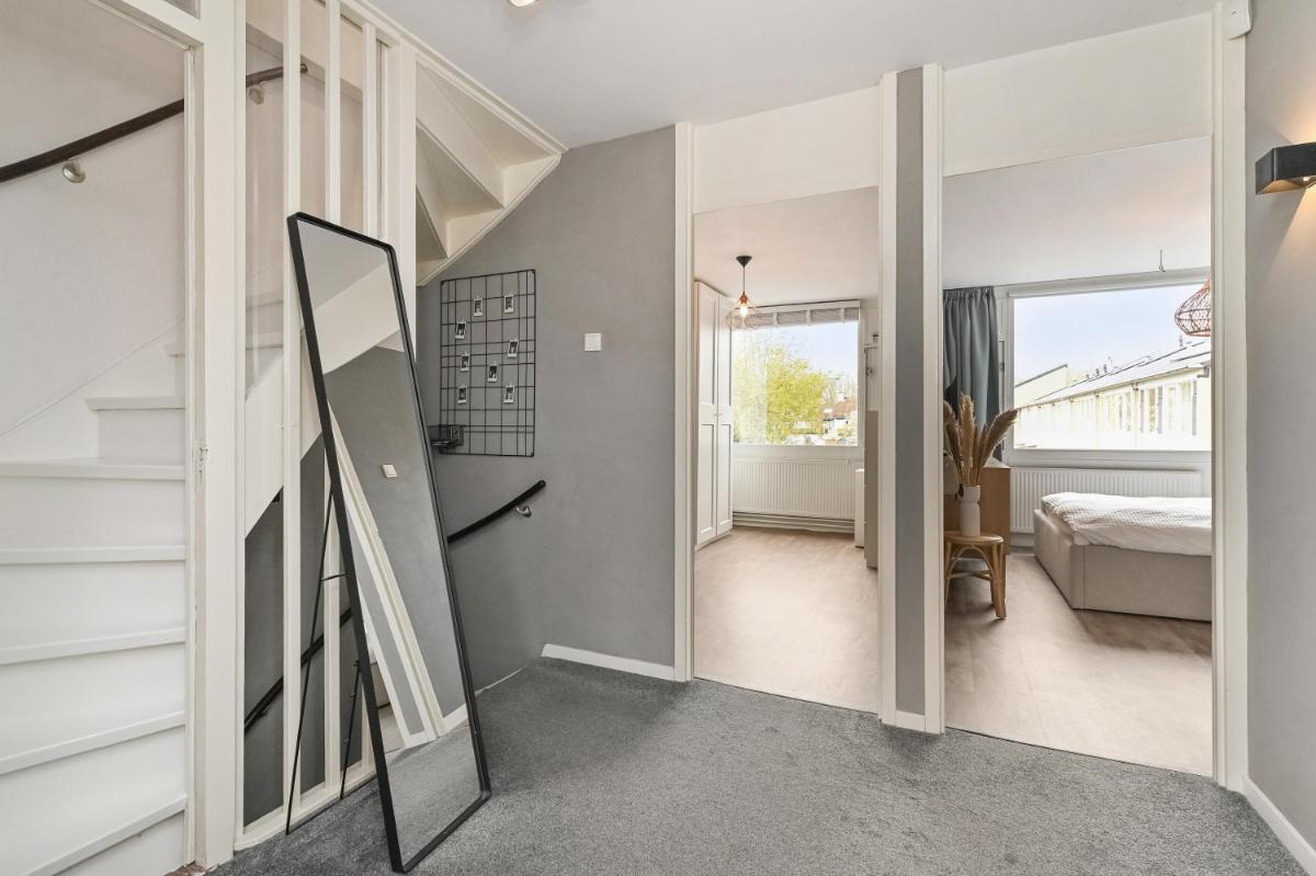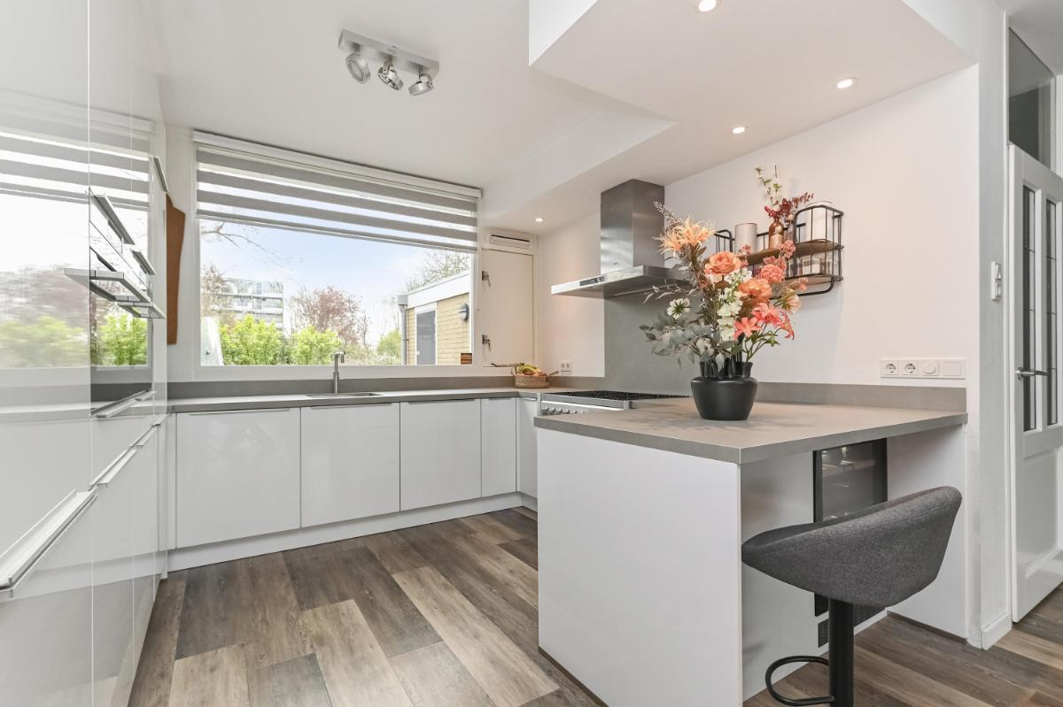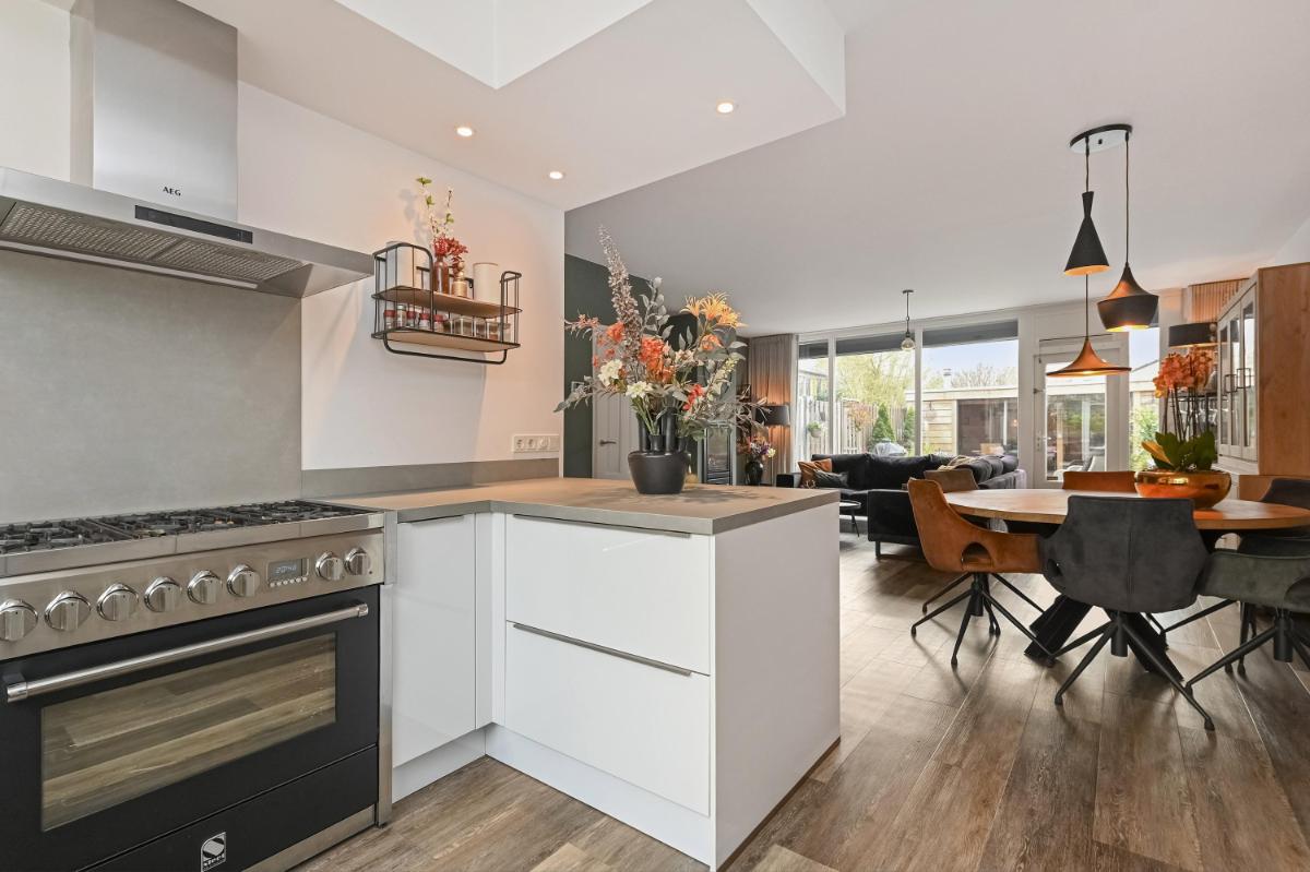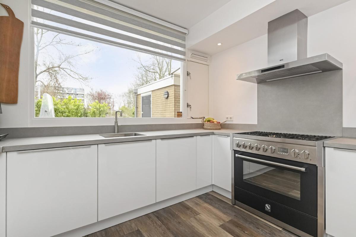 Bijzonderheden: - Woonoppervlakte ca. 130m2 - Perceeloppervlakte ca. 158m2 - Zonnig (W) gelegen achtertuin met sfeervolle veranda - Energielabel B - Begane grond voorzien van vloerverwarming en gashaard - Houten kozijnen met dubbel glas, geschilderd in 2024 - Badkamer vernieuwd in 2025 - Alarminstallatie met camera's - Remeha HR combiketel - Airconditioning - 10 zonnepanelen - Stenen fietsenberging - Eeuwigdurende erfpacht met afgekochte canon - Oplevering in overleg