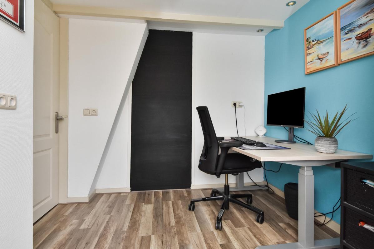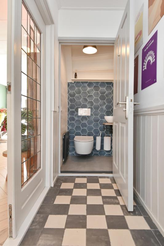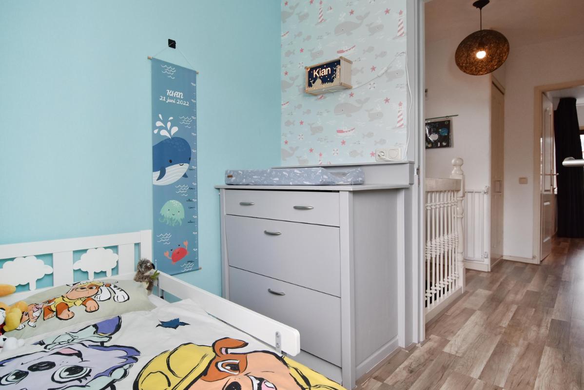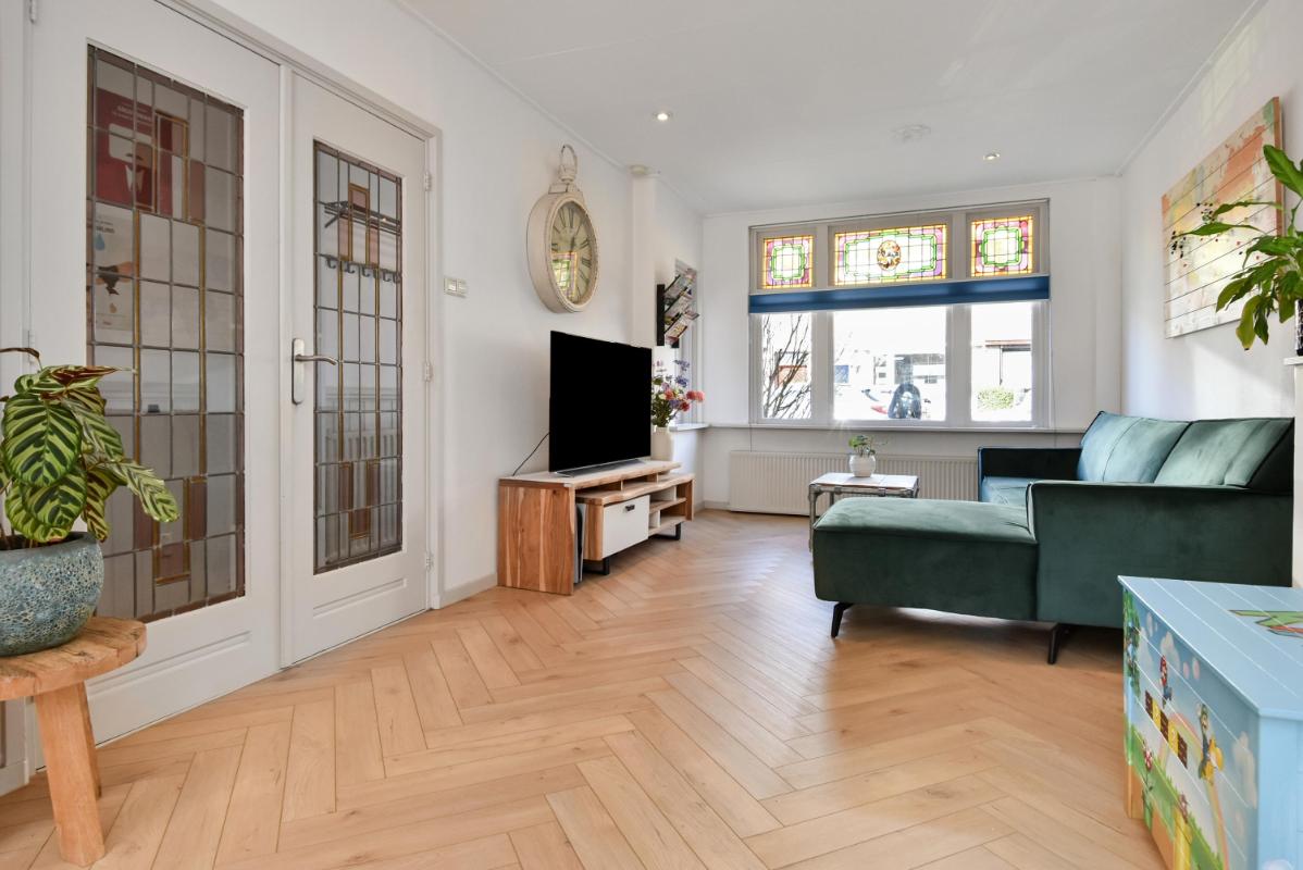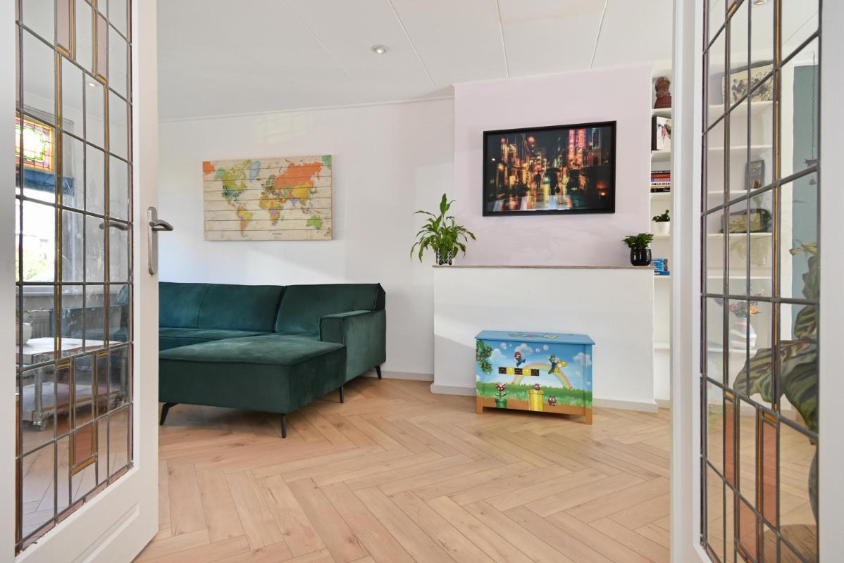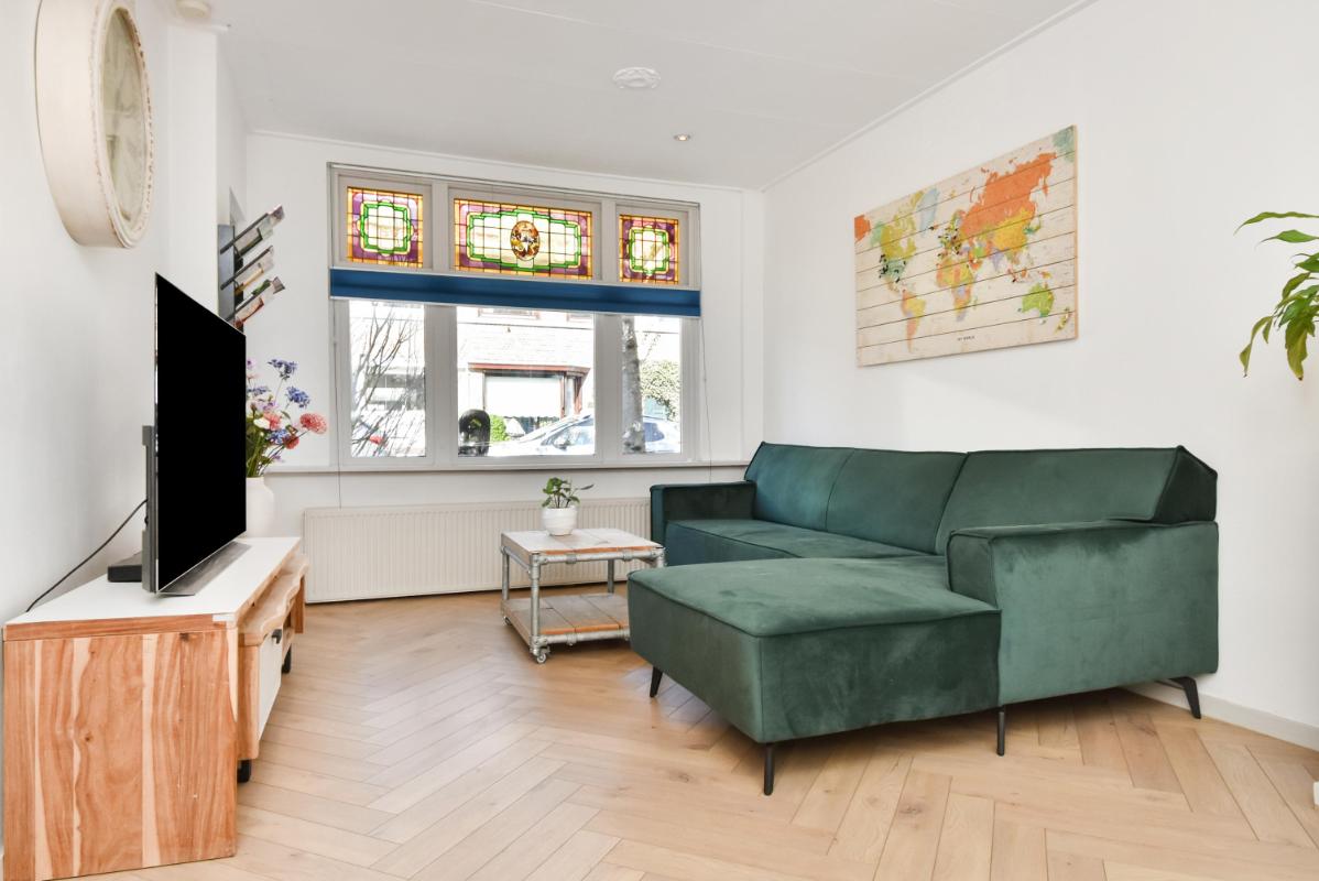 Indeling: Entree, gang met meterkast. Toilet met fontein. Openslaande deuren met glas in lood naar de woonkamer voorzien van visgraat pvc-vloer. De open keuken aan de achterzijde is o.a. voorzien van Quooker, vaatwasser, gaskookplaat, afzuigkap, oven en koel-/vriescombinatie. Openslaande deuren naar de achtertuin met brede zij-entree. Trap naar de eerste verdieping, overloop met vaste kast met aansluiting voor wasmachine en droger. Slaapkamer aan de voorzijde met kastenwand. Slaapkamer aan de achterzijde. Derde slaapkamer met toegang tot het ruime achterbalkon. De badkamer is voorzien van ligbad met douchegedeelte, wandcloset, designradiator en wastafelmeubel. Trap naar de kapverdieping met slaapkamer, vast bed, dakramen en bergruimte.