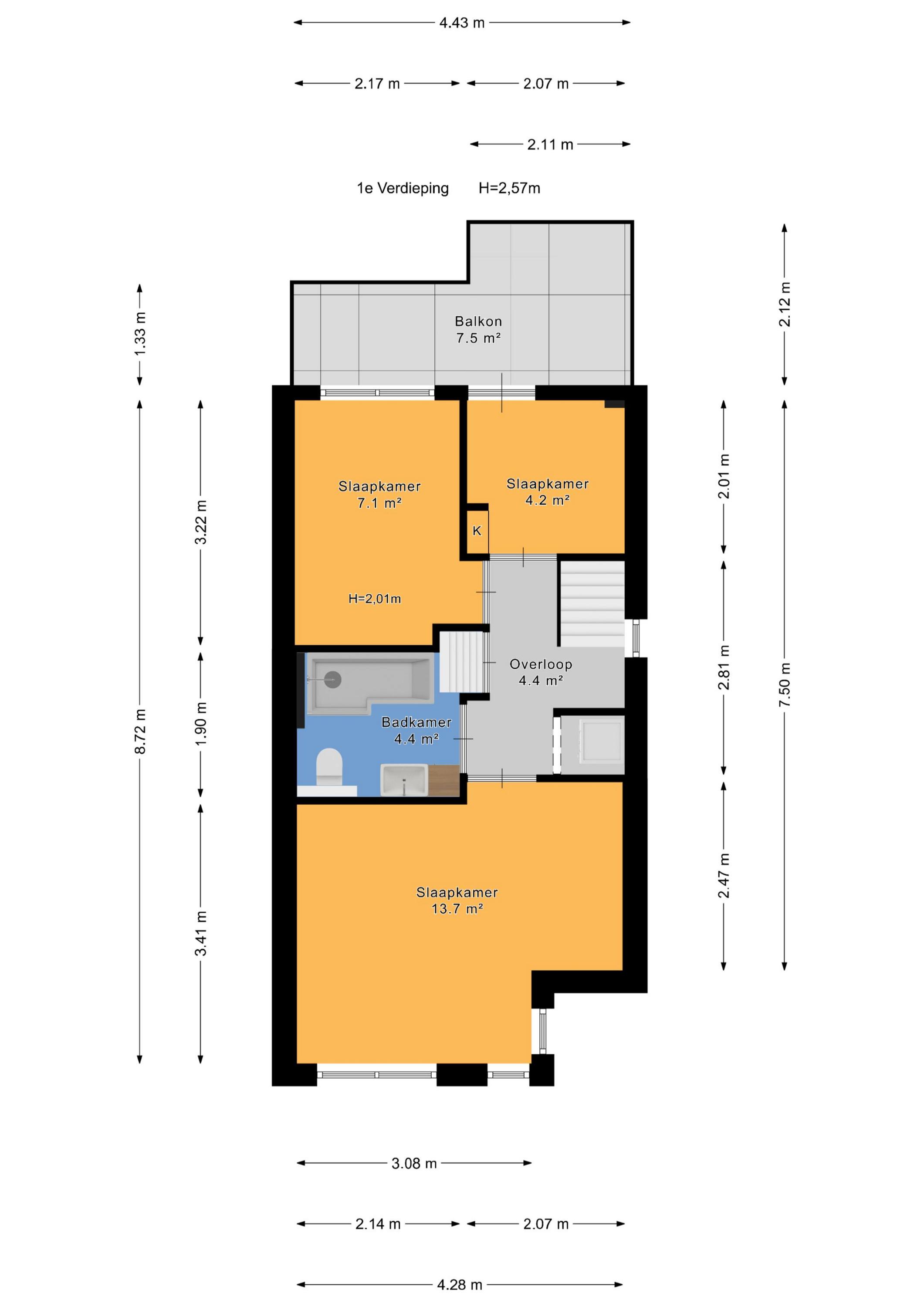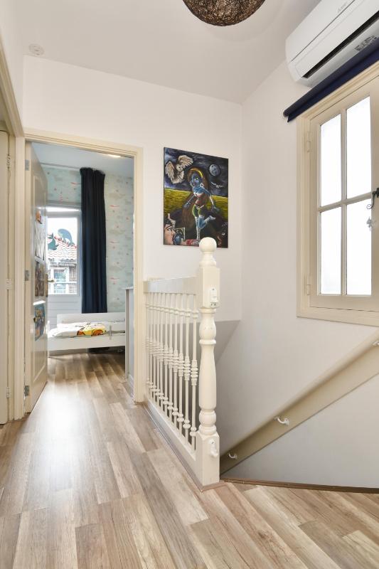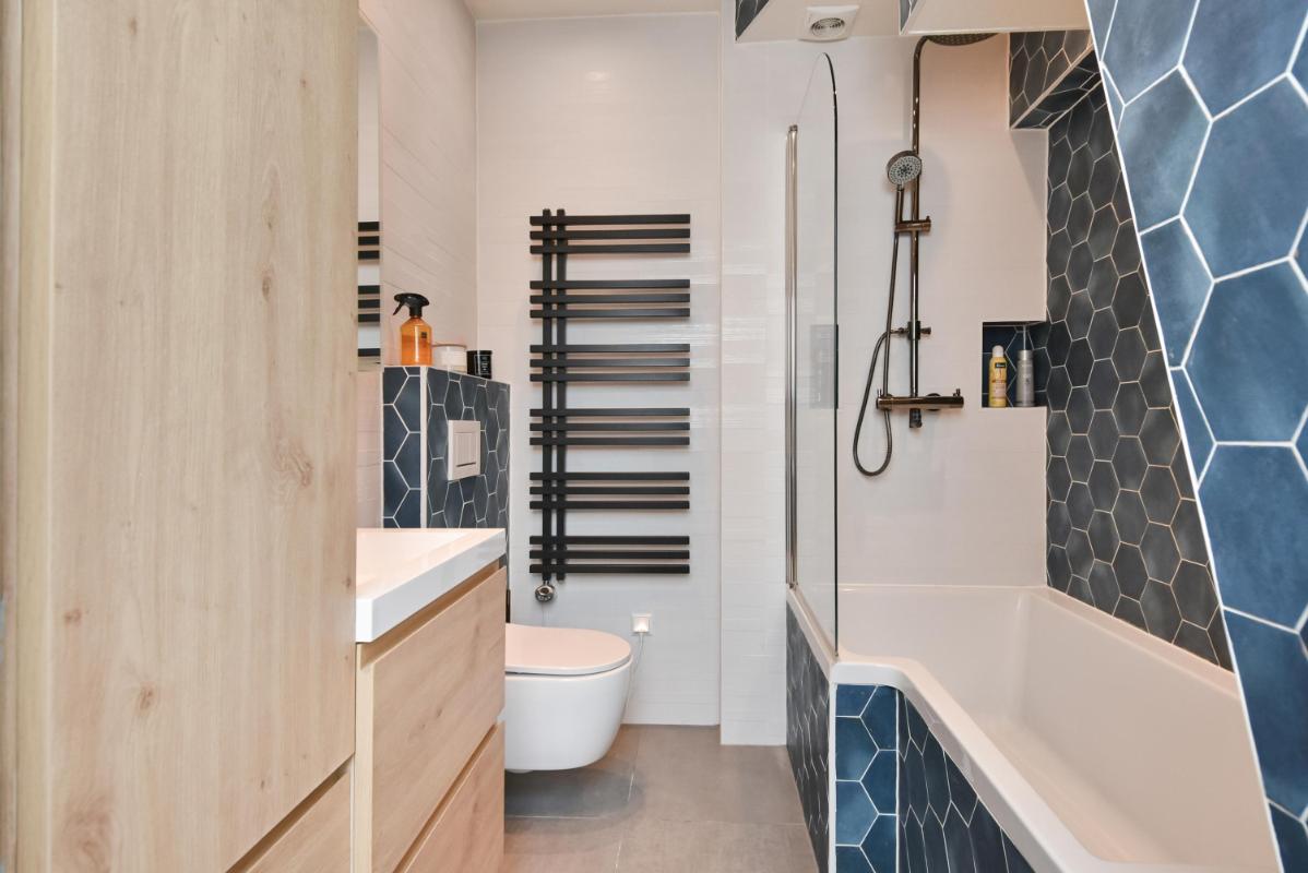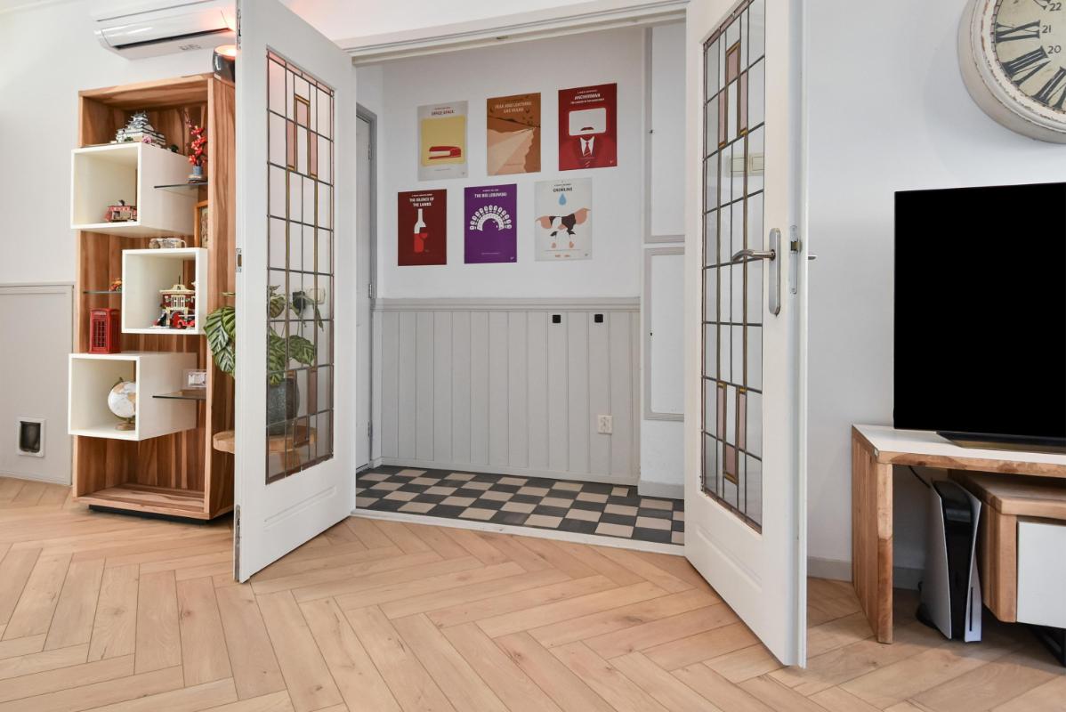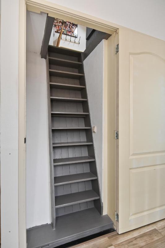 Indeling: Entree, gang met meterkast. Toilet met fontein. Openslaande deuren met glas in lood naar de woonkamer voorzien van visgraat pvc-vloer. De open keuken aan de achterzijde is o.a. voorzien van Quooker, vaatwasser, gaskookplaat, afzuigkap, oven en koel-/vriescombinatie. Openslaande deuren naar de achtertuin met brede zij-entree. Trap naar de eerste verdieping, overloop met vaste kast met aansluiting voor wasmachine en droger. Slaapkamer aan de voorzijde met kastenwand. Slaapkamer aan de achterzijde. Derde slaapkamer met toegang tot het ruime achterbalkon. De badkamer is voorzien van ligbad met douchegedeelte, wandcloset, designradiator en wastafelmeubel. Trap naar de kapverdieping met slaapkamer, vast bed, dakramen en bergruimte.