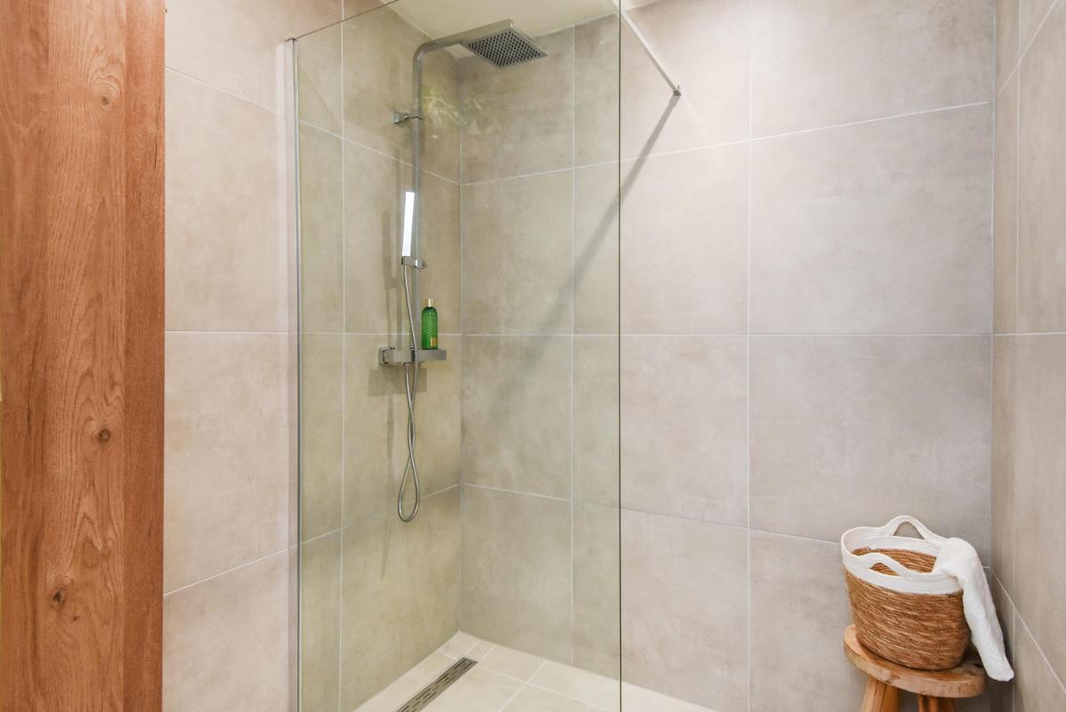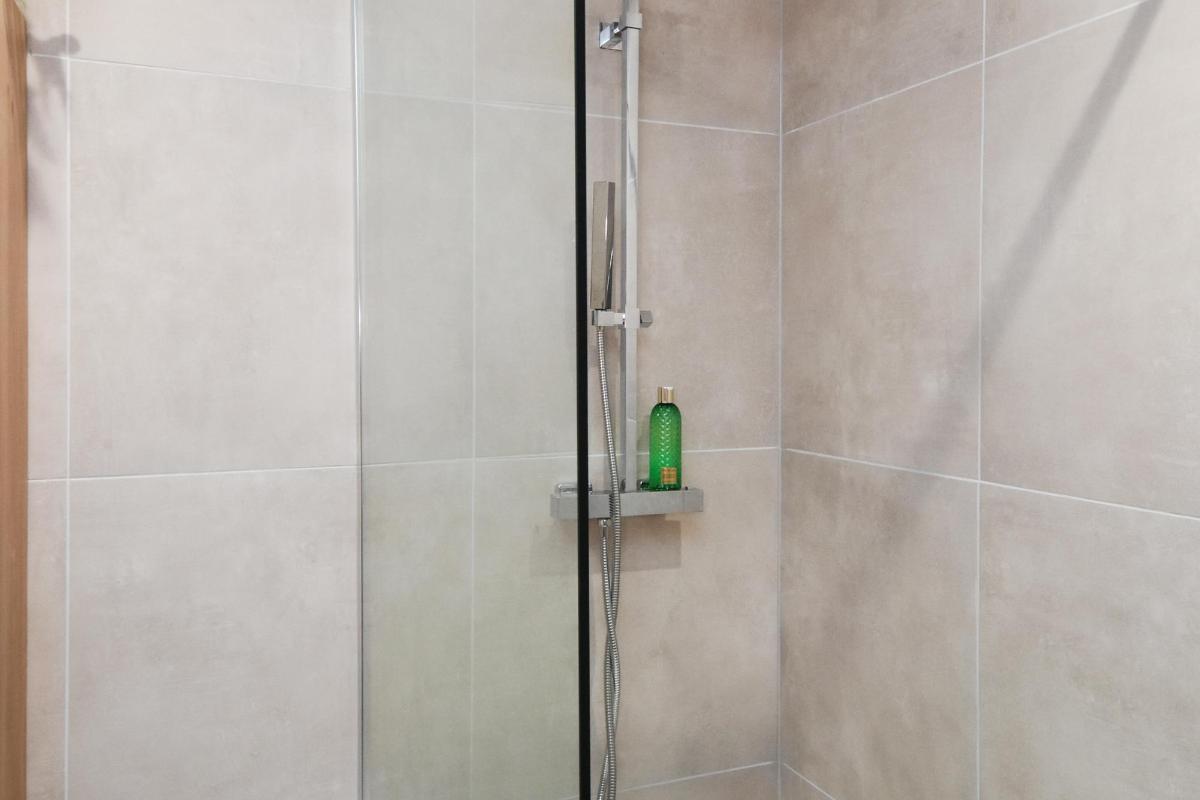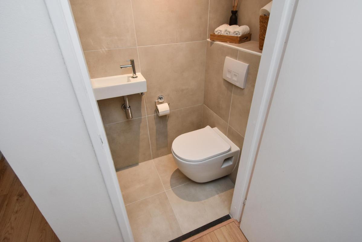 Layout: Main entrance, hallway with meter cupboard, access to the apartment. Hallway with closet space containing the central heating boiler, and a modern toilet with a hand basin. Spacious, inviting living room with plenty of natural light and large windows overlooking the garden. Luxurious open-plan kitchen in light taupe, equipped with a dishwasher, fridge-freezer, induction cooktop, oven, and microwave. A convenient utility room offers additional space, which can be customized to your needs. The house has two good-sized bedrooms with space for a decent-sized bed and a substantial wardrobe, as well as an additional room ideal for an office, extra storage, or a walk-in closet. A modern bathroom features a rain shower and an additional hand shower, a wall-mounted vanity unit with drawers, a beautiful mirror with mood lighting, and an anti-fog function.