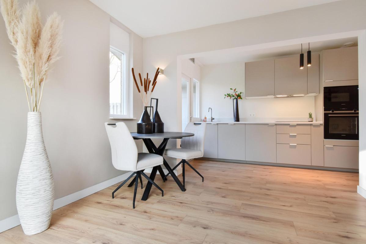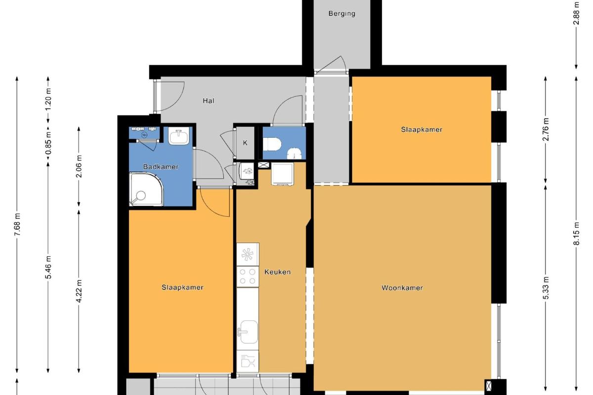 Indeling: Hoofdentree, hal met meterkast, toegang tot het appartement. Gang met kastruimte met CV-ketel, modern toilet met fontein. Ruime sfeervolle woonkamer met goede lichtinval, grote ramen met uitzicht op de tuin. Luxe open keuken in lichte taupe uitvoering, voorzien van vaatwasser, koel-vriescombinatie, inductie kookplaat, oven, magnetron. Handige bijkeuken voor extra ruimte, die naar eigen wens ingevuld kan worden. De woning heeft 2 goede slaapkamers met ruimte voor een behoorlijk bed en een behoorlijke kledingkast, daarnaast een extra kamertje zeer geschikt voor kantoor, extra opslag of een walk-in closet. moderne badkamer voorzien van regendouche en een extra handdouche, wandmeubel, badmeubel met lades, fraaie spiegel met sfeerlicht en anti-condens functie.