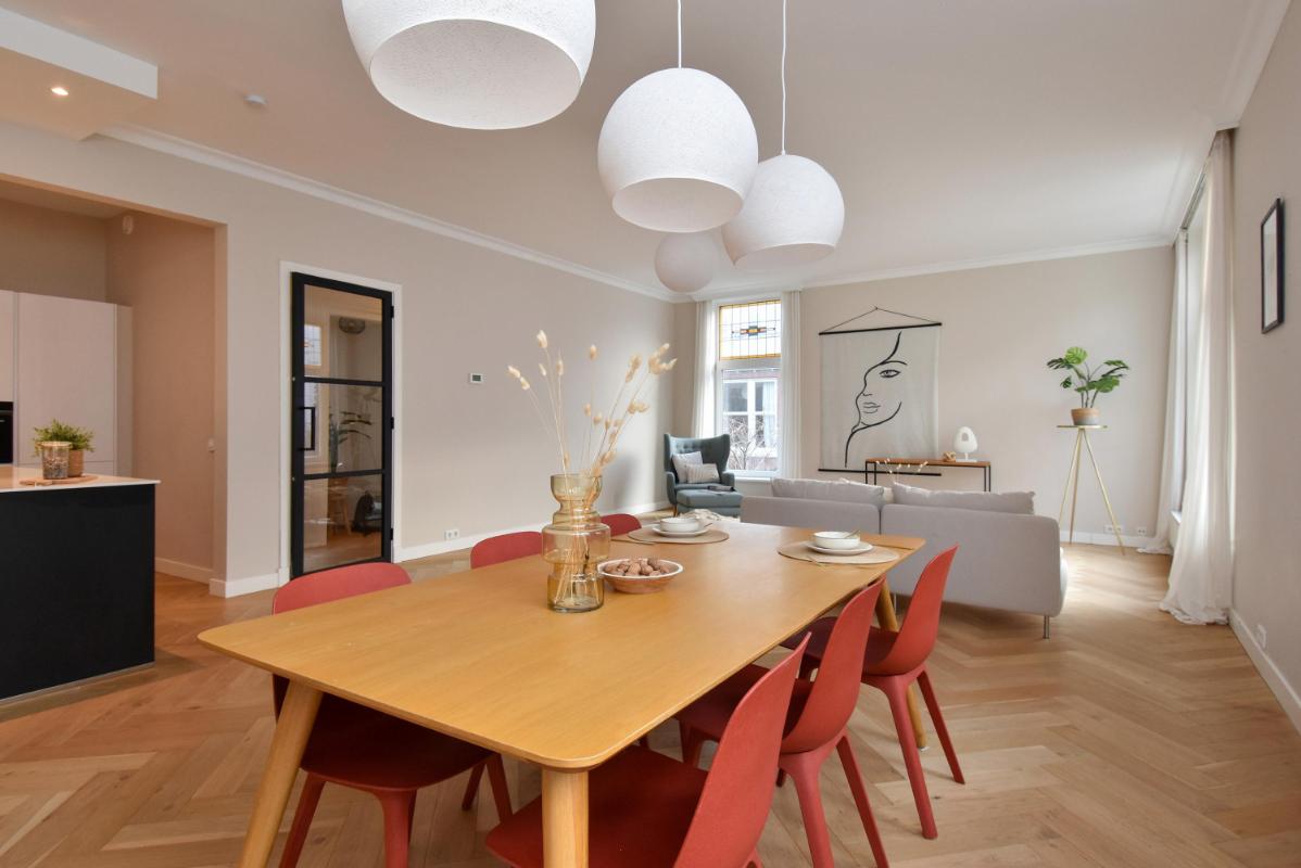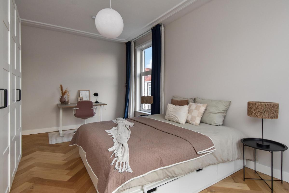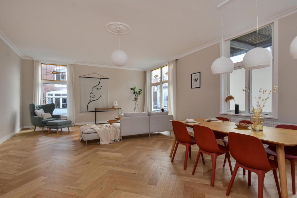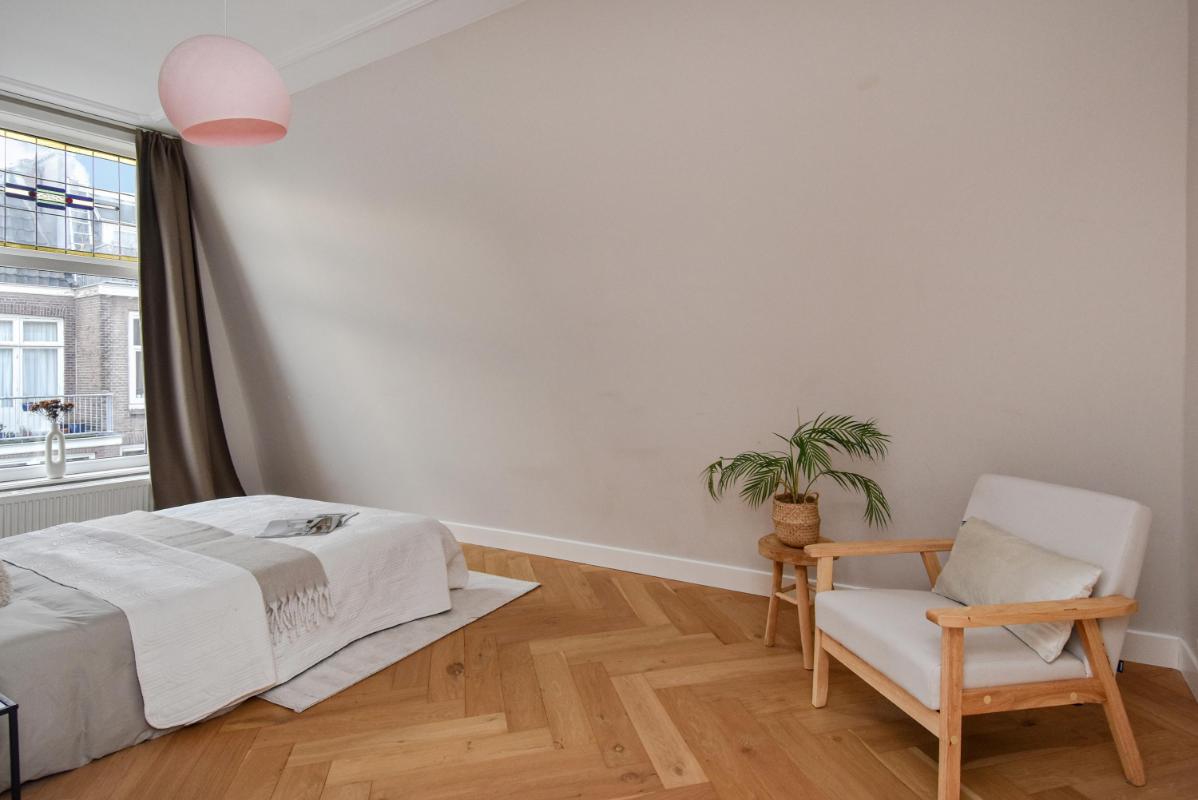 Spacious, bright, and modernly renovated duplex apartment located in the beautiful and desirable Regentessekwartier district of The Hague. The apartment is situated in the heart of a charming and vibrant neighborhood with numerous shops, supermarkets, and restaurants. Scheveningen beach, Strand Zuid, and The Hague city center are all within easy cycling distance. Public transport on Beeklaan and Laan van Meerdervoort is nearby, offering quick access to The Hague Central Station, for example. Major highways to Amsterdam (A4), Utrecht (A12), and Rotterdam (A13) are within 10-15 minutes by car. The apartment was fully renovated by a developer in 2021 and equipped with all modern conveniences, including the kitchen and bathroom, as well as the building services, HR+ glass, and roof insulation.