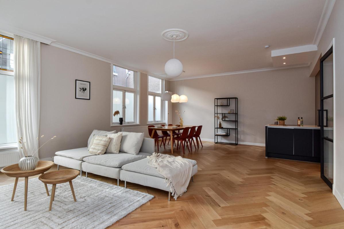 Bijzonderheden: - Woonoppervlak van ca. 149 m2; - Drie slaapkamers; - Zonnig balkon aan de achterzijde; - Volledig gerenoveerd in 2021; - Actieve VvE met bijdrage van €135,- p/mnd.; - Energielabel A; - Gelegen op eigen grond; - Gelegen binnen Gemeentelijk Beschermd Stads- Dorpsgezicht;