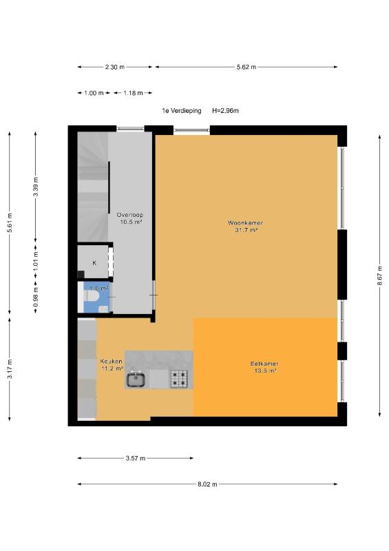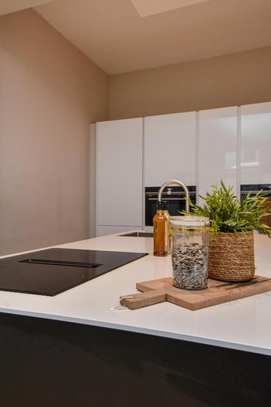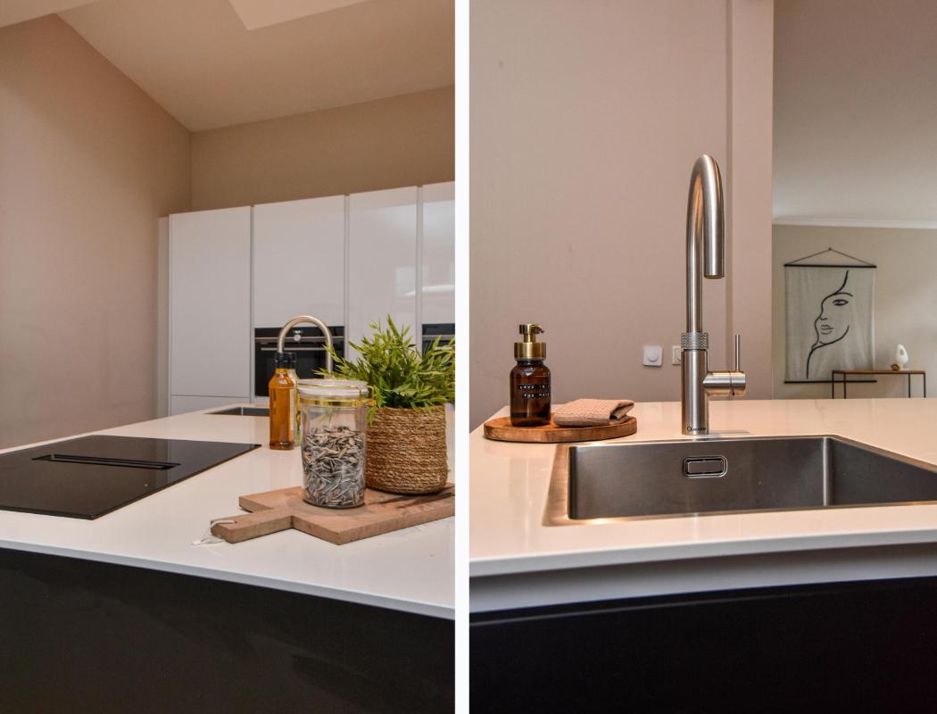 Indeling: Entree op de begane grond die via een lange en statige hal naar de woning leidt. Via de trap naar de eerste verdieping met overloop, toilet en berging. Zeer ruime en lichte woonkamer/eetkamer met open keuken en kookeiland dat van alle gemakken is voorzien. Met de trap aan de overloop naar de tweede verdieping waar zich drie slaapkamers bevinden. Twee groteren en aan de kleinere slaapkamer grenst een mooi en zonnig balkon. Badkamer met inloopdouche, vrijstaand bad en fraai wastafelmeubel.