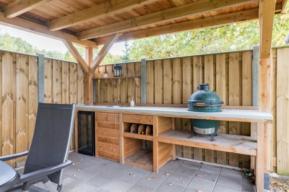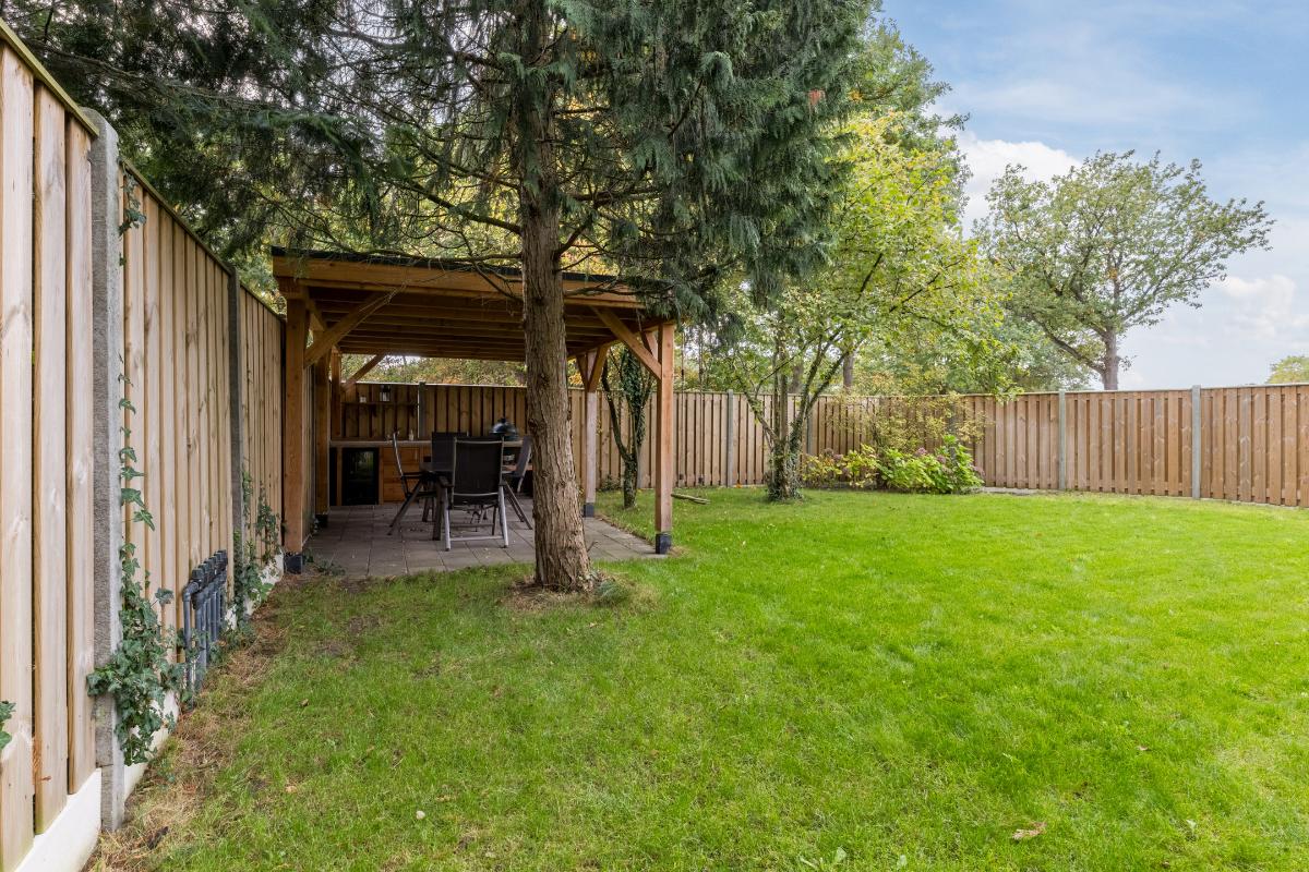 Tuin rondom; De woning beschikt over een fraai aangelegde tuin rondom, met diverse zitplekken, beplanting en een overkapping waar je heerlijk beschut kunt zitten. Je kan hier de hele dag genieten van het buitenleven: van een zonnig ontbijt tot een lange zomeravond in het licht van de ondergaande zon. De overkapping is voorzien van een op maat gemaakte buitenkeuken met stromend water en elektra. De tuin is onderhoudsvriendelijk vanwege het ondergrondse sproeisysteem. Daarnaast is er een voorziening aangelegd voor een buitendouche. Of je nu wilt tuinieren, barbecueën, ontspannen met een boek of spelen met kinderen – deze tuin biedt het allemaal. Aan de voorzijde van de woning kijk je uit over het open landschap, terwijl de zij- en achtertuin grenst aan een natuurgebied Dit zorgt voor een unieke combinatie van vrij uitzicht en beschutting, waardoor je in volledige privacy kunt genieten van de rust.