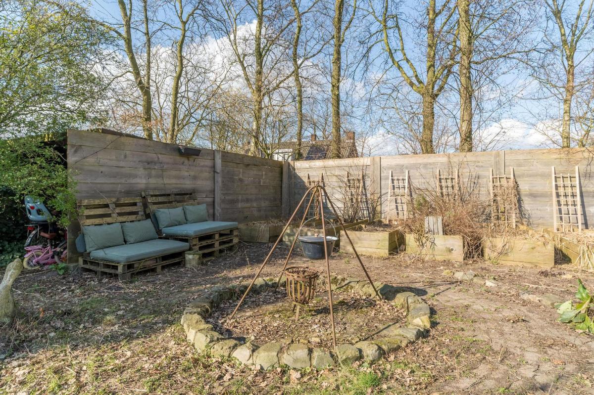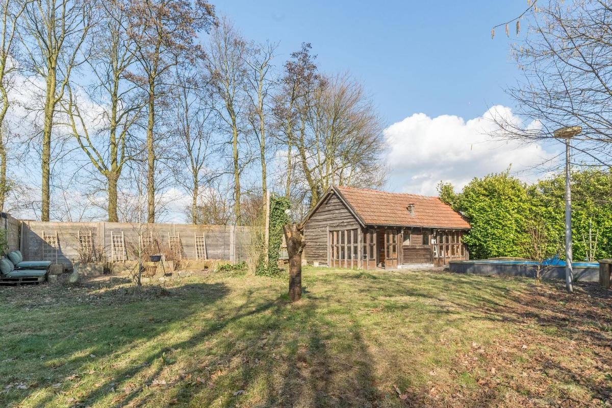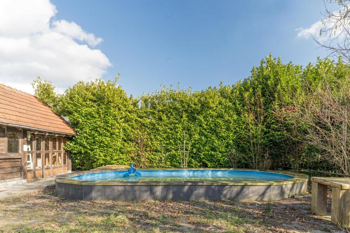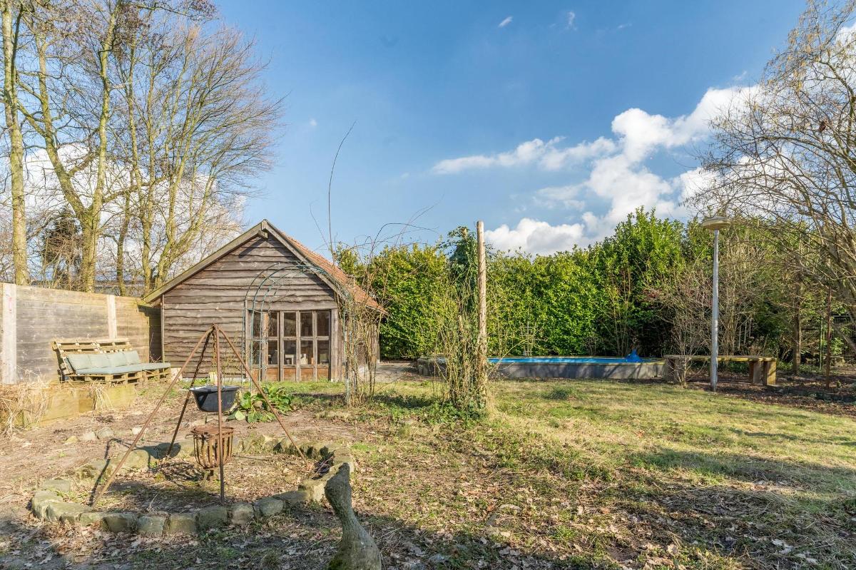 Tuin, zwembad en poolhouse De diepe tuin is met zorg ingericht en biedt volop privacy. Je vindt hier een zwembad van 8 x 4 meter met verhoogde kindvriendelijke rand en een volledig ingericht poolhouse met zit- en eetgedeelte, keukenblok, toilet, internet, gemetselde BBQ en vliering. Verder is er een fire pit, prieel, kippenhok, moes- en kruidentuin en een grondwaterpomp voor bewatering. Op de oprit is ruimte voor zeker vijf auto’s.