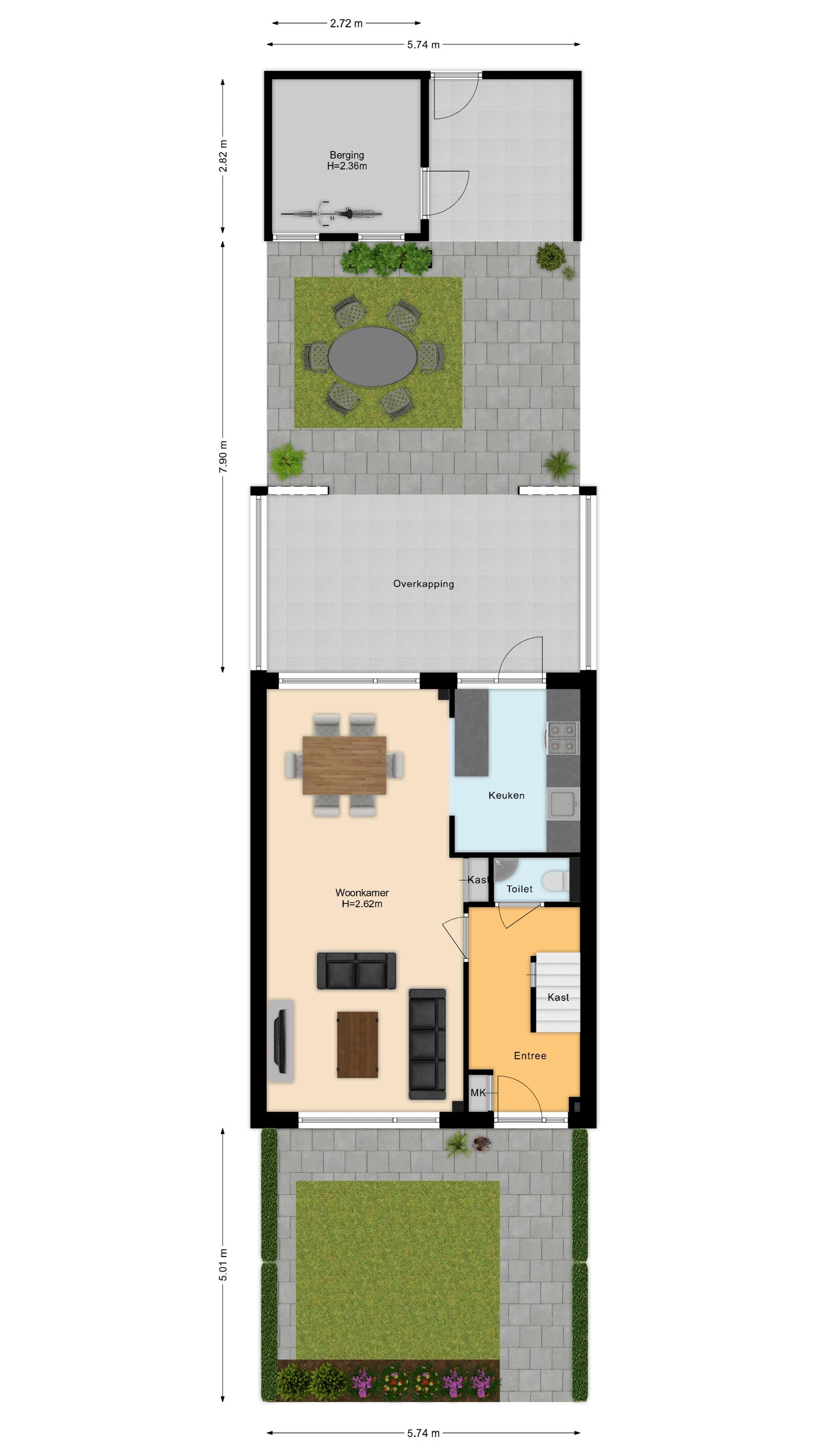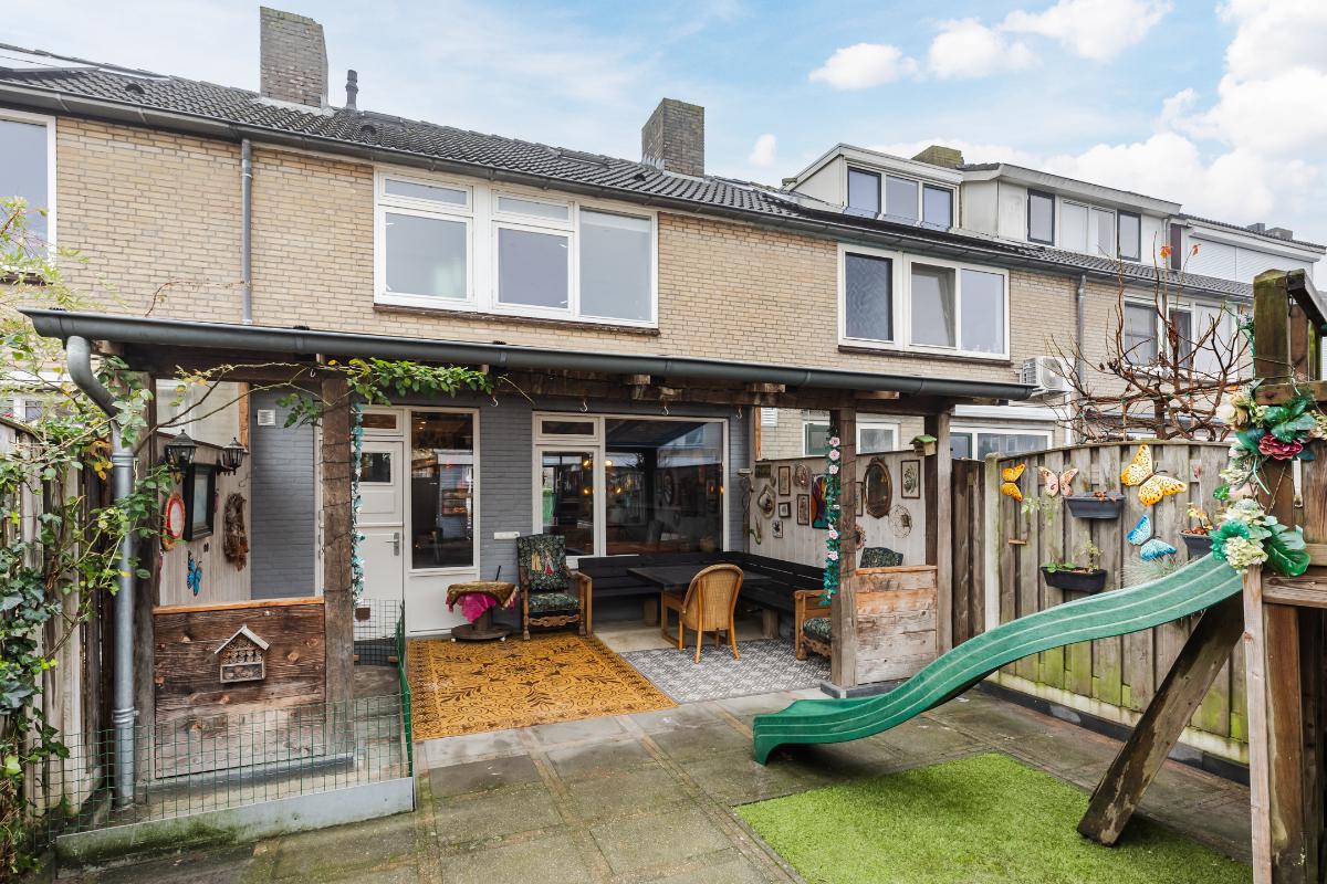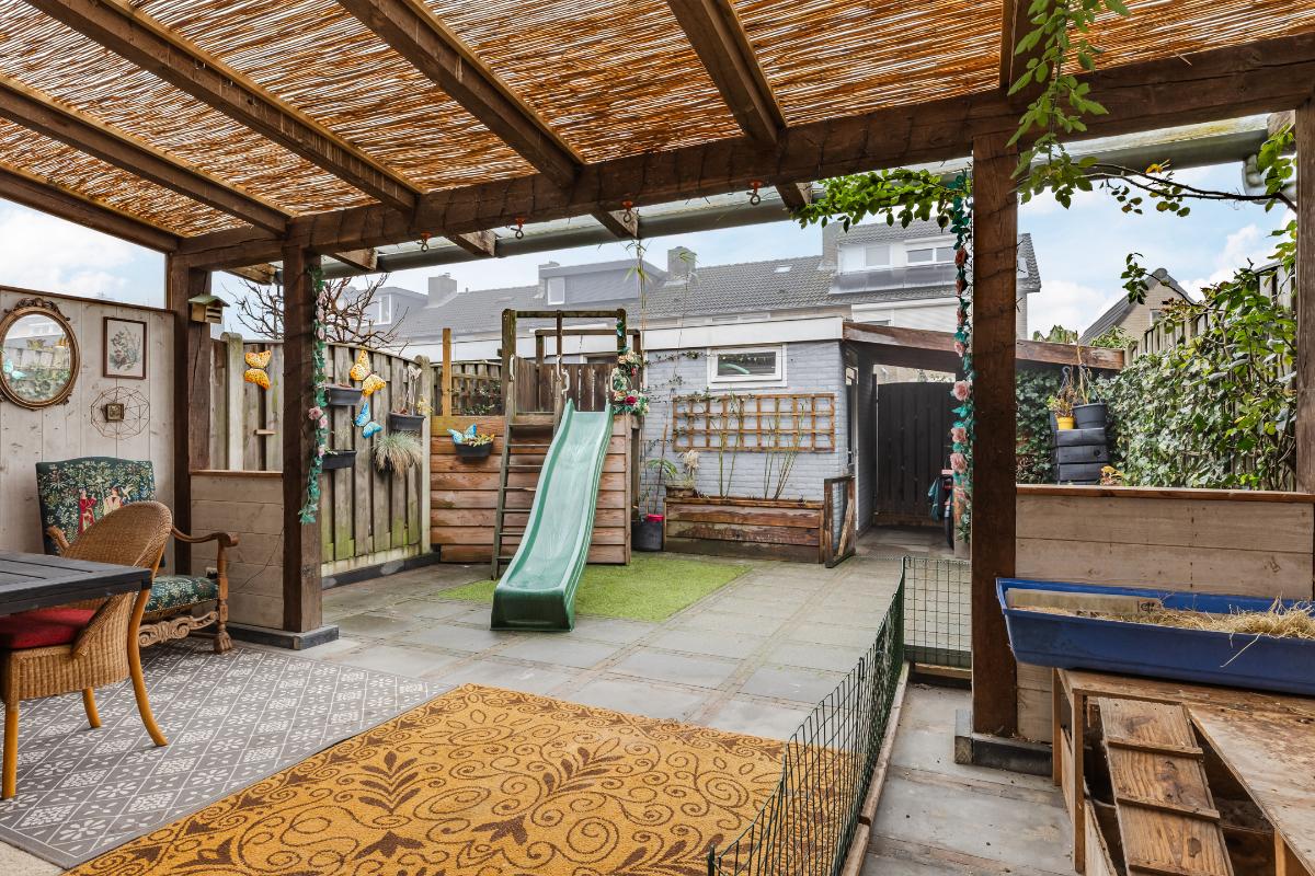 De achtertuin is een fijne plek om te vertoeven en beschikt over een overkapping aan de achtergevel, een ruime berging en een achterom voor extra gemak. De tuin is onderhoudsvriendelijk aangelegd en gelegen op het westen, waardoor je smiddags en s'avonds kan genieten van de avondzon.