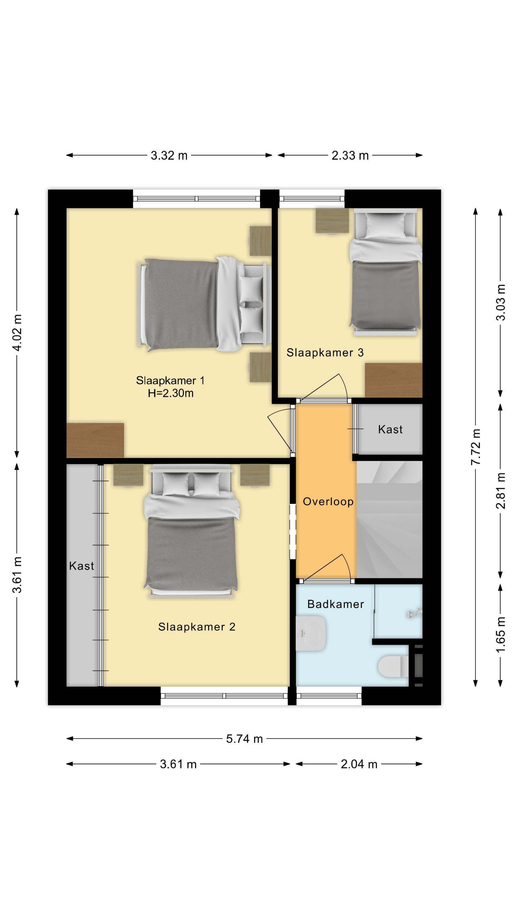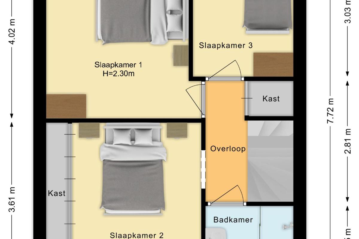 Op de eerste verdieping bevinden zich drie nette slaapkamers, een badkamer met douche, toilet en wastafel, én een extra bergruimte, ideaal voor linnengoed, voorraad of huishoudelijke spullen.