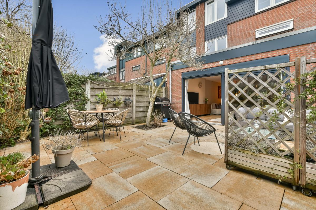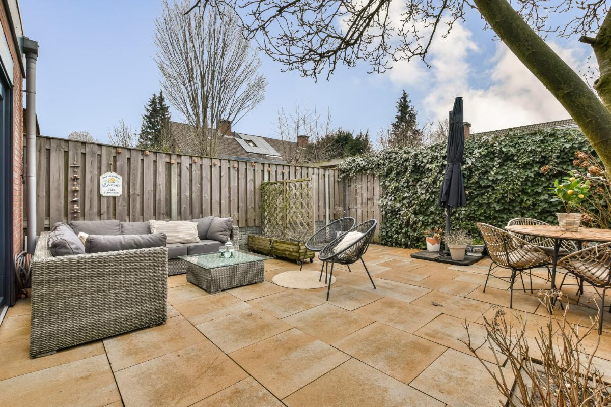The deep back garden is accessible through sliding doors. The well-maintained back garden offers ample space for a spacious lounge set and/or dining table. The southwest-facing garden features a good fence, decorative paving stones, and borders with established plants.
