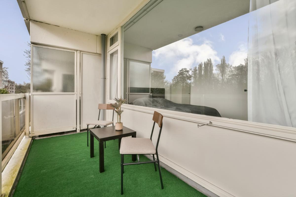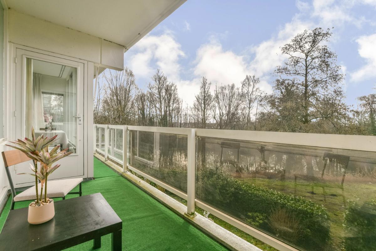 Het zonnige balkon ligt op het zuidwesten en biedt een breder gedeelte om lekker te zitten en een smaller gedeelte (zgn. zeembalkon). Het balkon geeft een heerlijk vrij uitzicht op de groene omgeving.