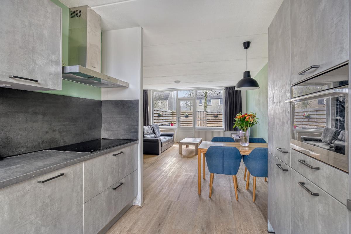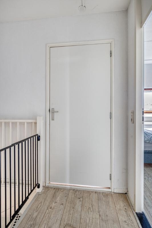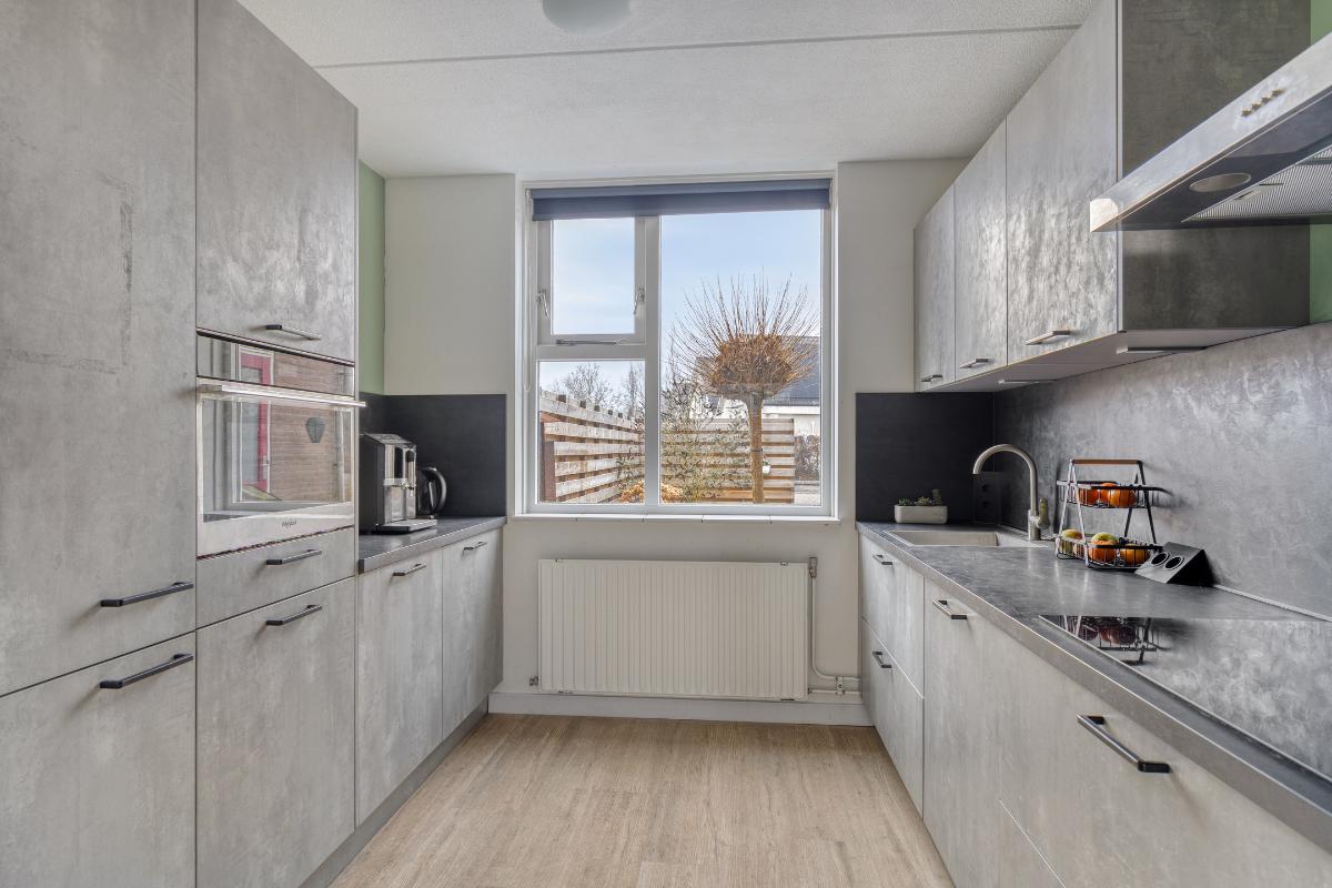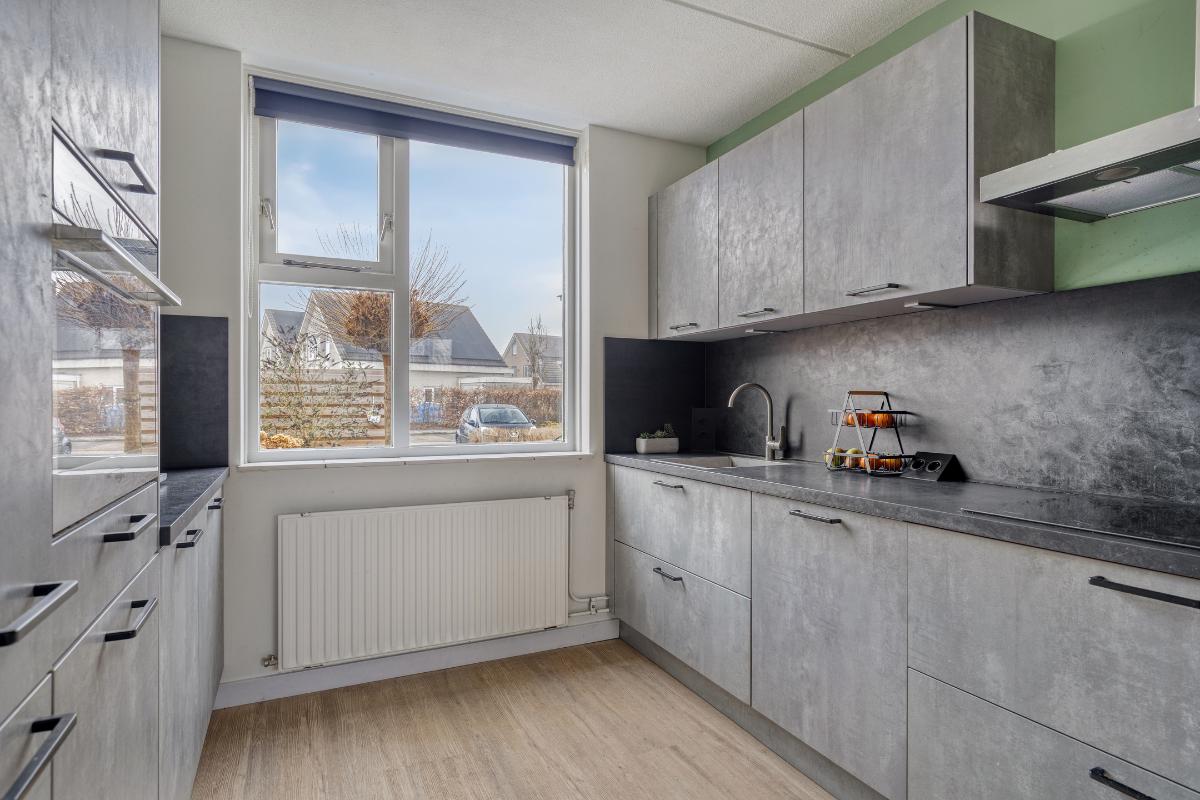 Indeling Begane grond: entree/hal met meterkast, trapopgang en toiletruimte met fonteintje. De ruime en zonnige woonkamer is tuingericht en v.v. een tuindeur, een trapkast en een deels open keuken, totaal 33 m2. De moderne keukeninrichting heeft een ingebouwde inductie kookplaat, afzuigkap, koelkast, vriezer, combi oven-magnetron en vaatwasser. 1e Verdieping: overloop met twee slaapkamers resp. 11 en 12 m2 met bergruimte en dakraam. De derde werk-/hobbykamer meet 6 m2 heeft een dakraam, c.v.ketel, mechanische ventilatie en een omvormer voor de zonnepanelen. De badkamer is v.v. een ligbad met douchescherm, wastafelmeubel, wasmachine aansluiting en radiator.