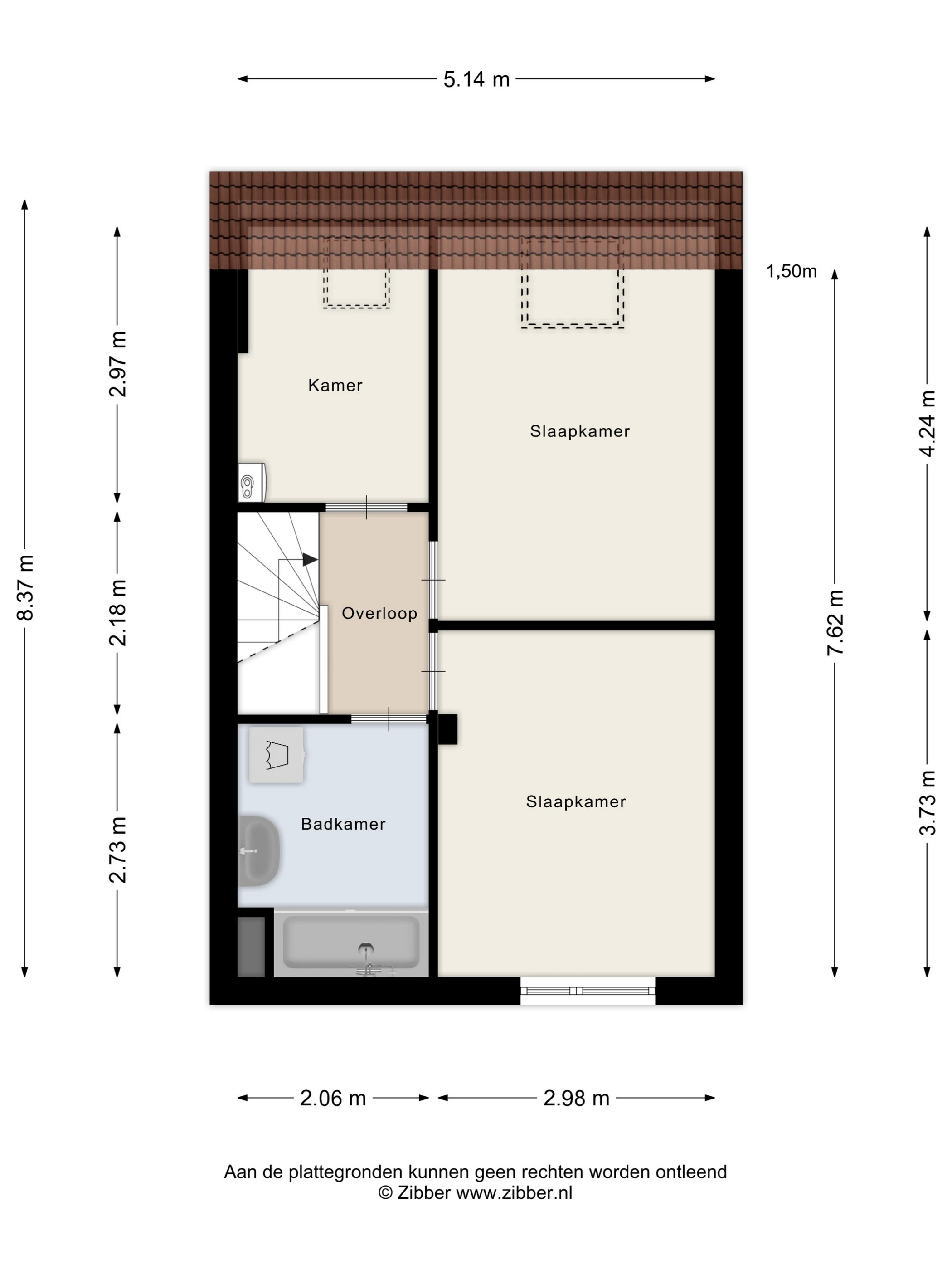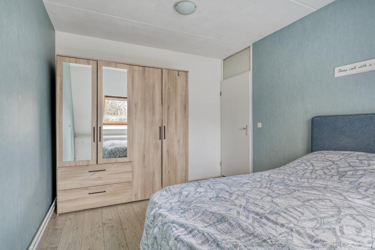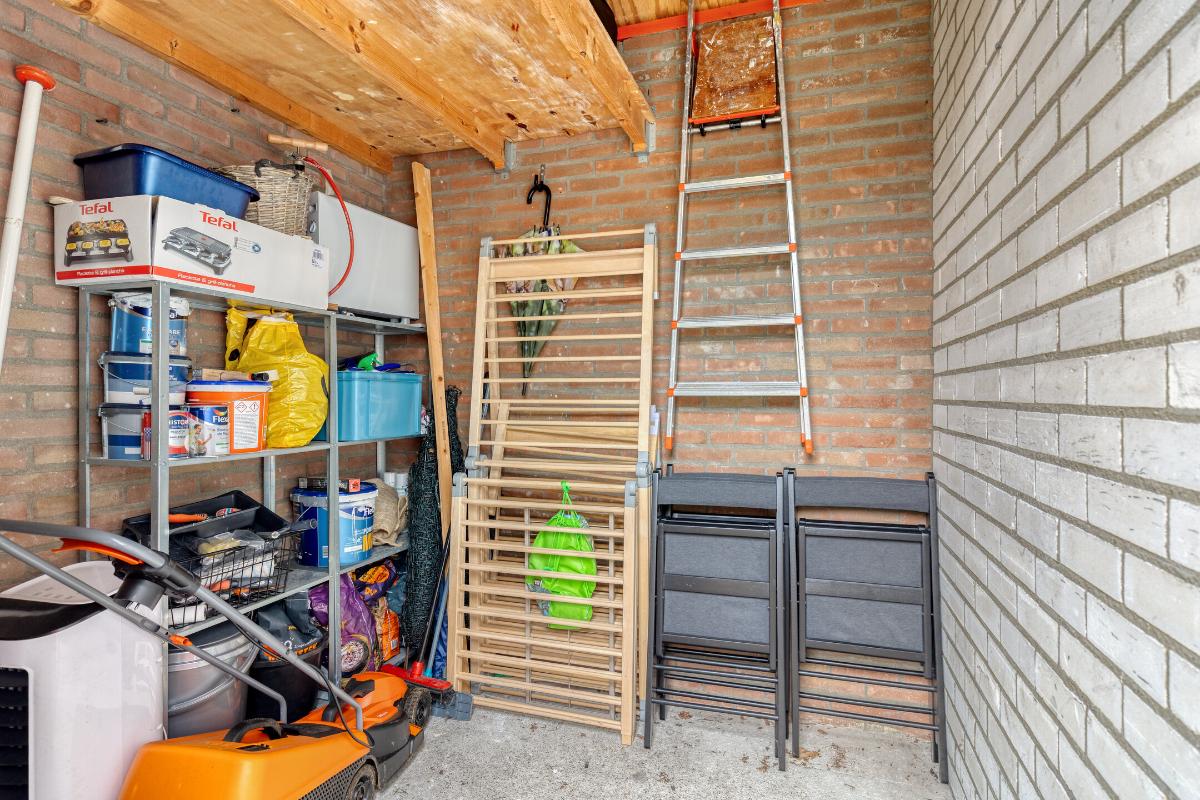 Indeling Begane grond: entree/hal met meterkast, trapopgang en toiletruimte met fonteintje. De ruime en zonnige woonkamer is tuingericht en v.v. een tuindeur, een trapkast en een deels open keuken, totaal 33 m2. De moderne keukeninrichting heeft een ingebouwde inductie kookplaat, afzuigkap, koelkast, vriezer, combi oven-magnetron en vaatwasser. 1e Verdieping: overloop met twee slaapkamers resp. 11 en 12 m2 met bergruimte en dakraam. De derde werk-/hobbykamer meet 6 m2 heeft een dakraam, c.v.ketel, mechanische ventilatie en een omvormer voor de zonnepanelen. De badkamer is v.v. een ligbad met douchescherm, wastafelmeubel, wasmachine aansluiting en radiator.