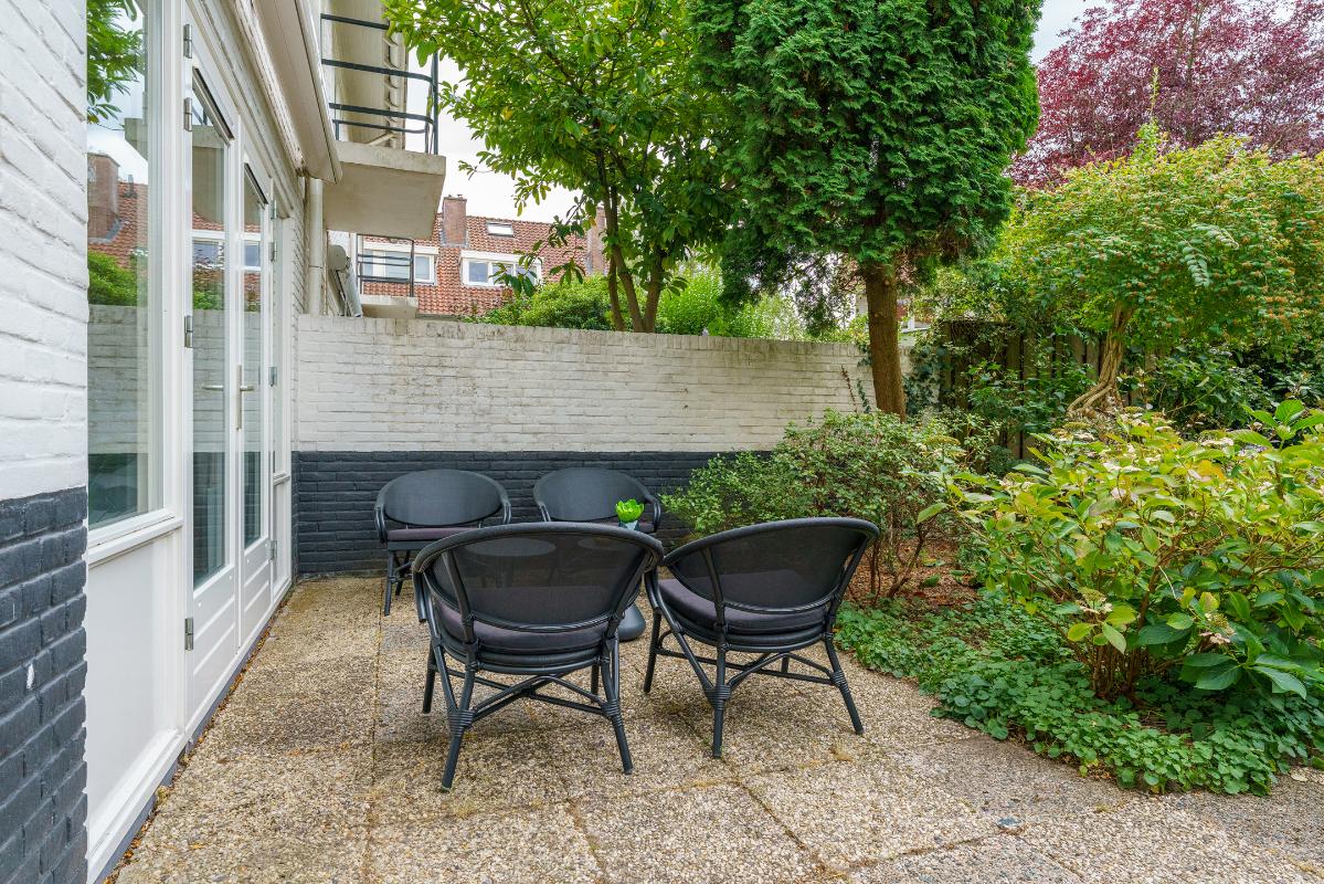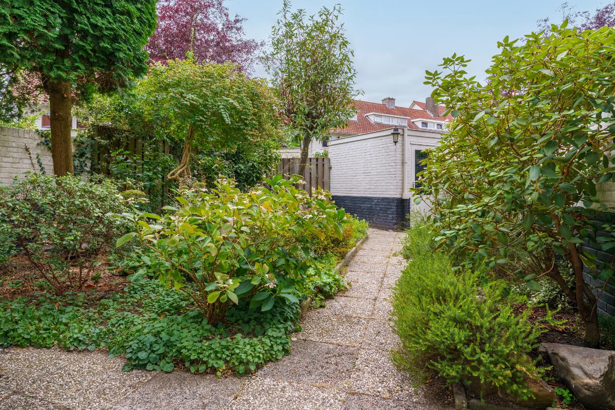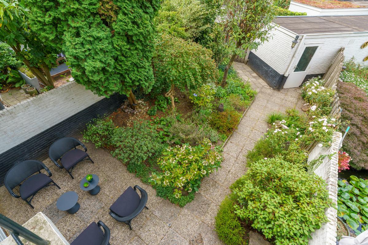 Tuin De achtertuin is een groene oase van rust en ruimte. Direct achter de woning bevindt zich een ruim terras. Achterin de tuin ligt een stenen berging met elektra, ideaal voor het opbergen van tuingereedschap of fietsen. De tuin beschikt over een achterom naar het gemeenschappelijke achterpad, diverse vaste beplanting, een buitenkraantje en een elektrisch zonnescherm. De ligging op het westen zorgt ervoor dat u hier lang van de zon kunt genieten.