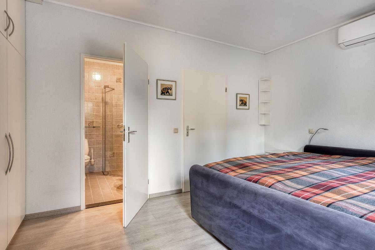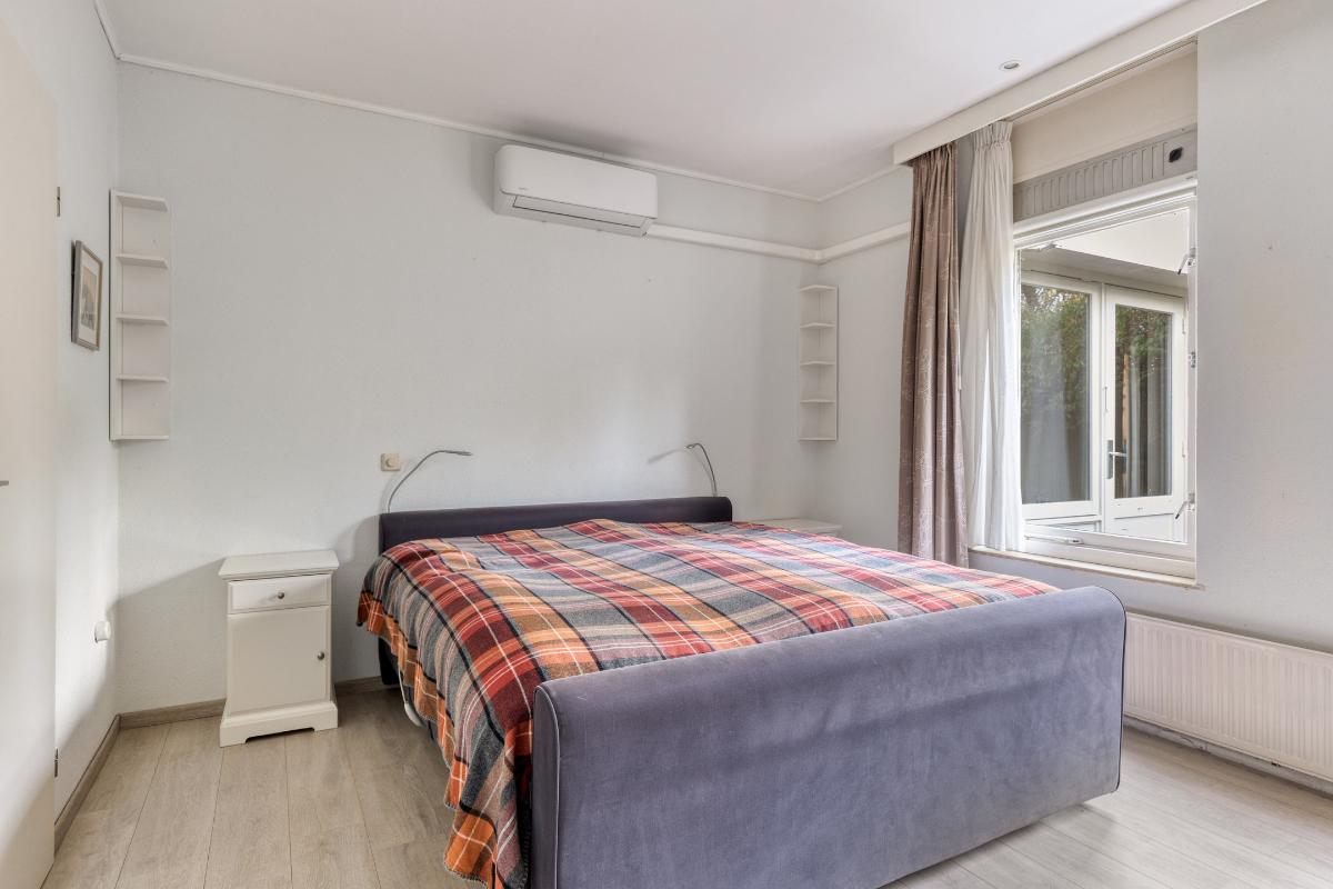 SLAAPKAMERS Slaapkamer 1 (ca. 14 m²): Royale hoofdslaapkamer met vaste kastenwand, airconditioning en badkamer en-suite. Slaapkamer 2 (ca. 14 m²): Gelegen in de aanbouw en momenteel in gebruik als werkkamer. Deze slaapkamer beschikt over een eigen loopdeur naar de tuin.