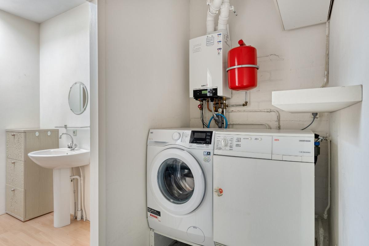 TECHNISCHE RUIMTE / INPANDIGE BERGING / WASRUIMTE Hier bevinden zich de aansluitingen voor was- en droogapparatuur alsmede de opstelplaats van de C.V.-ketel (bouwjaar 2016). Vanuit deze ruimte is er een loopdeur naar de entree.