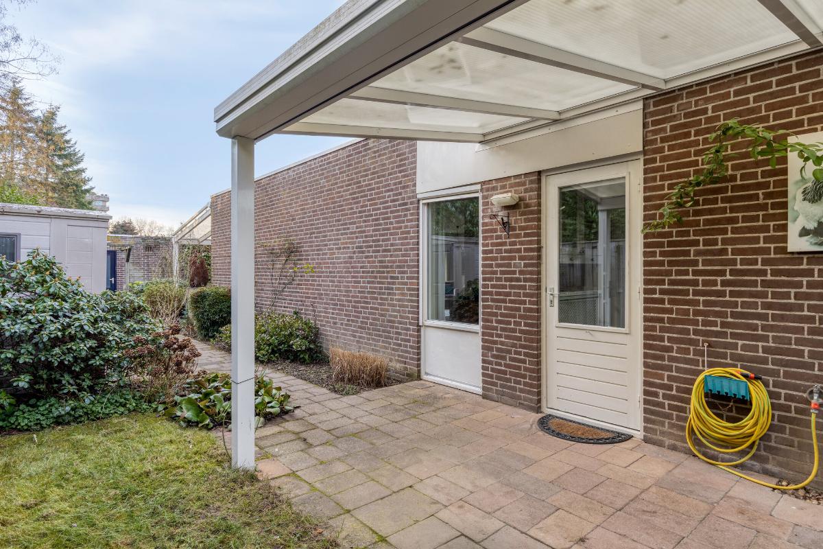 INDELING VAN DE WONING Deze vrijstaande bungalow is gelegen aan een autoluw woonhofje. Naast de eigen garage, welke pal grenst aan en toegankelijk is vanuit de tuin, zijn er tevens openbare parkeerplaatsen in de directe omgeving aanwezig. De woning is rondom vrij gelegen en grenst direct aan groenvoorzieningen en natuur, wat bijdraagt aan een gevoel van rust en privacy.