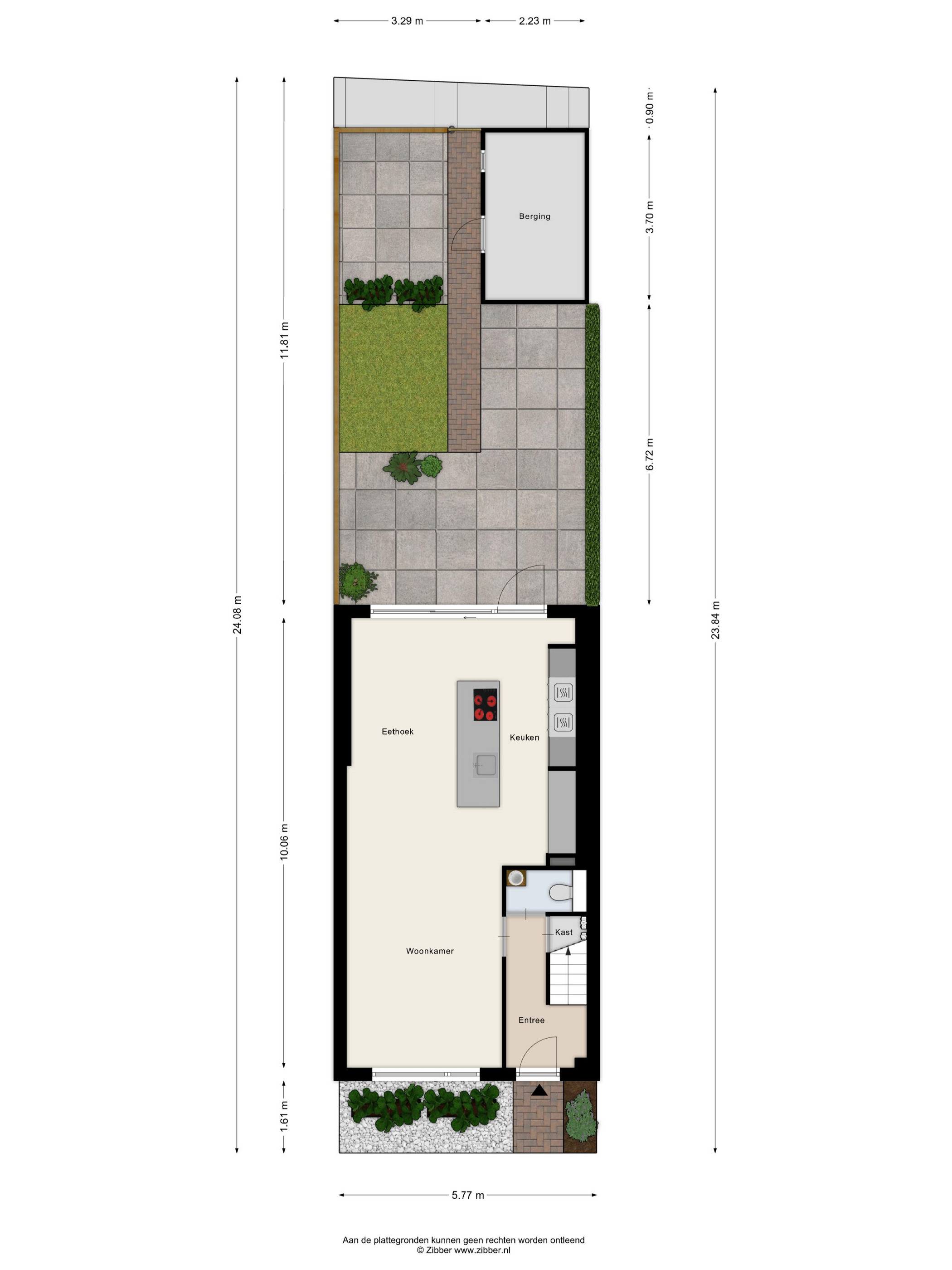BUITENRUIMTE Voortuin en achtertuin met vrijstaande stenen berging en achterom. De achtertuin ligt op het zonnige westen en is circa 14 meter diep. De tuin is ingericht met sierbestrating, een zonneterras, gazon en borders met beplanting.