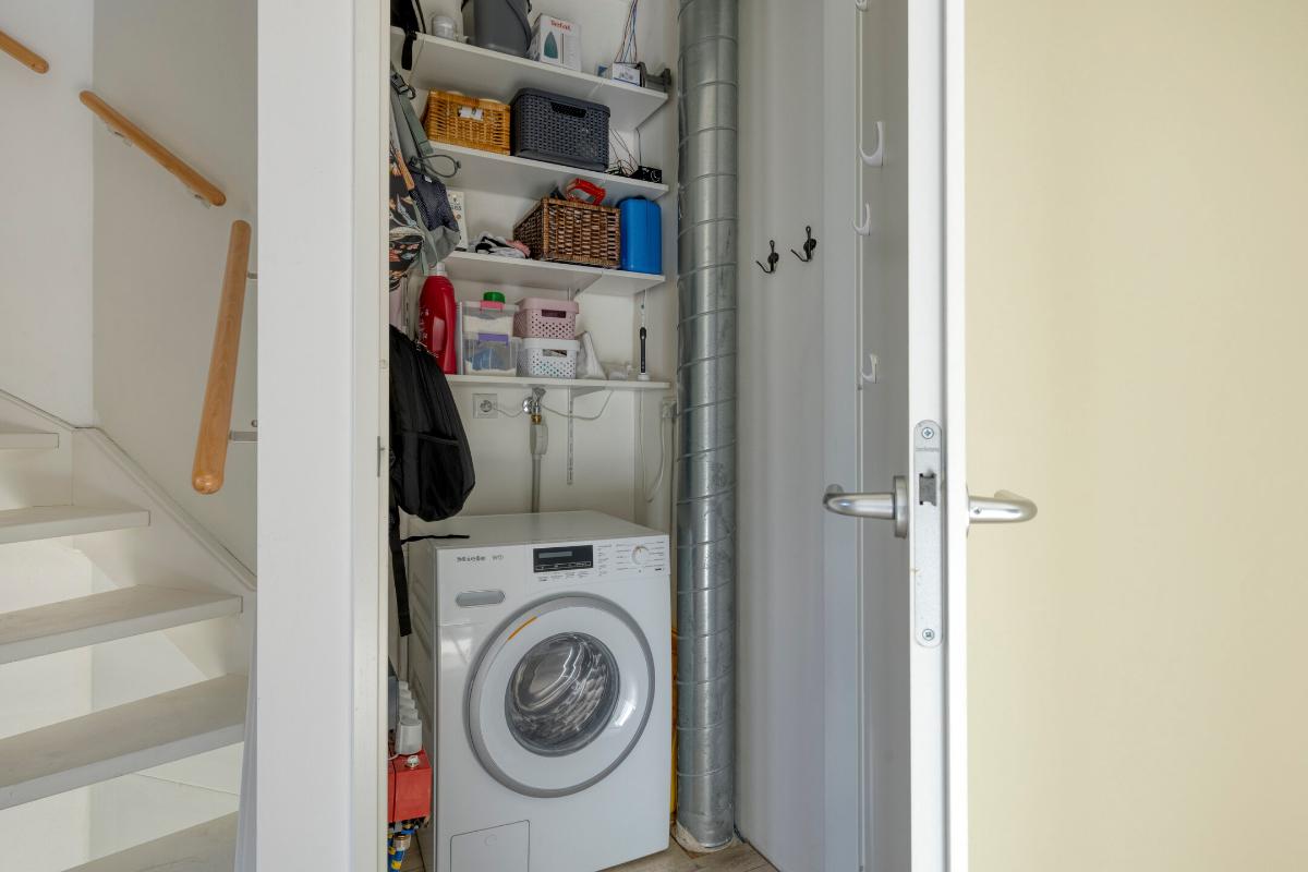 Entree met toilet, meterkast en een praktische berging met opstelling van de warmtepomp.