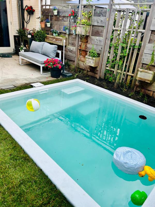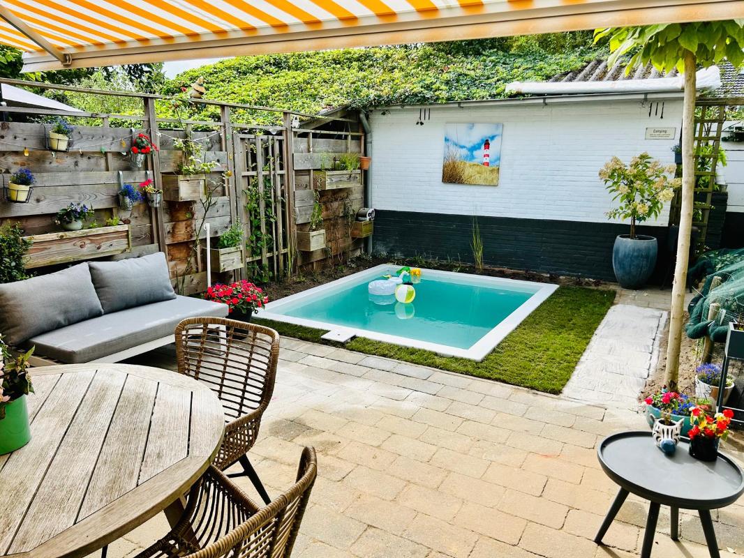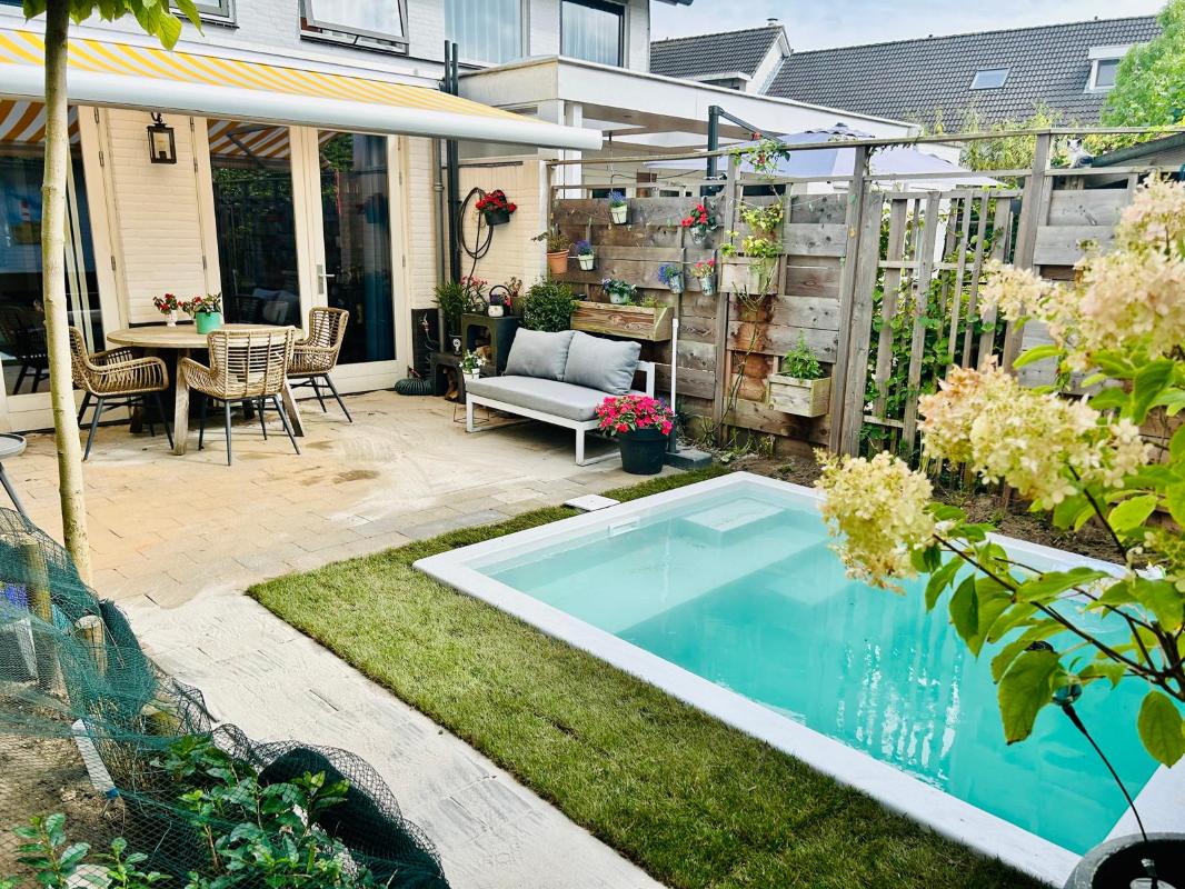 TUIN EN BERGING: De privacy biedende achtertuin ligt op het zuidwesten en is voorzien van een stenen berging met elektra en een achterom. De tuin is aangelegd met gazon, zwembad (Plunge Pool, uit 2025) met verwarming door middel van een warmtepomp, sierbestrating, diverse beplanting en een zonneluifel. Achterin de tuin bevindt zich een berging en achterom die u door middel van een brandgang naar de openbare straat leidt.