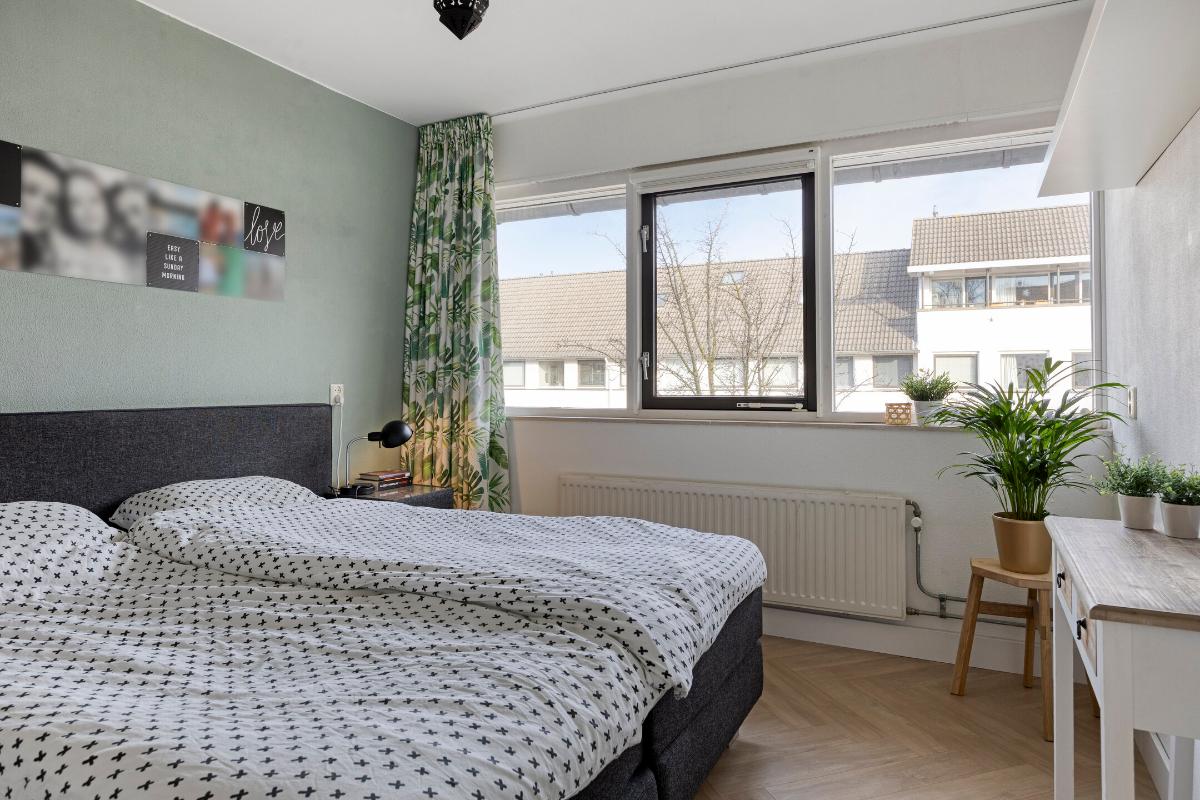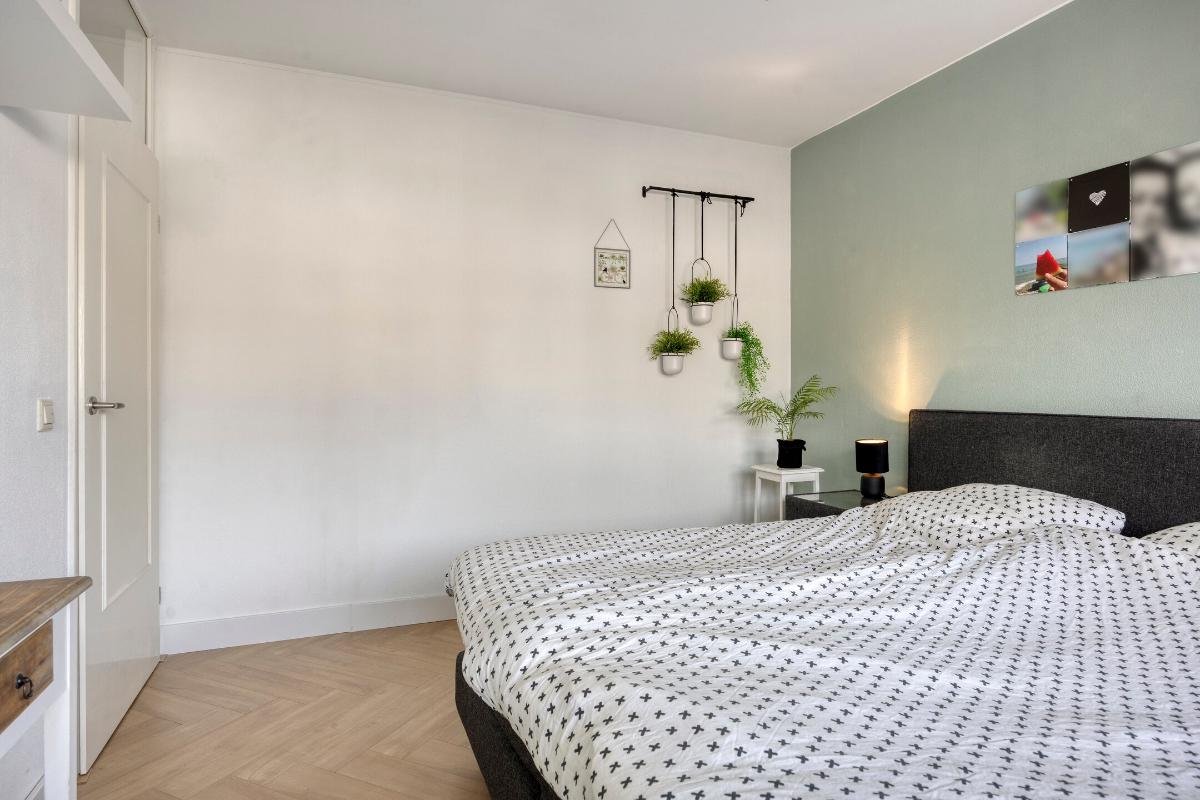 Drie slaapkamers, waarvan één aan de achterzijde en twee aan de voorzijde, allen voorzien van een visgraat laminaatvloer en horren. - hoofdslaapkamer voorzijde: 3,15m*3,87m= 12m2 - slaapkamer voorzijde: 2.14m*2.83m= 6m2 - slaapkamer achterzijde (met rolluik): 3.26m* 3,15m= 10,26m2
