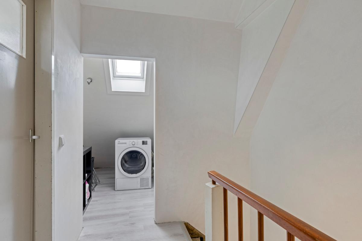 TWEEDE VERDIEPING Via vaste trap bereikbare zolderverdieping met voorzolder en vijfde slaapkamer met dakkapel. Vanuit de voorzolder is er toegang tot bergruimte en de technische ruimte met opstelling van de C.V.-ketel, aansluitingen voor was- en droogapparatuur en de omvormer van de zonnepanelen.