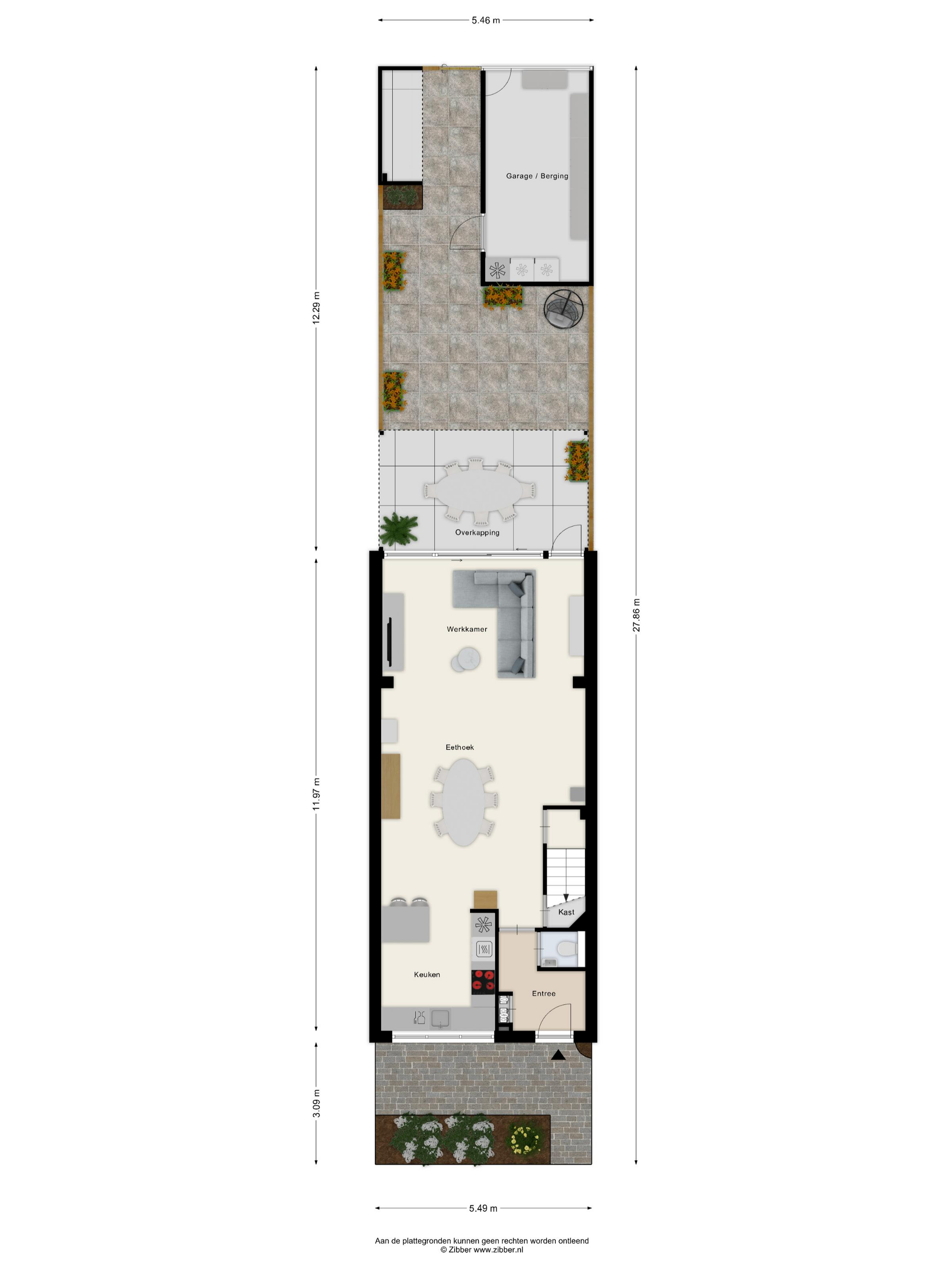 BUITENRUIMTE Voortuin bestaande uit een border met gevarieerde beplanting. Achtertuin met aluminium serre/overkapping, sierbestrating, vrijstaande stenen berging c.q. garage, overkapping t.b.v. het plaatsen van containers en eigen achterom. De garage/berging is geïsoleerd waardoor de bestaande garagedeur momenteel achter de wandbetimmering valt. Door het verwijderen van de betimmering kan deze ruimte weer als volledige garage worden gebruikt.