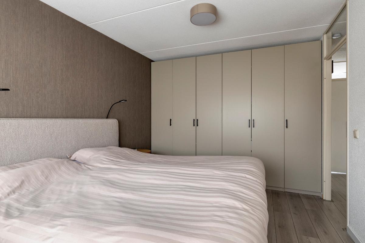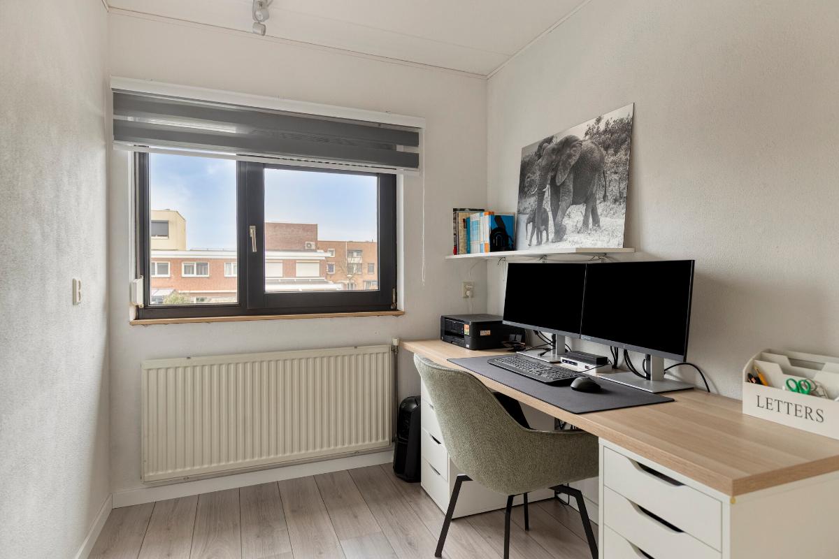 SLAAPKAMER(S) Slaapkamer 1 (ca. 13m²): Ruime "master" slaapkamer, gelegen aan de voorzijde van de woning; Slaapkamer 2 (ca. 12m²): Eveneens een ruime tweede slaapkamer, gelegen aan de achterzijde van de woning; Slaapkamer 3 (ca. 6m²): De derde slaapkamer is gelegen aan de achterzijde van de woning en is momenteel in gebruik als werkkamer. Er is een vaste kast aanwezig welke achterblijft in de woning.