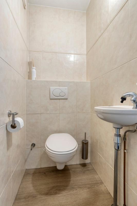 HAL/ENTREE Entree met meterkast (voorzien van een vernieuwde groepenkast), toiletruimte met wandcloset en fonteintje en loopdeur naar de living.