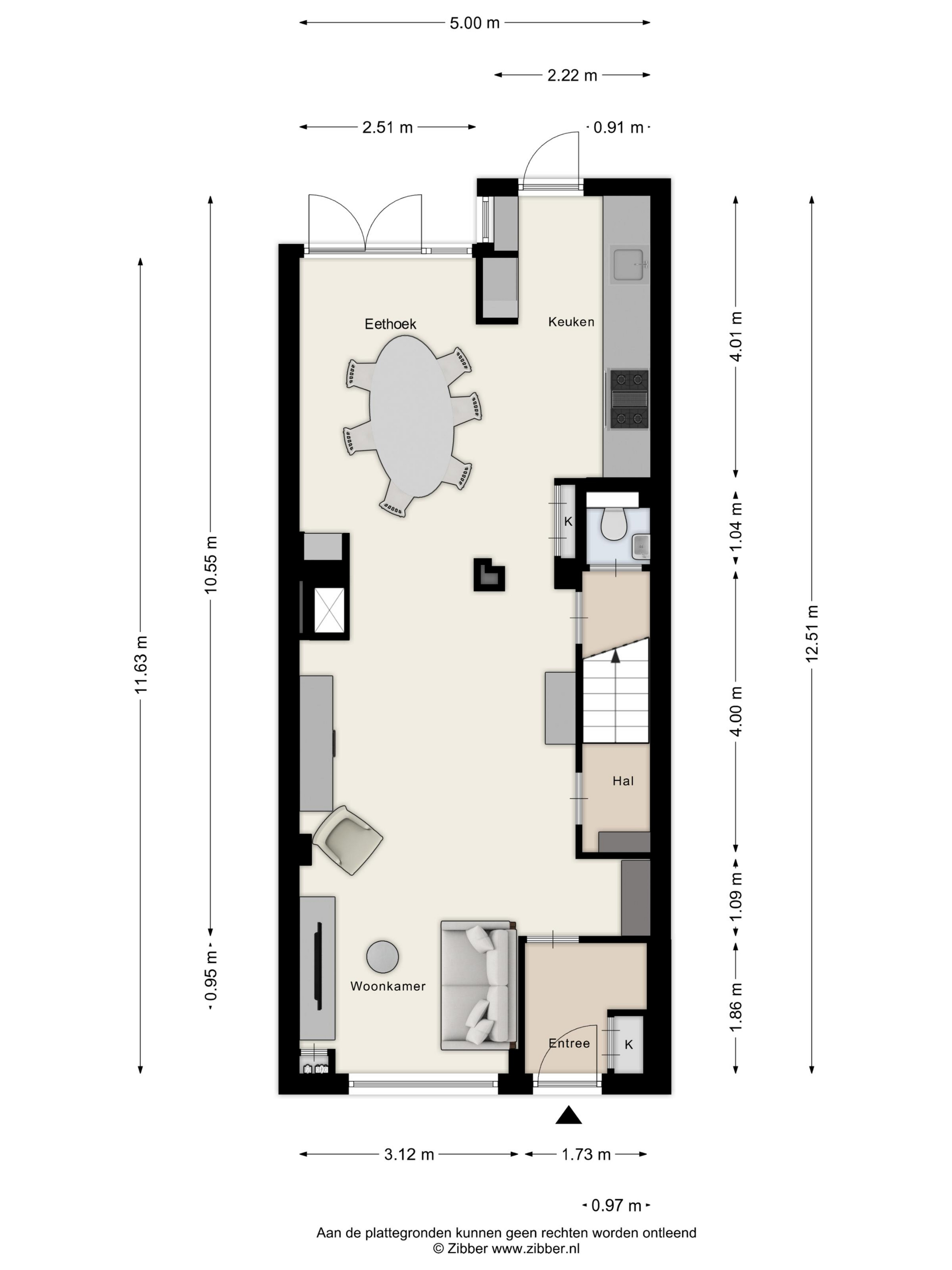 Woonkamer Vanuit de ontvangsthal bereikt u de sfeervolle woonkamer. De kamer is verdeeld in verschillende segmenten met aan de voorzijde de zithoek met open haard en de vernieuwde meterkast. Halverwege de woonkamer geeft een portaal toegang tot de trapopgang naar de 1e verdieping. Een 2e portaal geeft toegang tot het toilet en bergruimte onder trap.