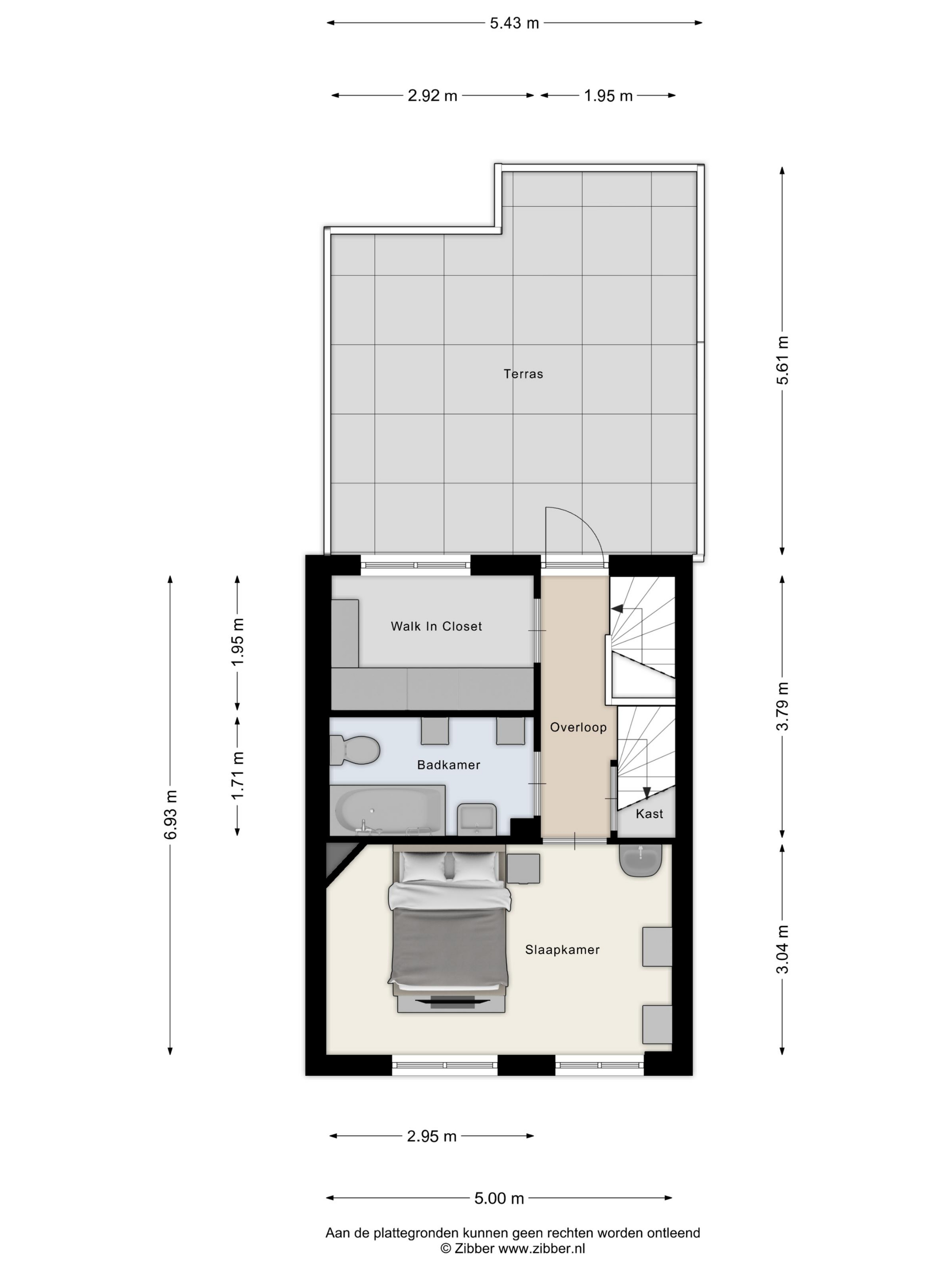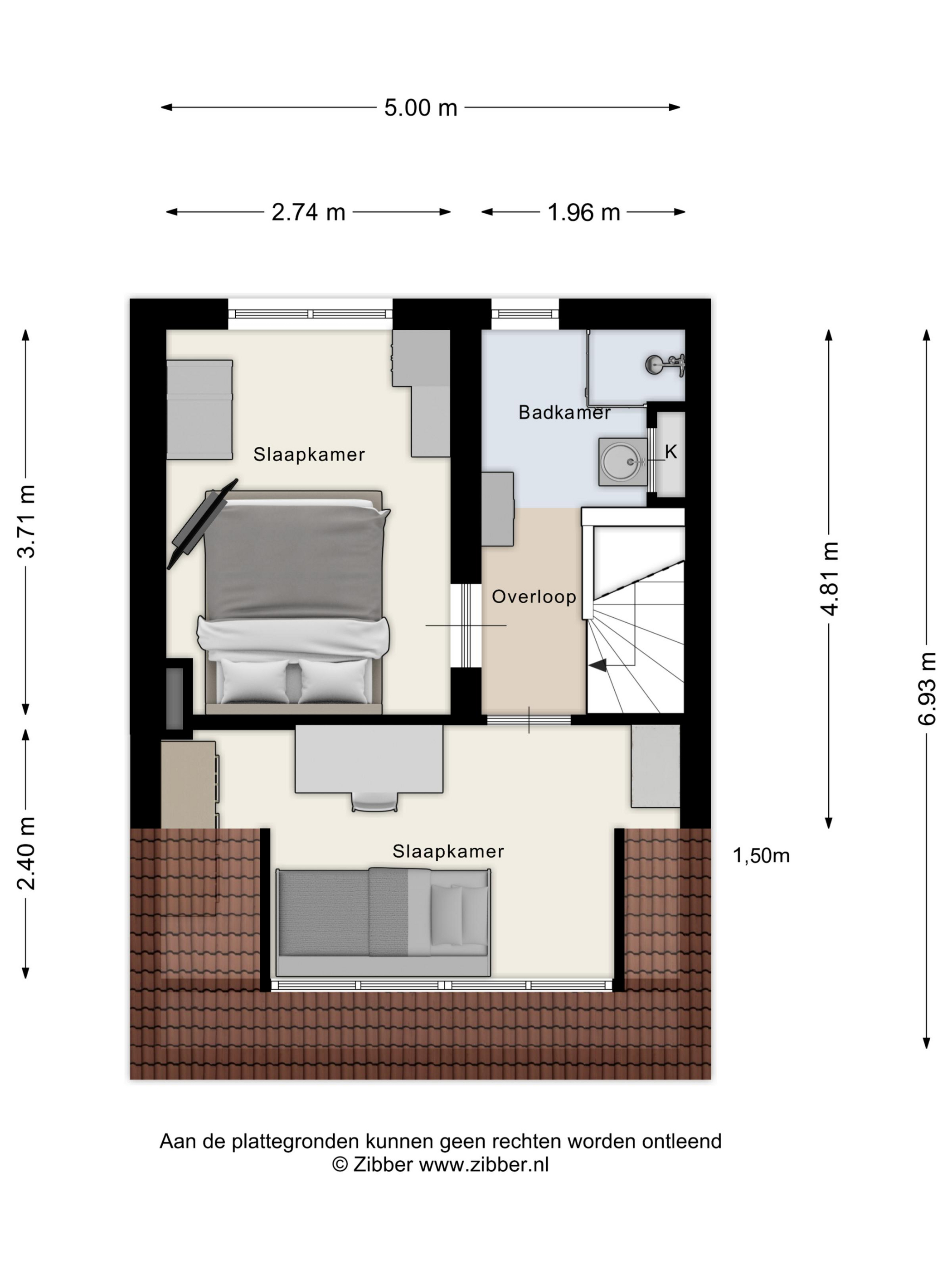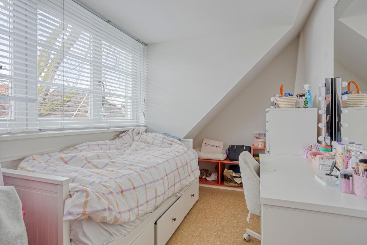 Slaapkamer 3 De slaapkamer aan de voorzijde heeft een grote dakkapel met draai-/ kiepramen, glad stucwerk wanden en plafond en een kurken vloerafwerking die over de gehele verdieping doorloopt. De vloer is hier voorzien van vloerverwarming.