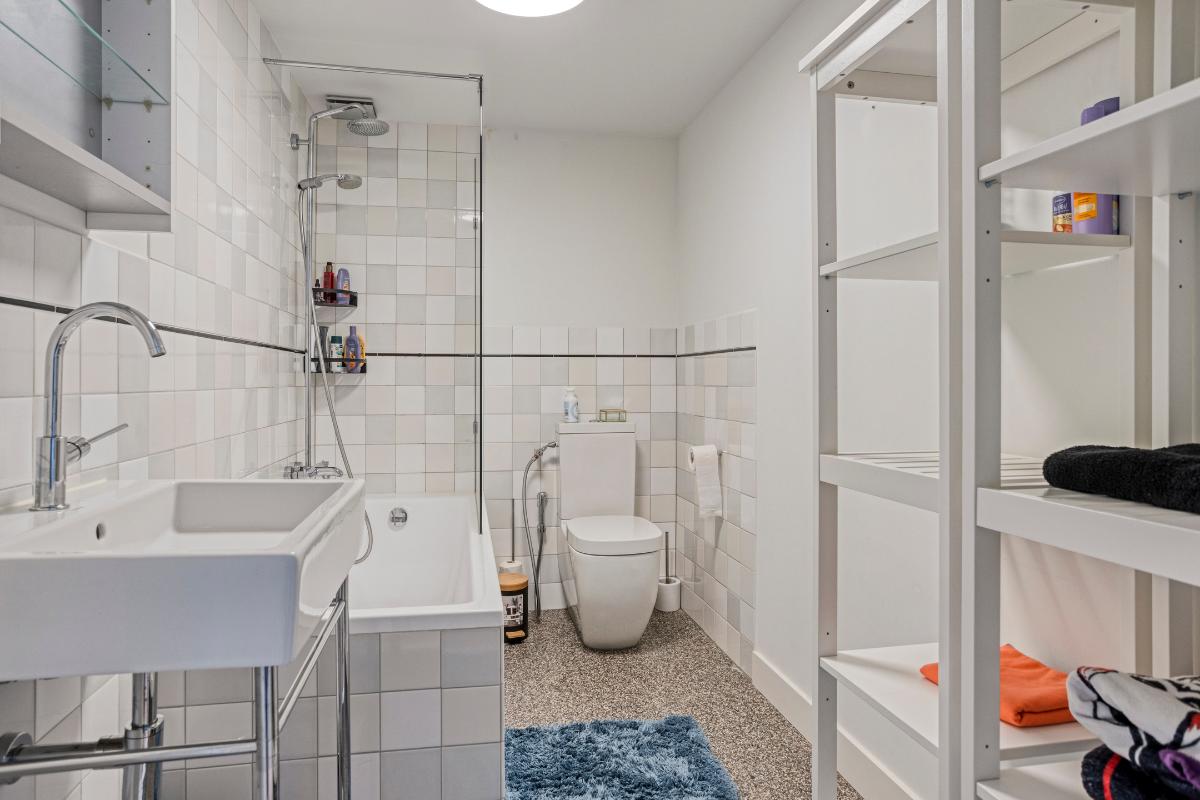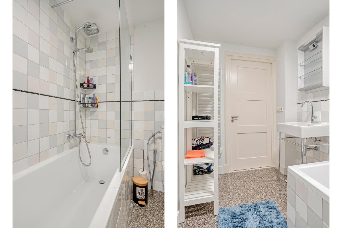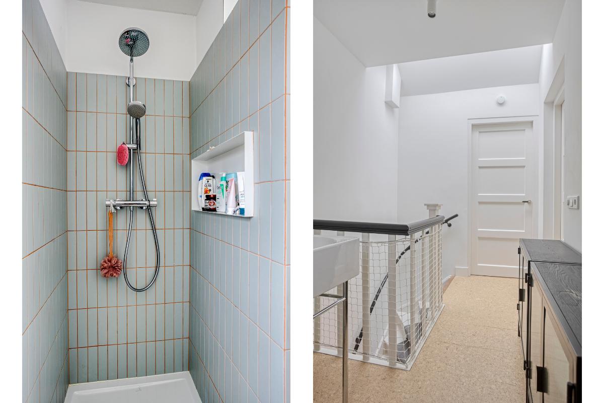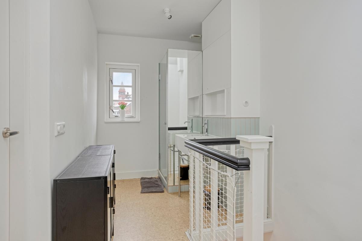 Er is een 2e badkamer gerealiseerd met een douchecabine, wastafel en mechanische ventilatie. In een maatwerk kast is de cv-ketel weggewerkt.