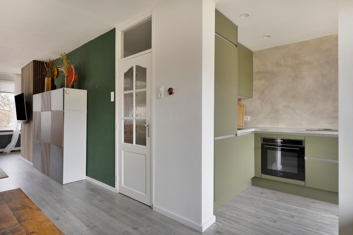 Algemeen Het appartementencomplex is gebouwd in 1955 en wordt netjes onderhouden. Het appartement zelf is de afgelopen jaren grondig gemoderniseerd. Eind 2024/begin 2025 zijn de keuken, badkamer, het toilet vernieuwd. De vloer die doorloopt in zowel woonkamer, keuken, hal als slaapkamers, is circa vijf jaar geleden vervangen. Recent zijn de woon- en slaapkamer voorzien van nieuw schilderwerk en sfeervolle houten wandpanelen.