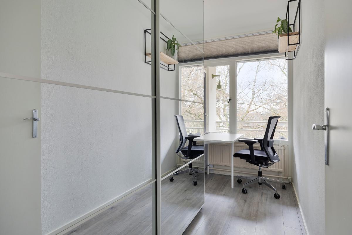 Slaapkamer 2 De tweede slaapkamer van ca 6m² is een praktische ruimte die zich uitstekend leent als werk- of studeerkamer, logeerkamer of kinderkamer. Ook hier weer een grote raampartij. De laminaatvloer loopt ook hier mooi door, wat zorgt voor een rustige uitstraling binnen het gehele appartement.