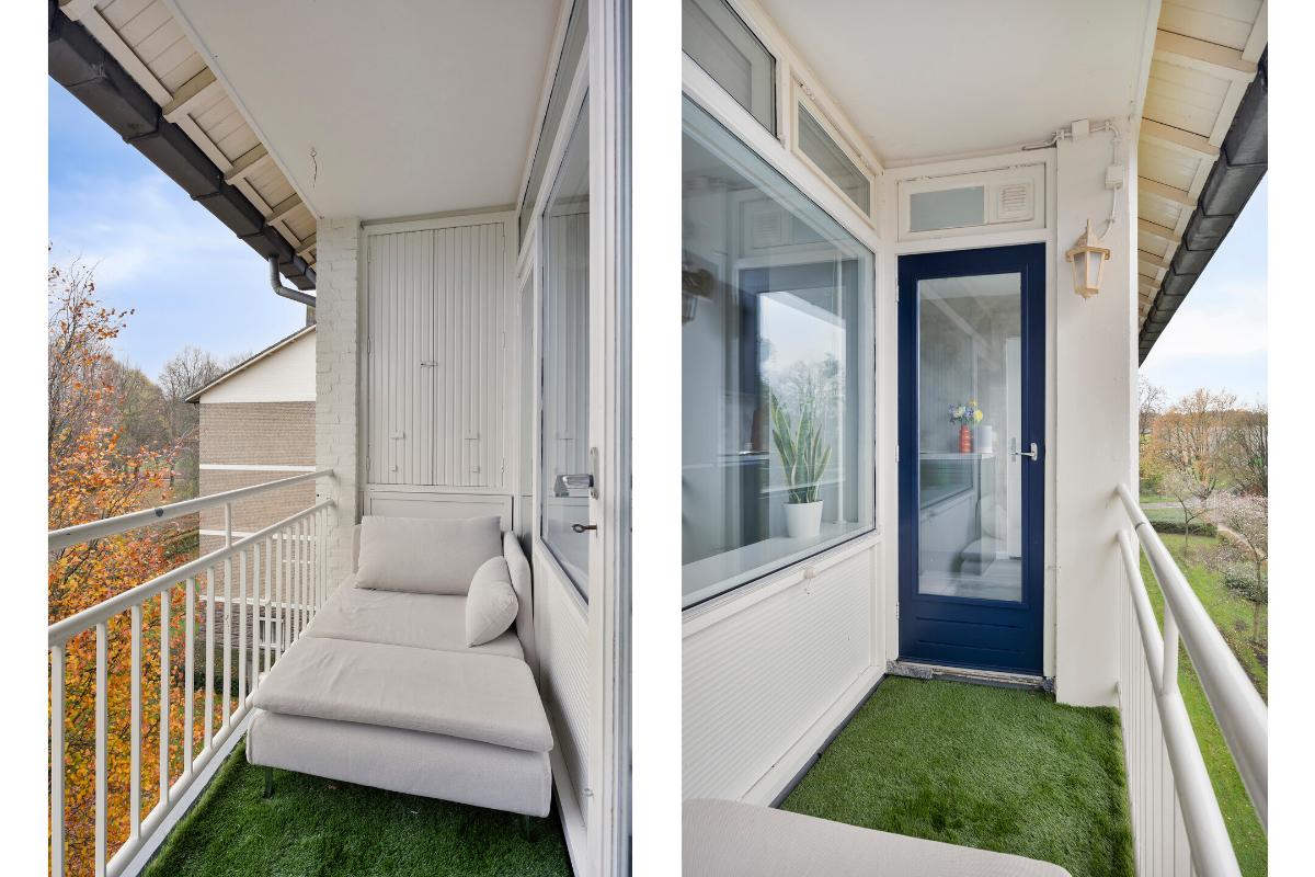 Balkon (achterzijde) Aan de achterzijde van het appartement bevindt zich een tweede, overdekt balkon dat bereikbaar is vanuit de keuken en woonkamer. Het balkon is voorzien van kunstgras en biedt voldoende ruimte voor een ligstoel of compacte zithoek. Daarnaast is er praktische bergruimte aanwezig in de vaste kastruimte op het balkon. Een fijne extra buitenruimte die perfect aansluit bij het dagelijkse wooncomfort.