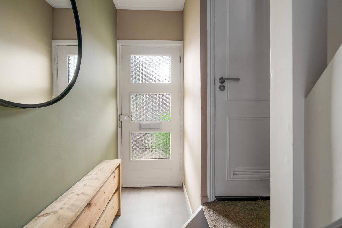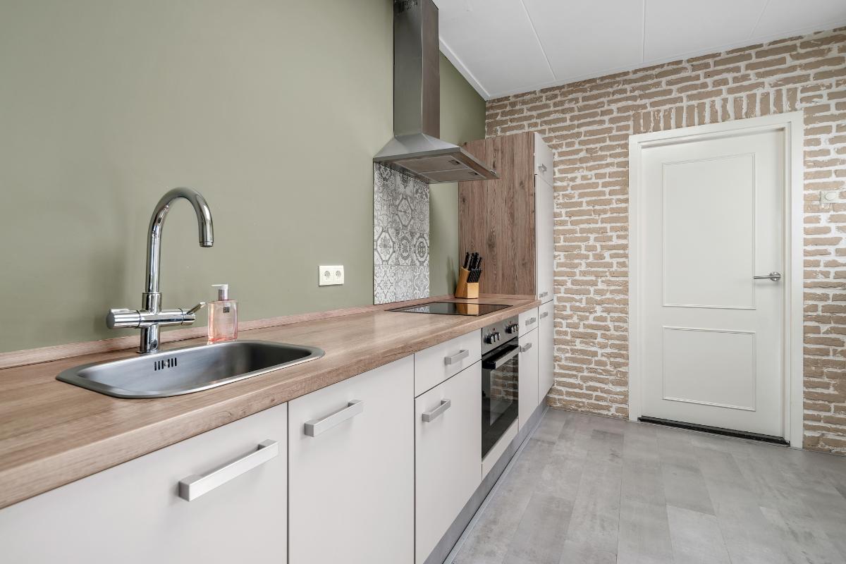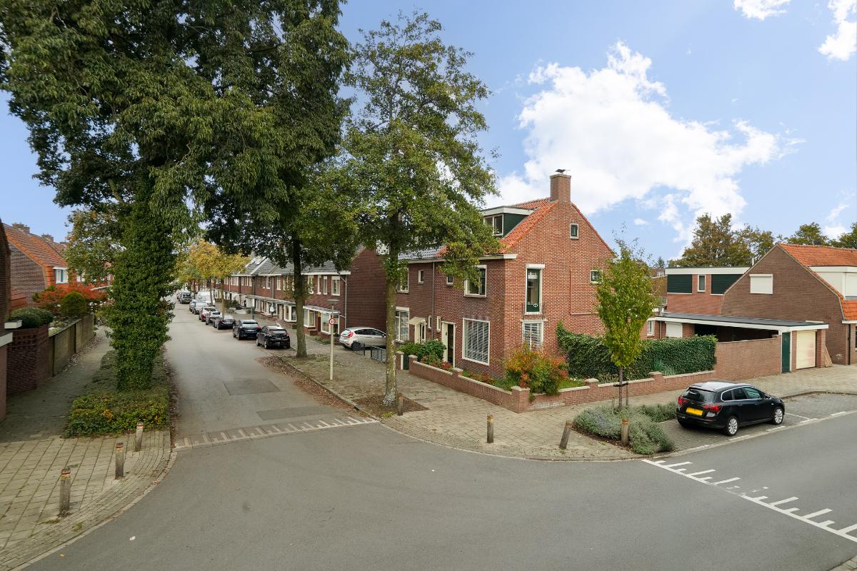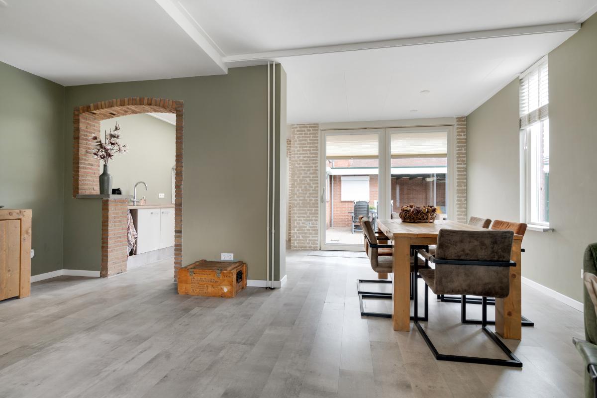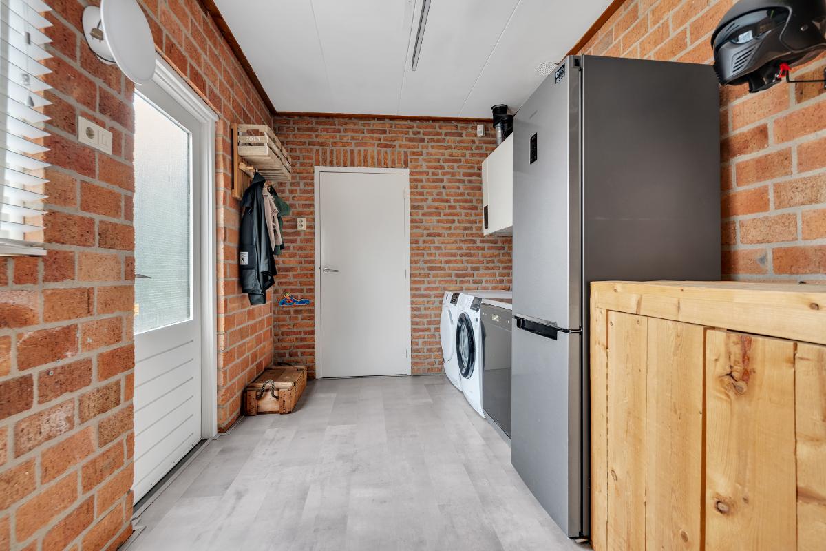 Begane grond: De begane grond van deze karakteristieke hoekwoning voelt direct warm en uitnodigend aan. Via de entree met toilet en trapkast stap je de ruime woonkamer binnen, waar authentieke details en hedendaags comfort elkaar perfect versterken. De fraaie houtkachel met klassieke schouw vormt het hart van de ruimte en zorgt voor een gezellige sfeer. Dankzij de uitbouw aan de achterzijde is er een royale living ontstaan, met voldoende plaats voor een eethoek die in directe verbinding staat met de moderne keuken. De keuken combineert strakke, lichte fronten met een warm houten werkblad en subtiele Portugese tegels op een deel van de achterwand. De keuken is voorzien van onder meer een ingebouwde oven, keramische kookplaat, afzuigkap en koelkast. Vanuit de keuken loop je door naar de praktische bijkeuken, waar extra bergruimte en de aansluitingen voor de wasmachine en droger zijn gerealiseerd. Een waterontharder zorgt voor lekker zacht water. Achter de schuifdeur bevindt zich de inpandige berging, ideaal voor fietsen of te gebruiken als hobbyruimte of thuiskantoor. De openslaande deuren vanuit de berging naar de overkapping en patio zorgen voor een natuurlijke overgang tussen binnen en buiten. Verder is vanuit de eetkamer de tuin te bereiken via de grote schuifpui.