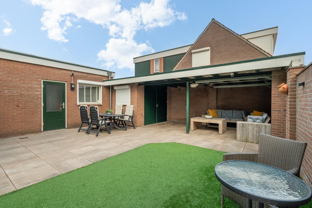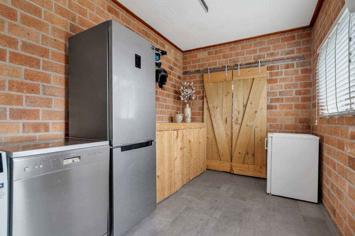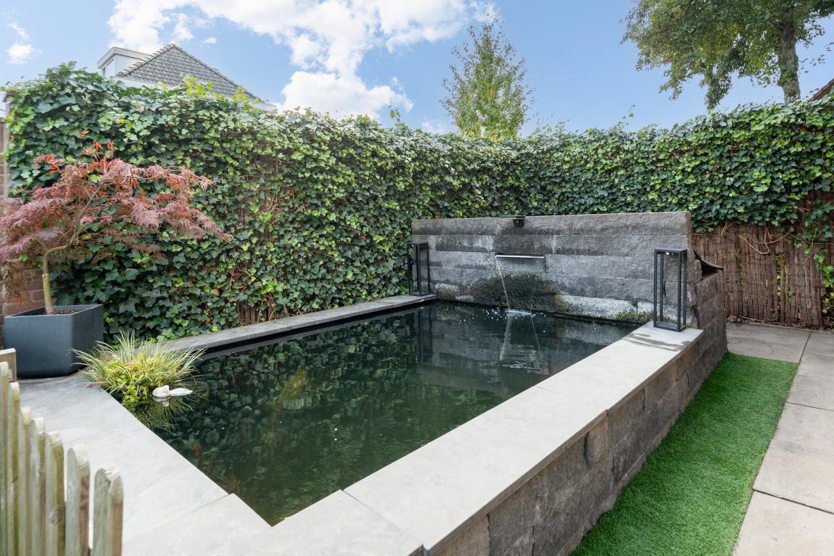 Tuin: De onderhoudsvriendelijke tuin met kunstgras en grote tegels maakt het heerlijk praktisch, maar de sfeer is allesbehalve saai. In de loungehoek onder de overkapping kun je het hele jaar door genieten. De vijver versterkt het gevoel van buitenleven door de reflectie en beweging van het water. Omringd door groen en met voldoende plek voor een eettafel en een gezellig zitje, is dit echt een heerlijke buitenruimte.