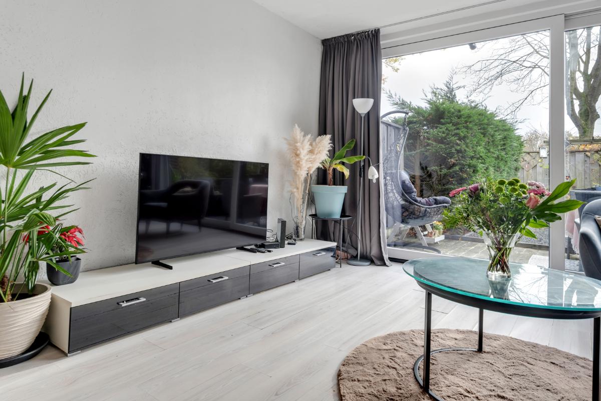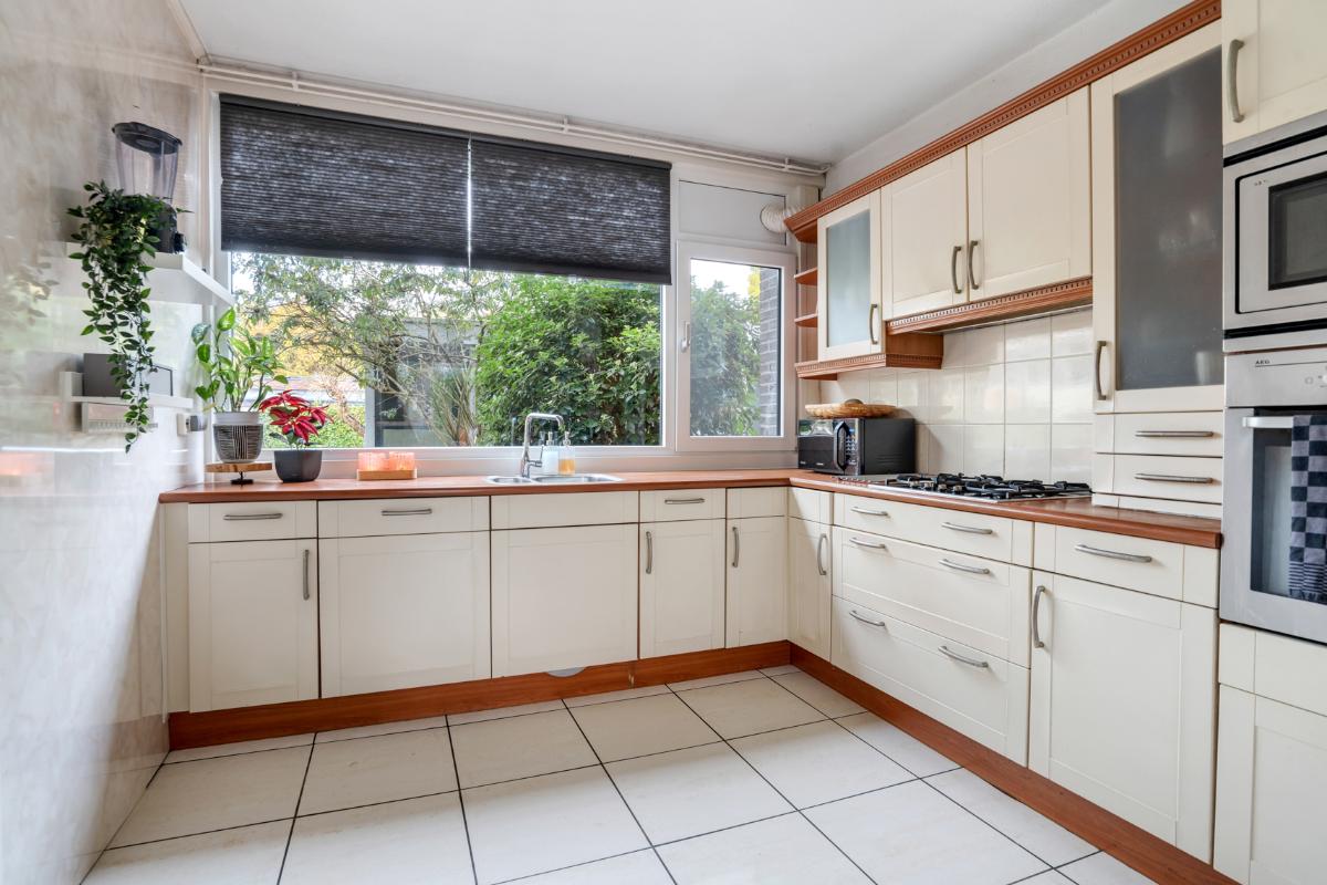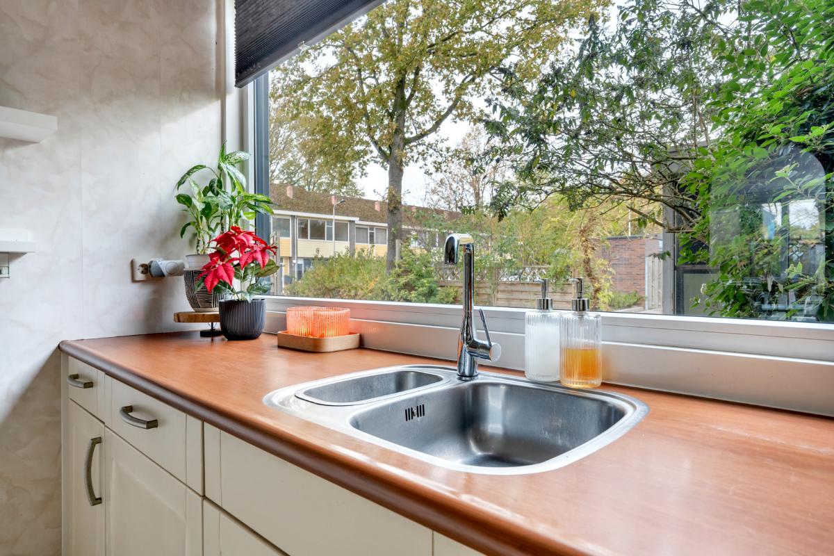 Begane grond: Parkeer je auto op je eigen oprit of zet je auto of fiets droog onder de carport. Binnen kom je in de hal waar je direct je jas aan de kapstok hangt en je schoenen uitdoet. Vanuit hier heb je toegang tot het toilet, de meterkast, de trapopgang naar de eerste verdieping en de keuken. De halfopen keuken ligt aan de voorzijde van het huis en is voorzien van alle gemakken: een ingebouwde oven, magnetron, vaatwasser, gasfornuis en afzuigkap. Dankzij de vele kasten is er volop bergruimte voor servies en keukengerei, terwijl je in de vaste trapkast in de woonkamer gemakkelijk extra voorraad kwijt kunt. Door de charmante boogdoorgang loop je de woonkamer in. Deze is heerlijk licht en overzichtelijk, met ruimte voor zowel een eethoek als een gezellige zithoek aan de achterzijde. De grote schuifpui zorgt niet alleen voor veel lichtinval, maar ook voor een directe verbinding met de tuin. Op zomerdagen schuif je de deuren open en verleng je de woonkamer met het terras.