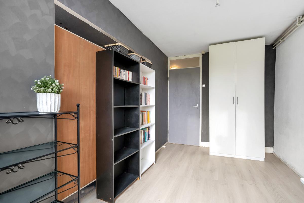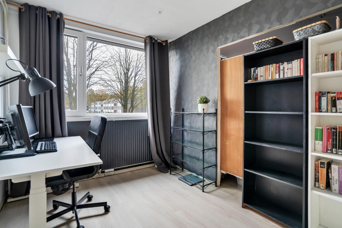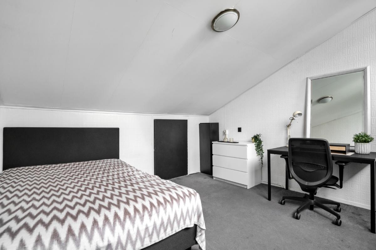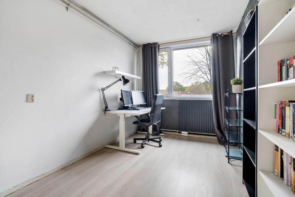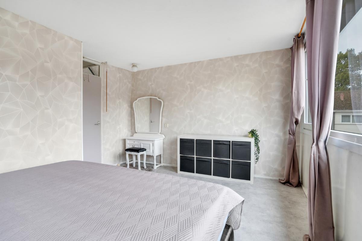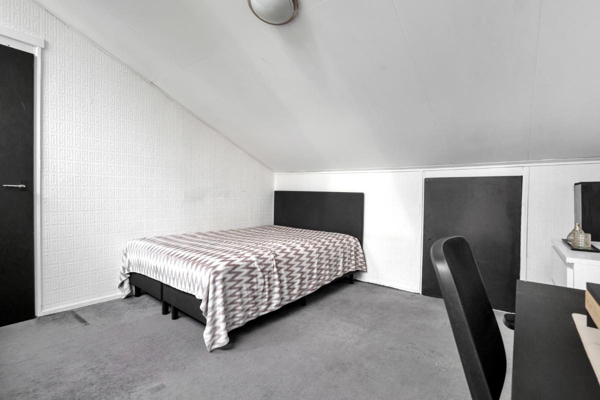 2e verdieping: Op de tweede verdieping kom je via een vaste trap op een lichte overloop die toegang biedt tot een ruime vierde slaapkamer. De kamer is verrassend ruim en comfortabel ingericht en dankzij de brede raampartij valt er veel daglicht binnen, wat de ruimte een frisse en open uitstraling geeft. Met een bureau, logeerbed of hobbyhoek kun je deze kamer eenvoudig naar wens indelen. Achter het knieschot bevindt zich extra bergruimte, ideaal voor koffers, seizoensspullen of andere items die je netjes uit het zicht wilt bewaren. Een paar persoonlijke accenten, zoals sfeervolle verlichting en je favoriete foto’s aan de muur, maken ook deze verdieping helemaal af.