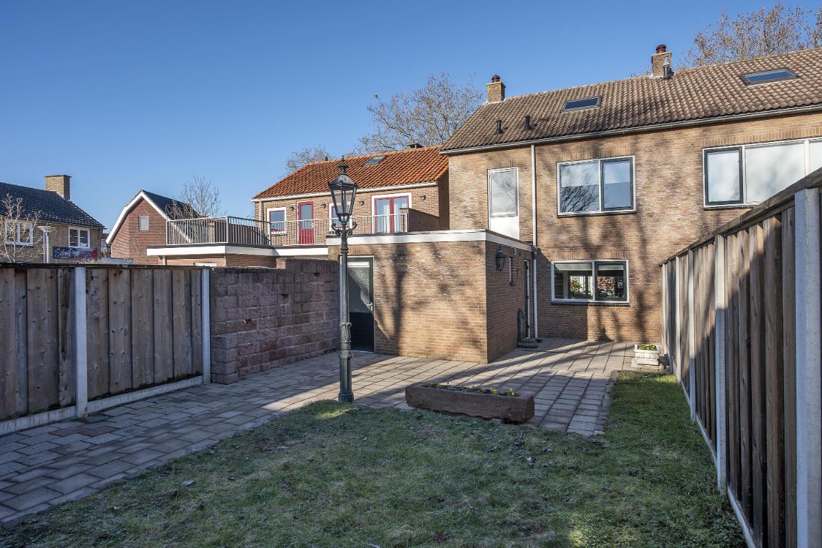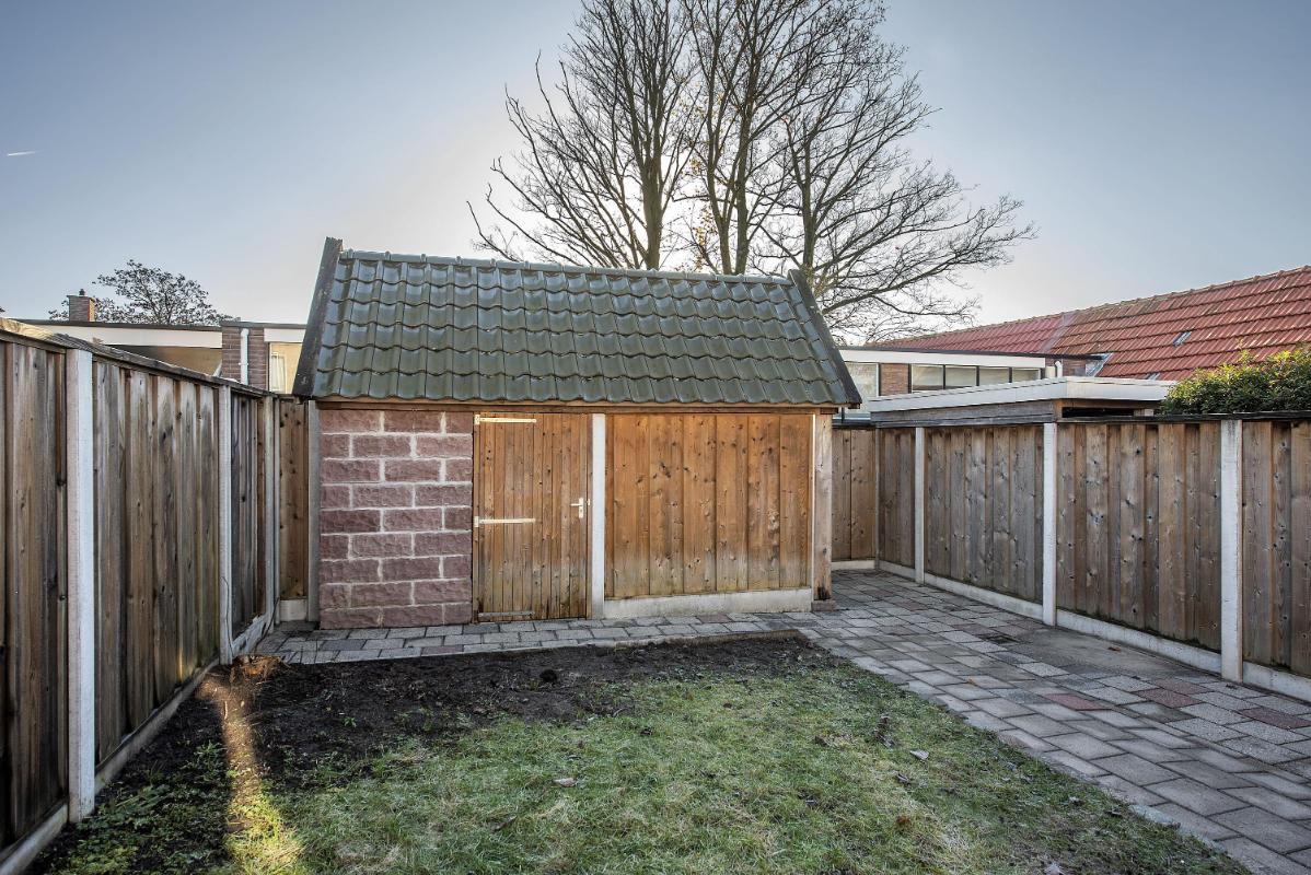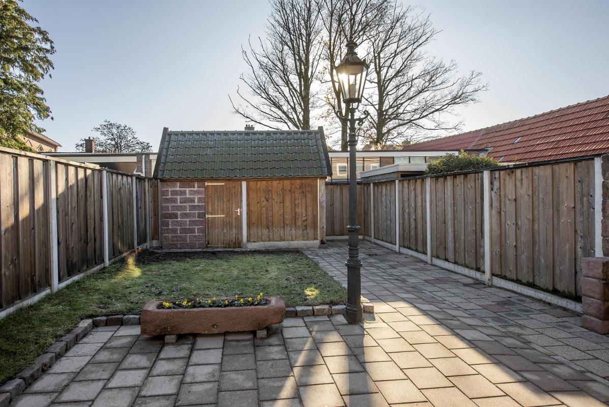Tuin: De tuin van deze woning straalt direct een nostalgische charme uit, alsof je even teruggaat in de tijd. De klassieke lantaarnpaal, de stenen bloembak en de houten berging achterin geven de tuin karakter en sfeer. De combinatie van een tegelterras en een grasperk maakt het geheel ruimtelijk en is onderhoudsvriendelijk. Er is voldoende plek voor een tuintafel of een comfortabele loungeset. Achterin de tuin bevindt zich de handige berging voor het opbergen van seizoensartikelen, tuingereedschap en andere benodigdheden, waardoor de tuin overzichtelijk en netjes blijft.